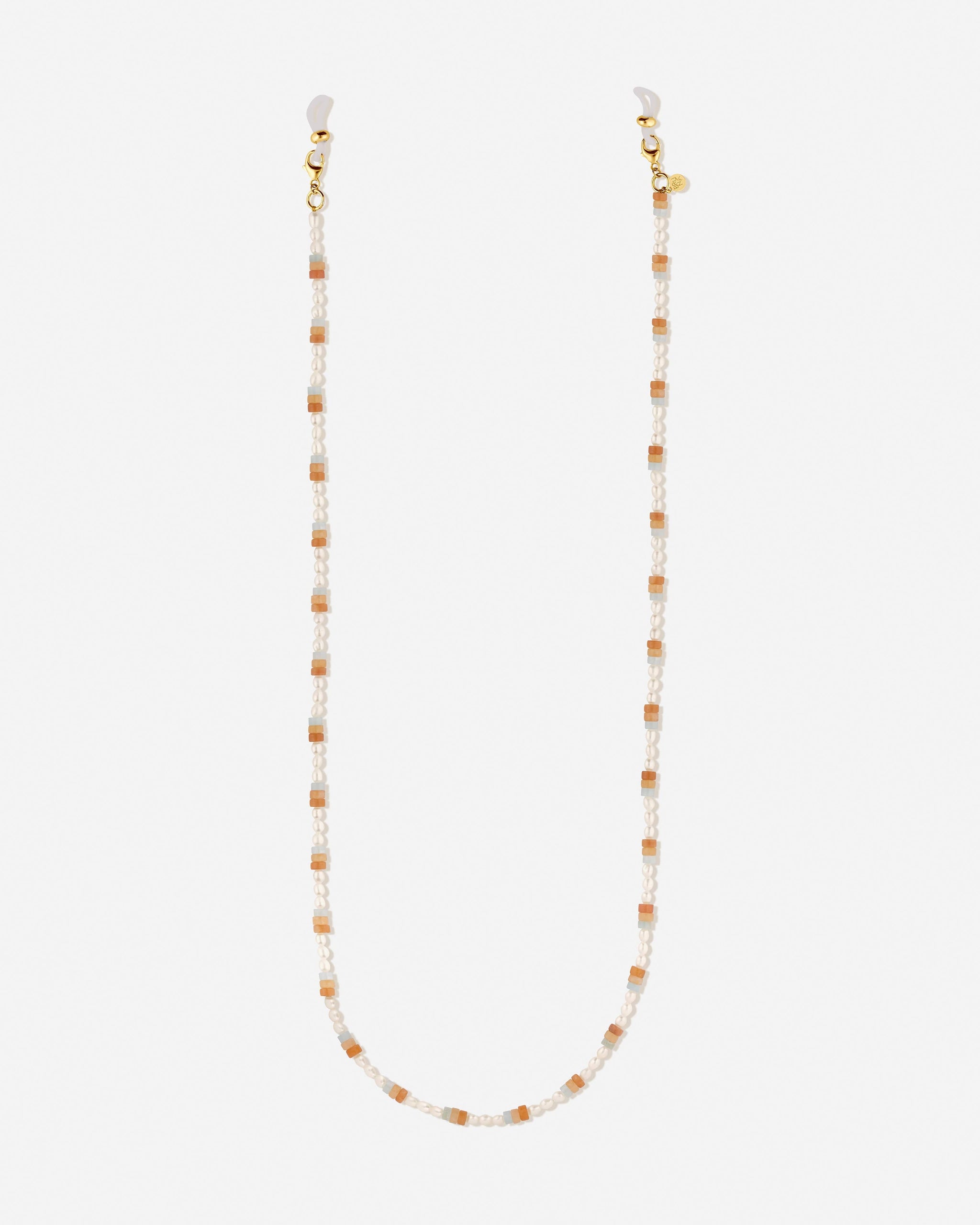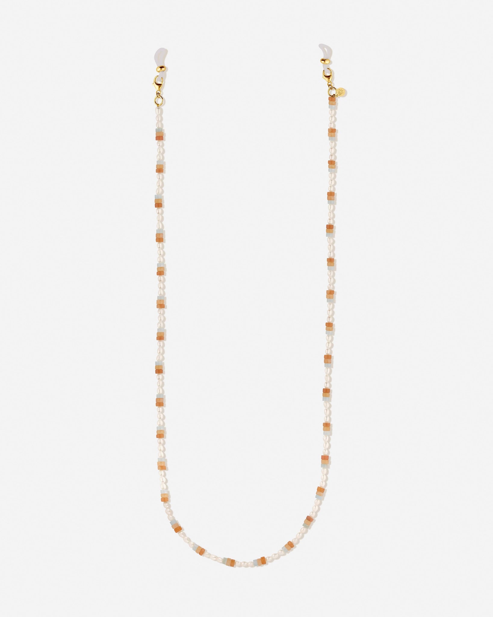 Dürfen wir vorstellen: Unsere derzeit liebste Sehenswürdigkeit, die Mare Sonnenbrillenkette. Mit blau-grün schillernden Amazonit-Steinen, inmitten zarter Perlen, zieht diese Schönheit garantiert alle Blicke auf sich und ist der perfekte Travel-Buddy für jede Sonnenbrille. Ob Action-Girls auf Entdeckungstour oder Sonnenanbeter am Strand, dies ist euer One-Way-Ticket für guten Stil. Perfekt kombinieren lässt sich dazu übrigens unser Aria Ring.
