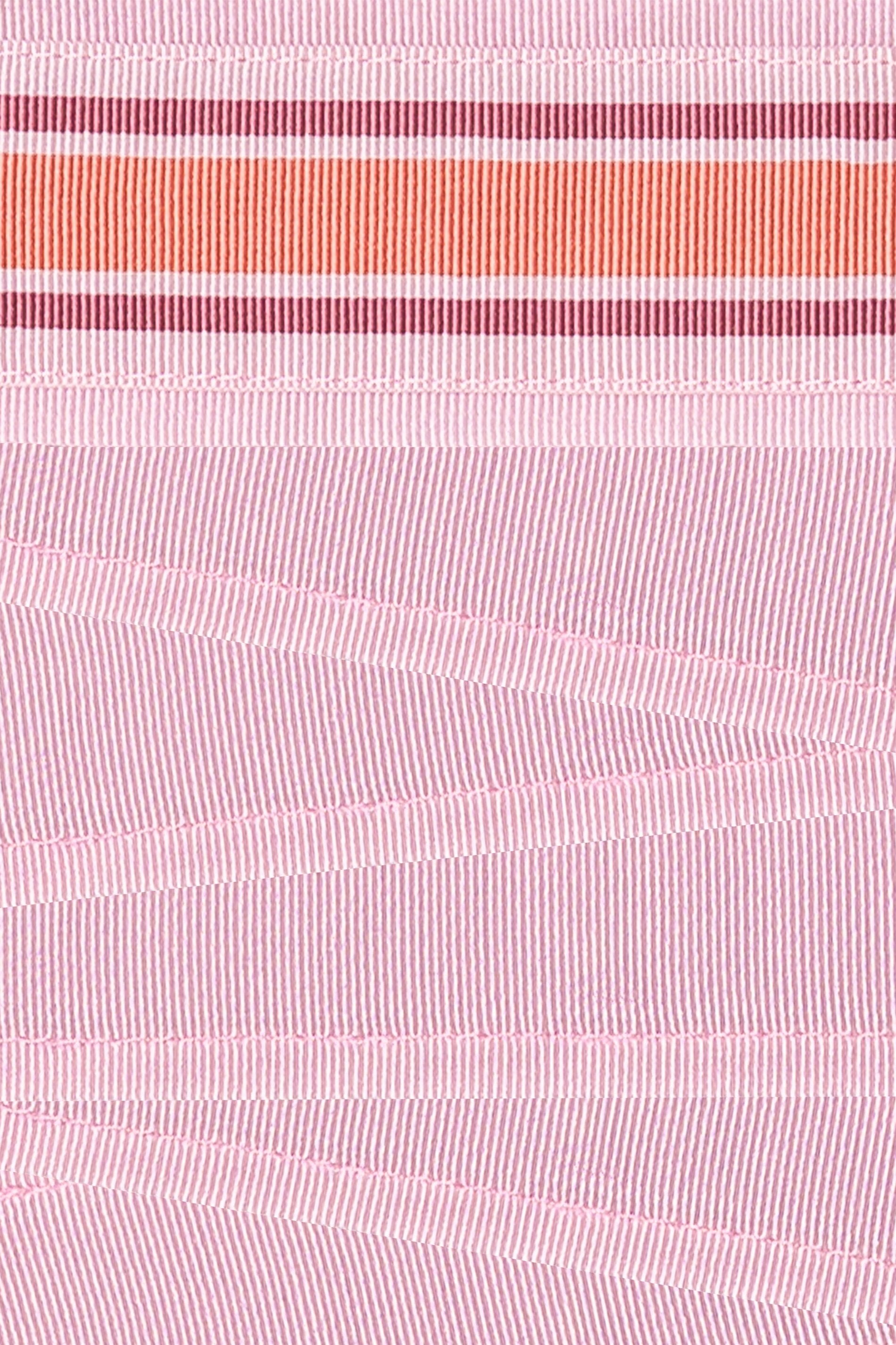 Stoffgürtel aus einer Viskose-Baumwoll-Mischung mit aufgenähtem Streifenband. Die Enden sind mit einem Aufnäher in Lederoptik eingefasst.
