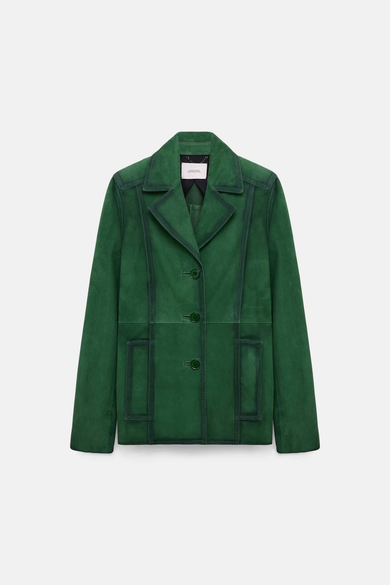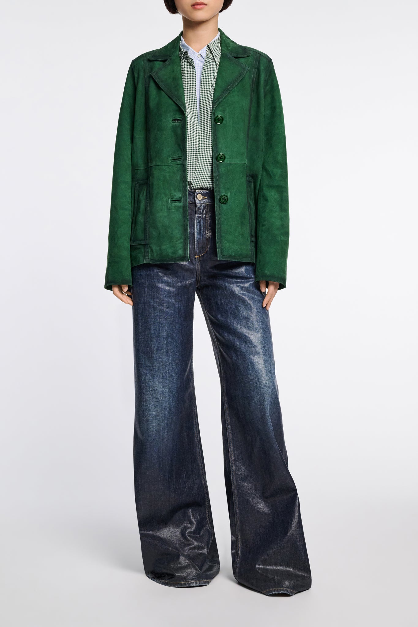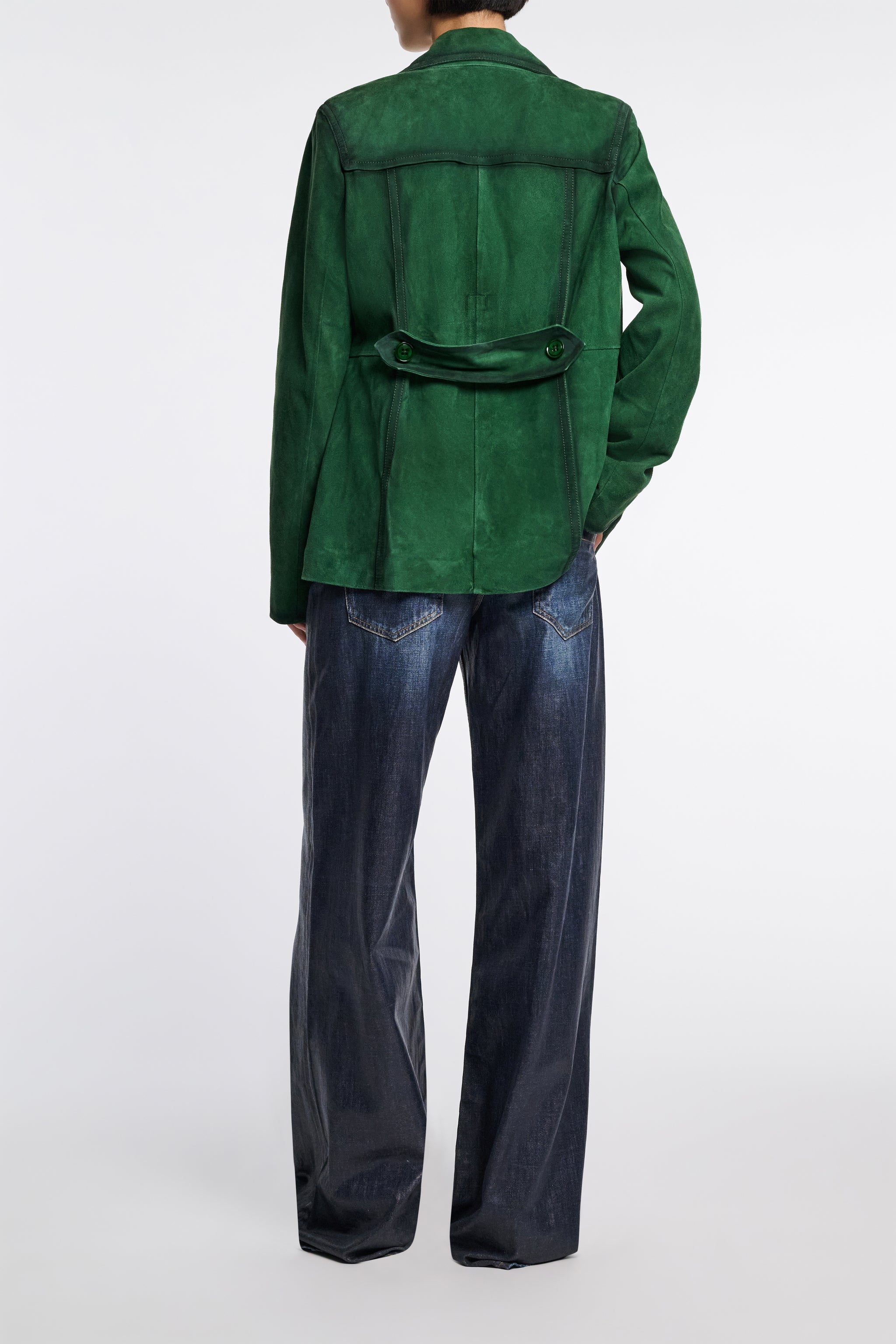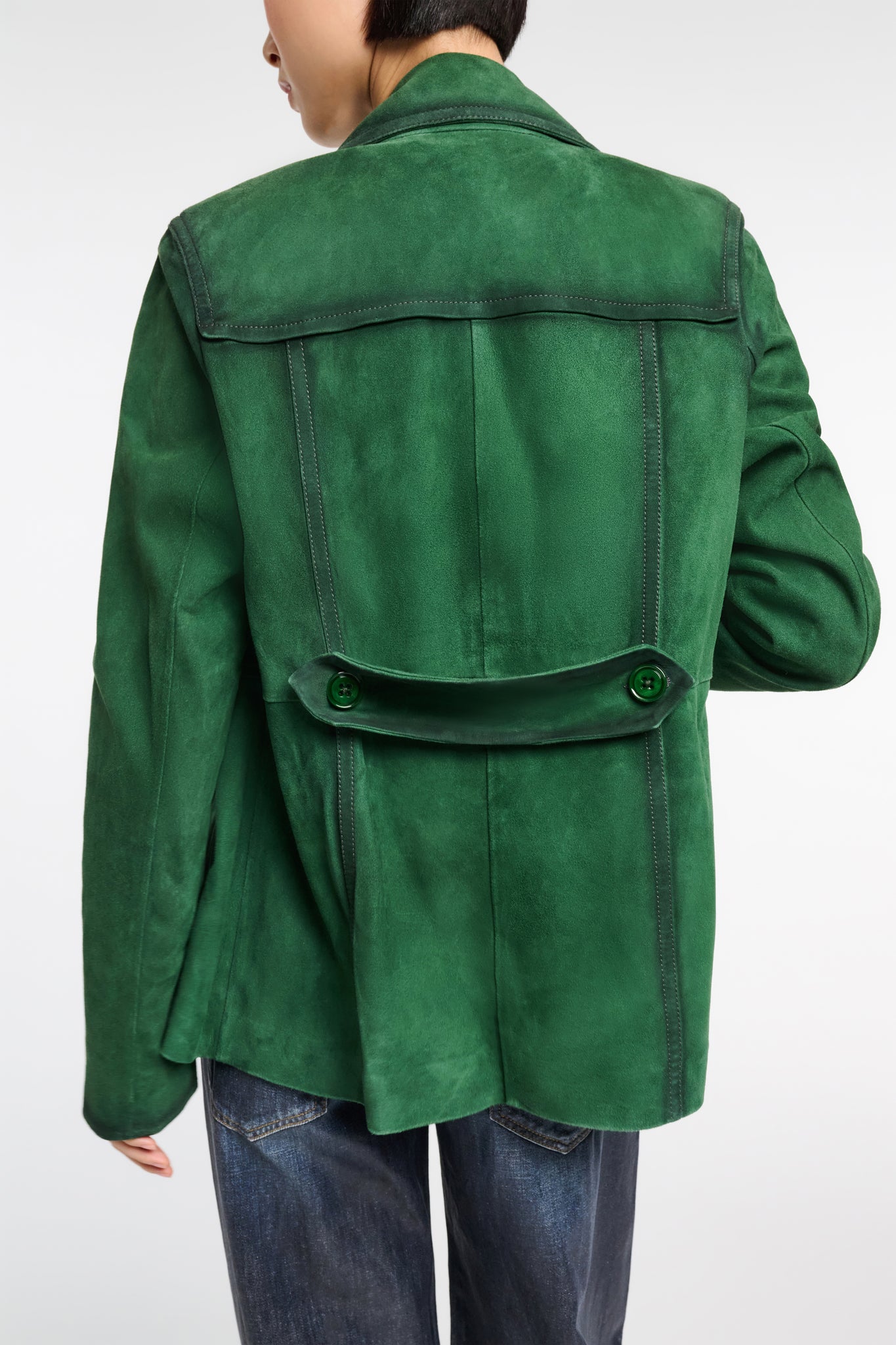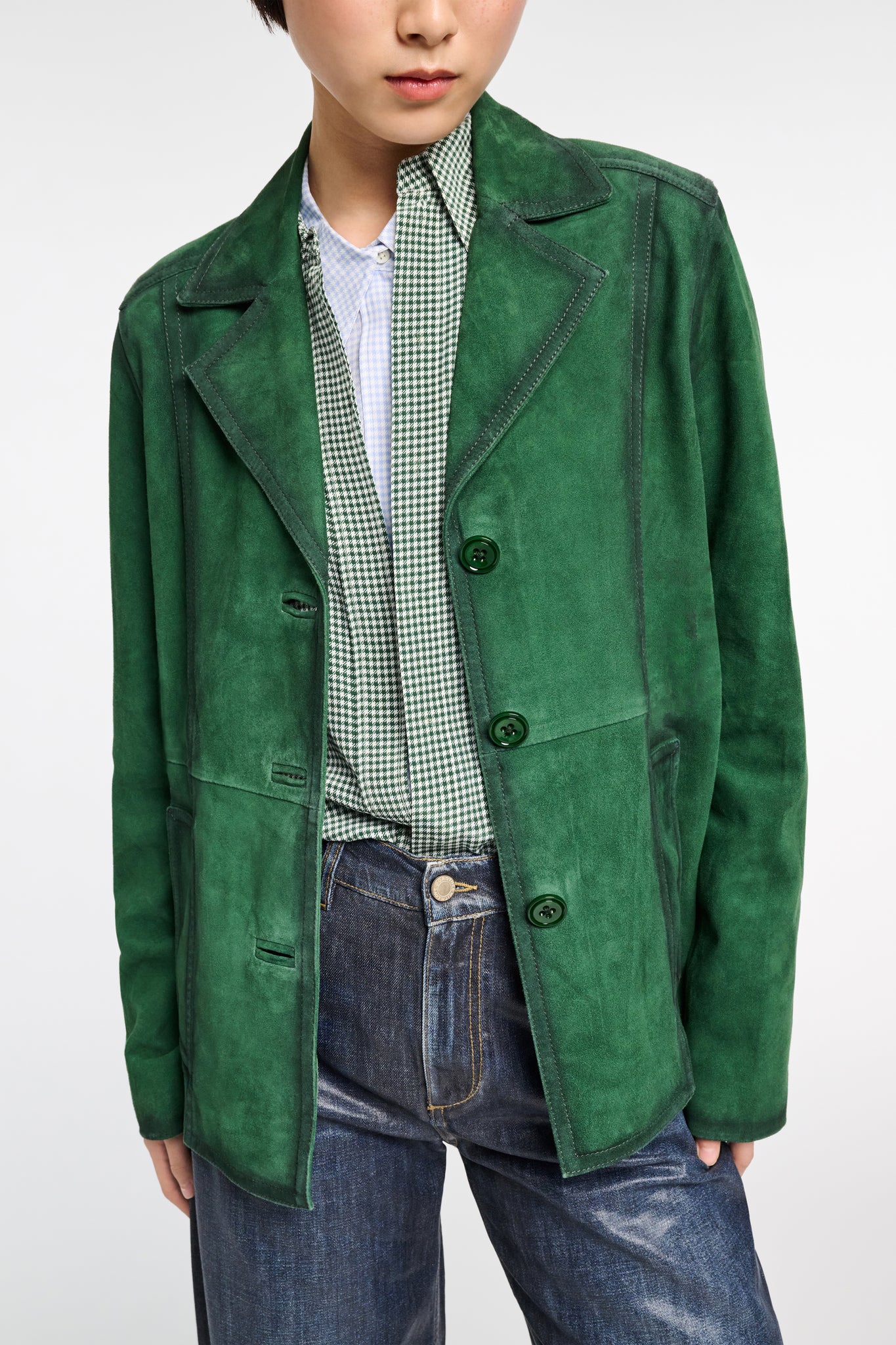 Die Jacke ist aus softestem Veloursleder gefertigt und hat einen lässigen, geraden Fit. Edge-Paintings und Stitching-Details verleihen der Jacke einen coolen Vintage-Charakter.