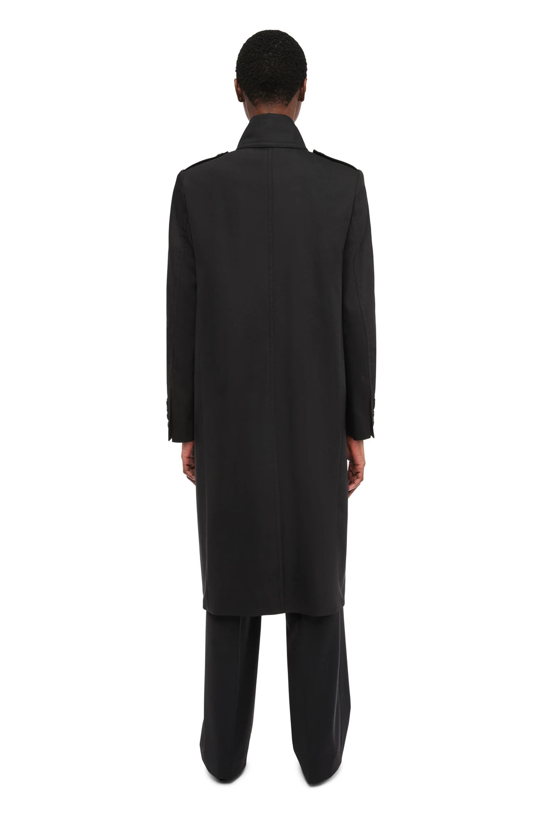 PIETHILL is a classic uniform coat. This slim double-breasted coat is of high quality, with a Napoleon collar and elaborate tailoring details. Technostretch satin is comfortable to wear and the elastane content ensures good stretchability and an optimal fit, while the cotton content ensures breathability and softness. The elegant fabric adapts perfectly to different styles and occasions.