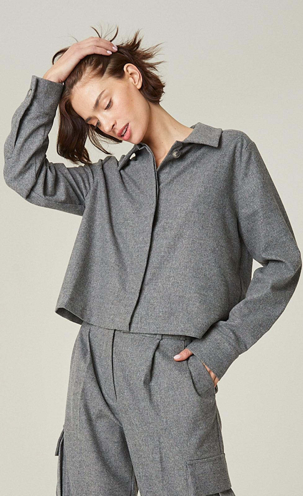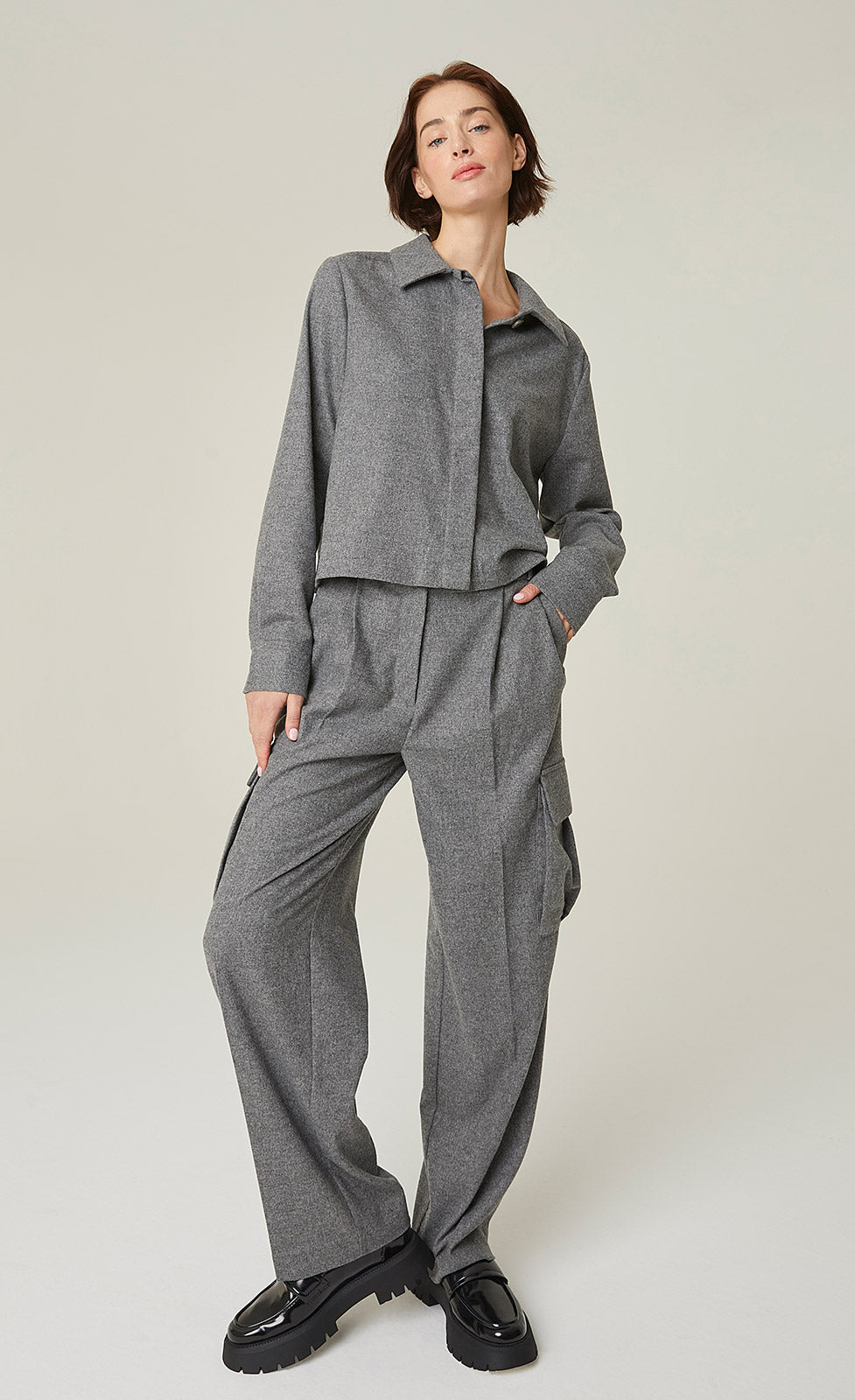 Dieses trendige Overshirt in verkürzter Silhouette kombinieren wir am liebsten zur passenden Hose; ein easy Winterlook!