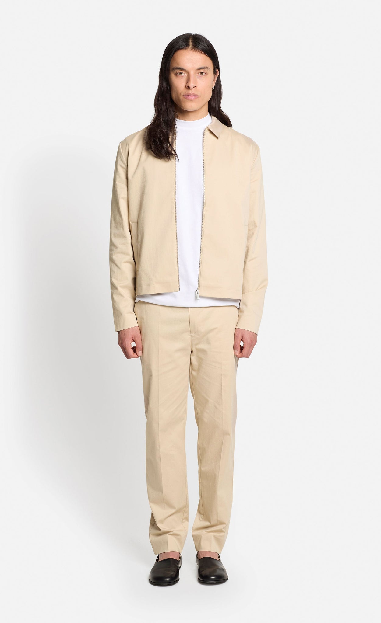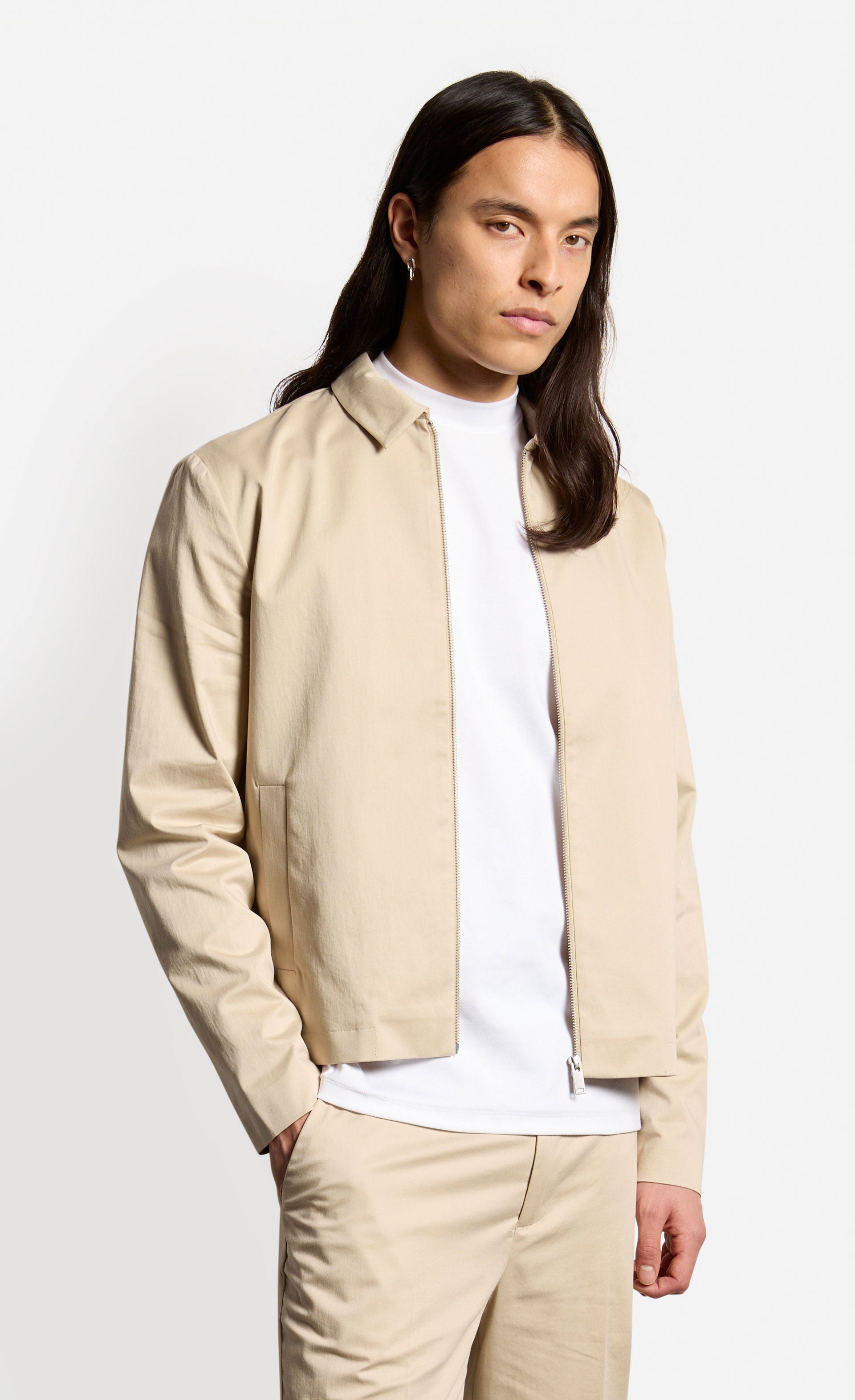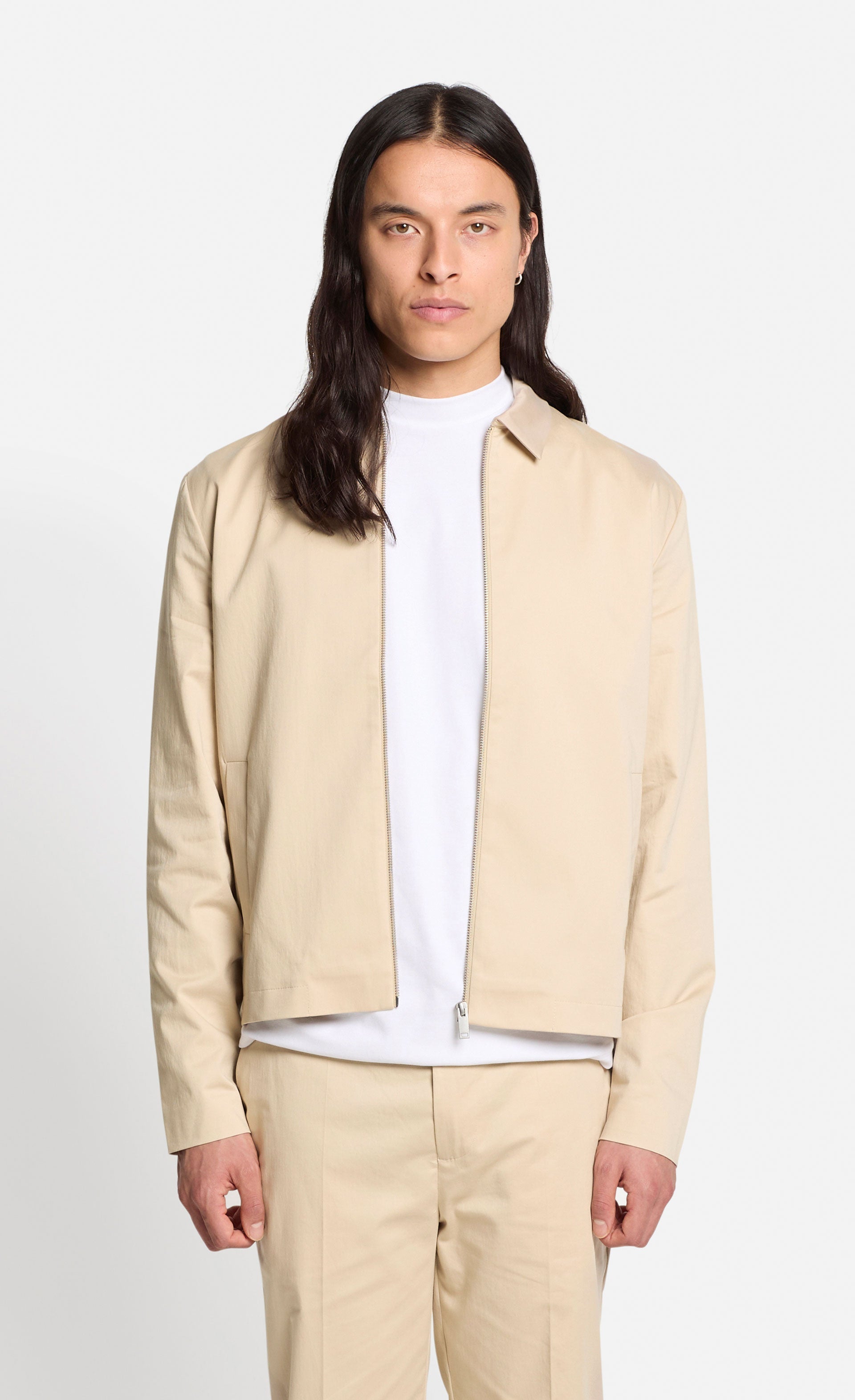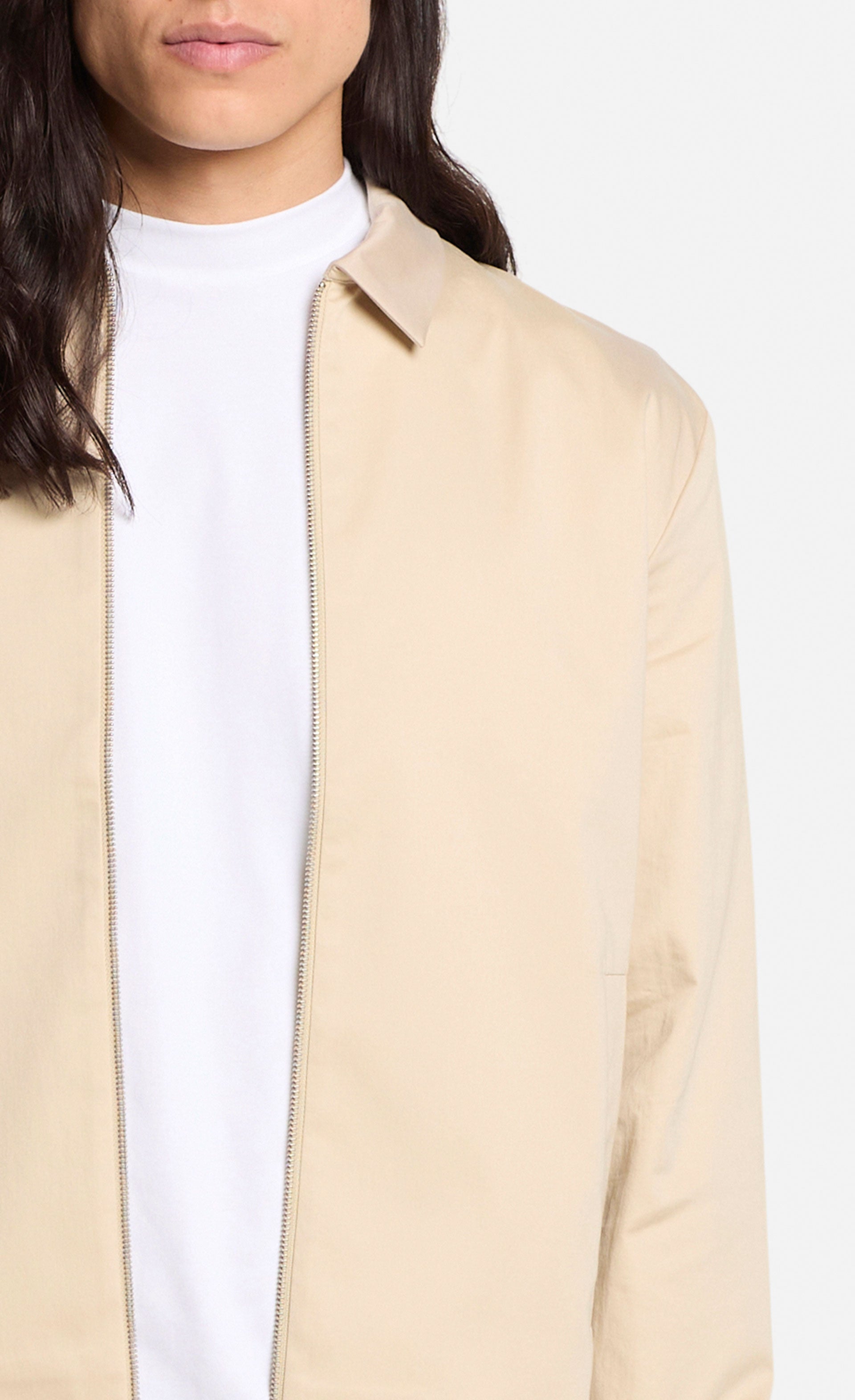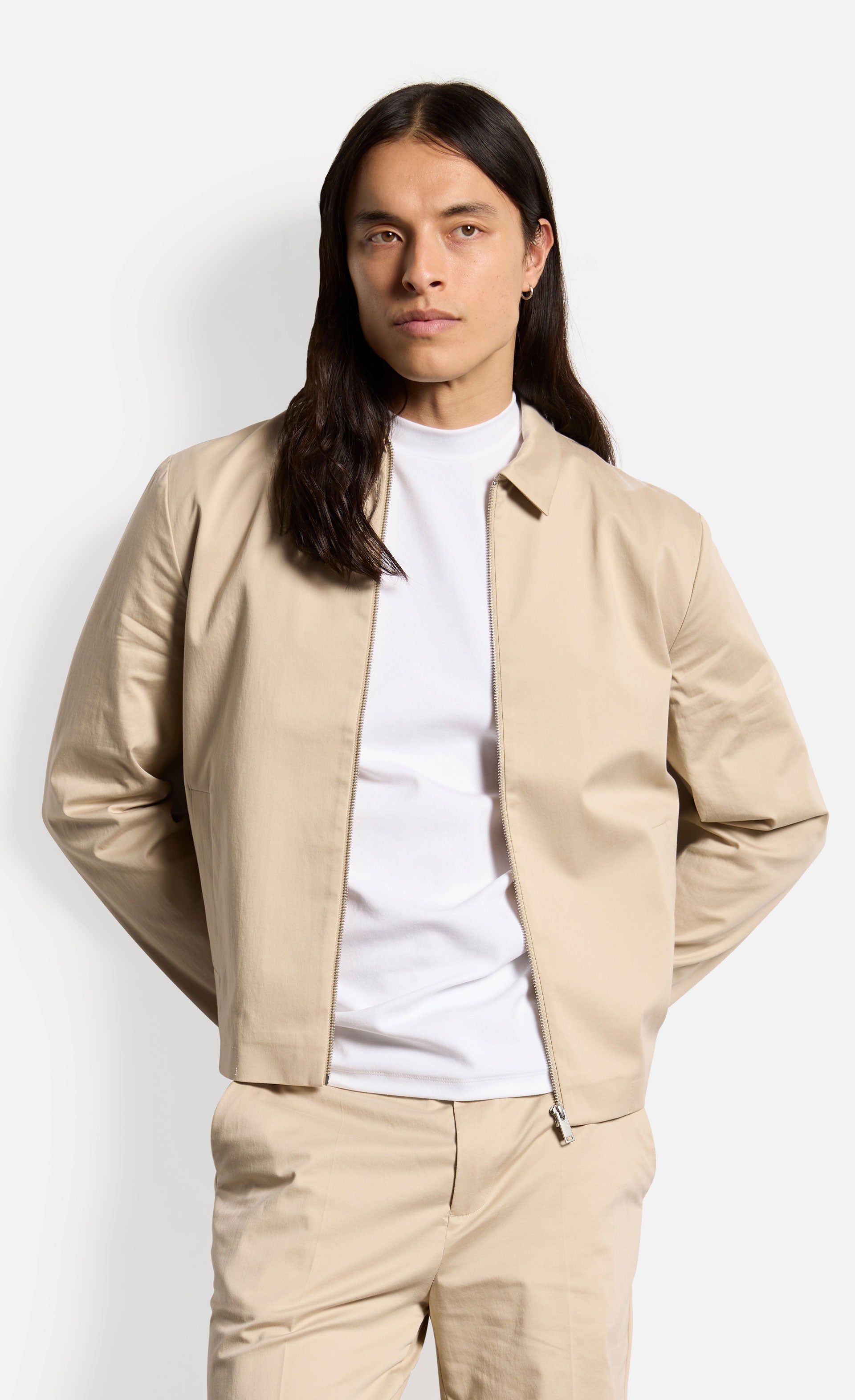 Die halbgefütterte Jacke vereint klassische Elemente und hochwertige Verarbeitung und eignet sich perfekt für den Übergang oder kühle Sommerabende. In Kombination mit der passenden Hose entsteht ein lässiges Business-Outfit. Die Jacke ist aus glatter Baumwolle, kastig geschnitten, mit Reißverschluss und klassischem Umlegekragen.