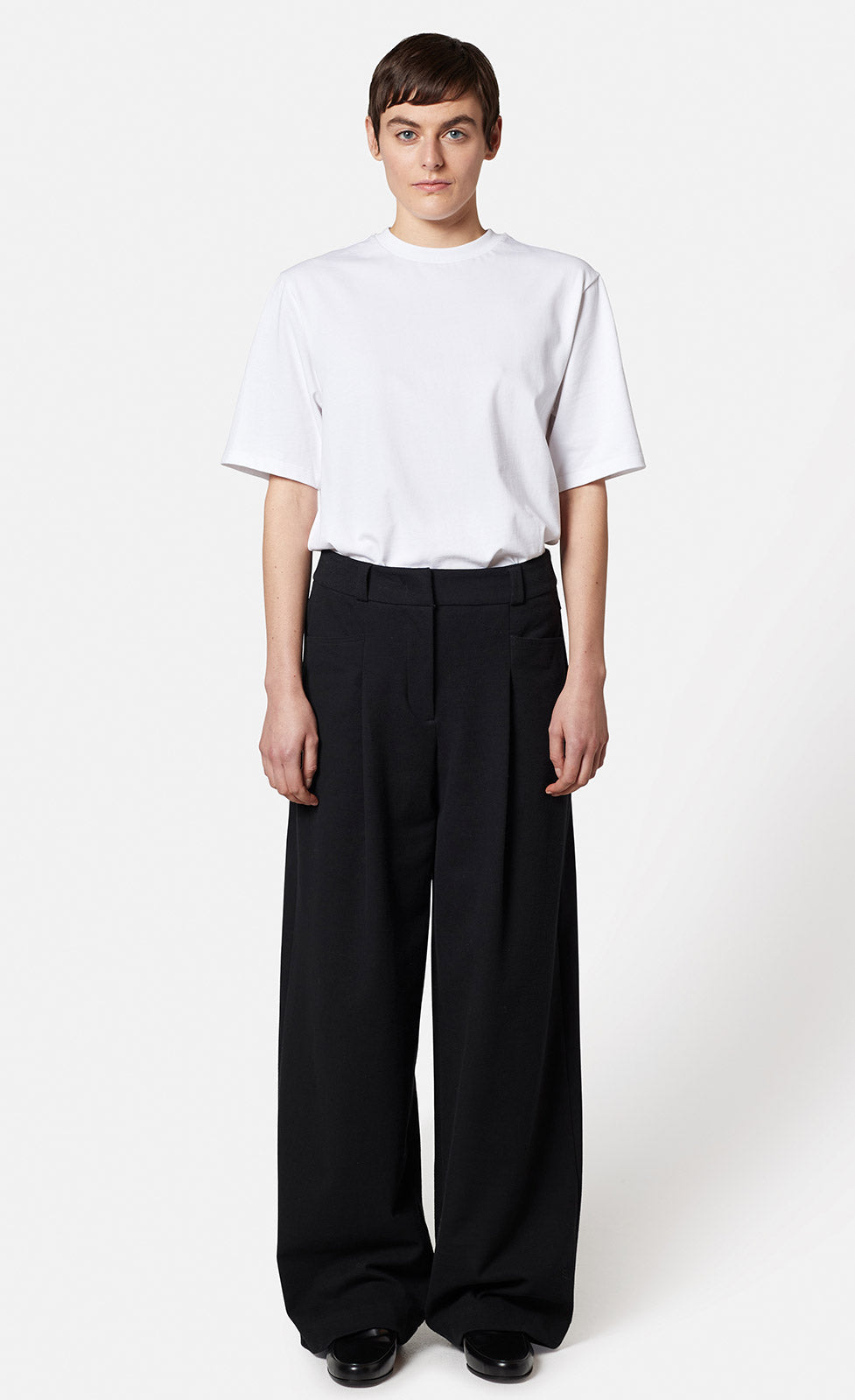 Die Wahl der Gesäßtaschen erinnert an eine Jeans und unterstreicht den sportlichen Look dieser Hose. Der verwendete kompakte Jersey mit aufgerauhter Oberfläche sorgt für ein angenehmes Tragegefühl.