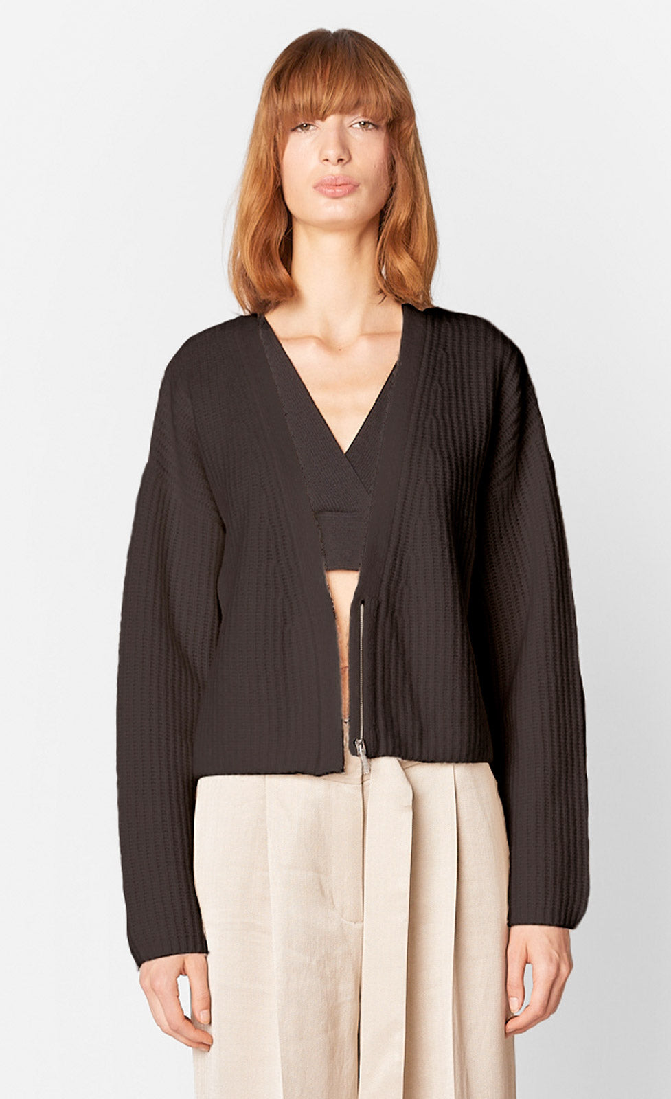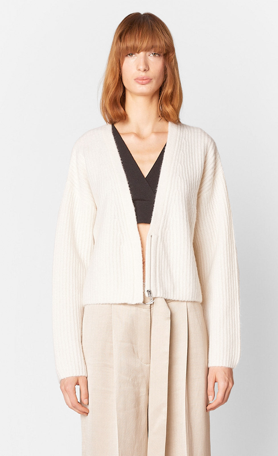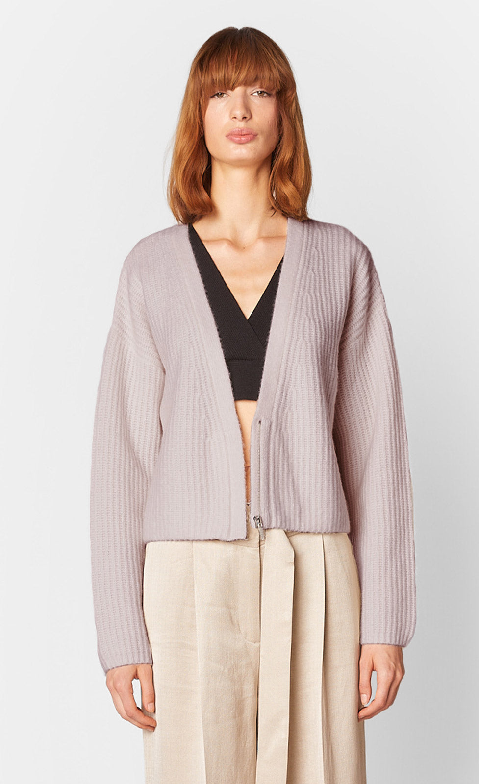Diese Strickjacke wurde aus einem Kaschmirgarn in gerippter Struktur gefertigt und hat einen lockeren, kastenförmigen Schnitt.