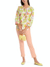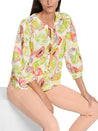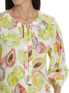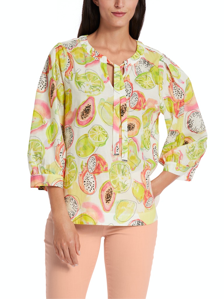 Der farbenfrohe Print aus exotischen Früchten verleiht dieser Bluse einen frischen Look. Sie kommt im geraden Schnitt mit verlängertem Rücken und Seitenschlitzen. Die langen Ärmel münden in einem durchgehenden Bündchen. Schönes Detail ist der Rundhalsausschnitt mit Schluppe. Die Bluse ist aus reiner Baumwolle geschneidert.