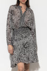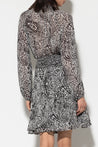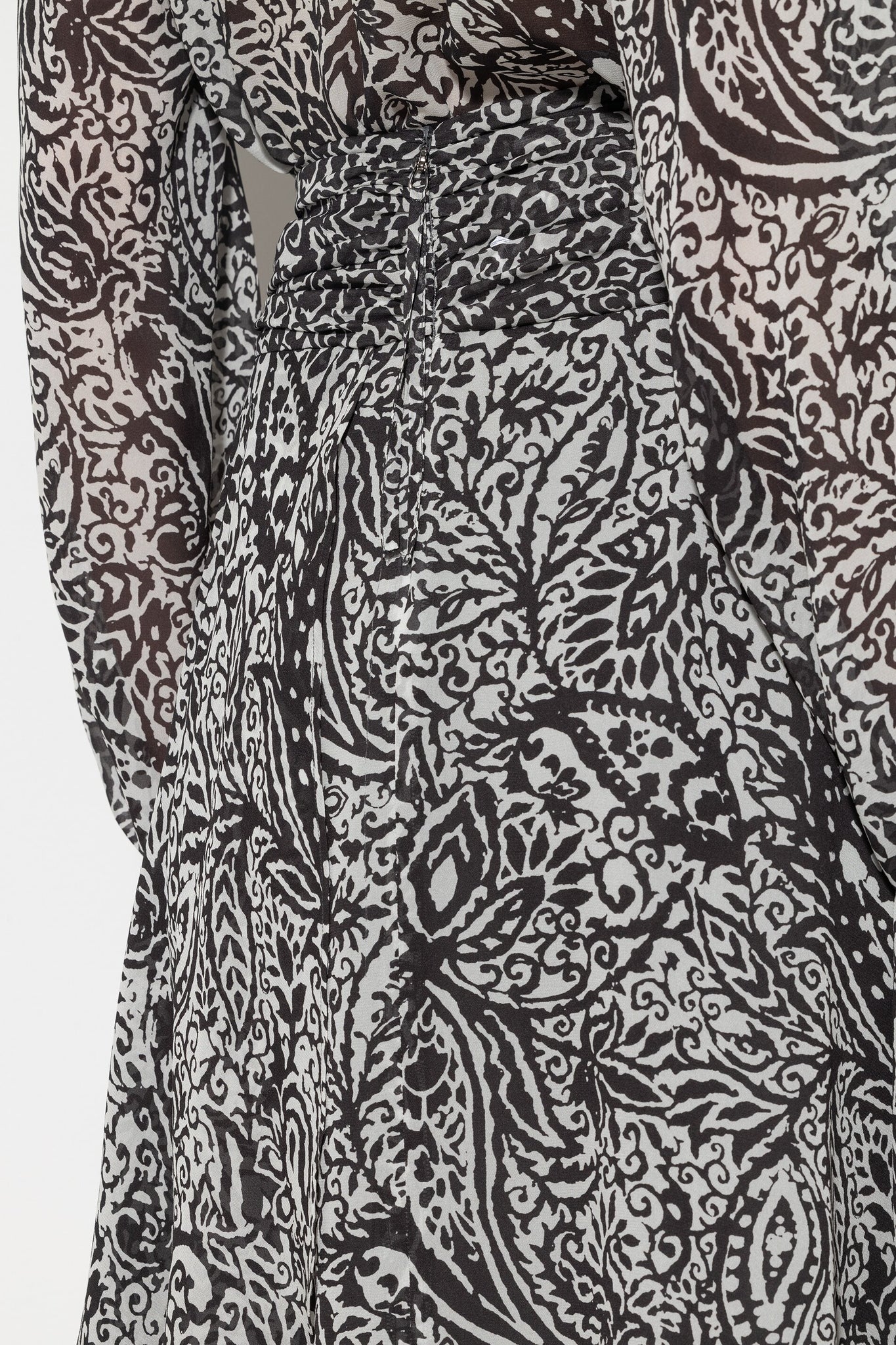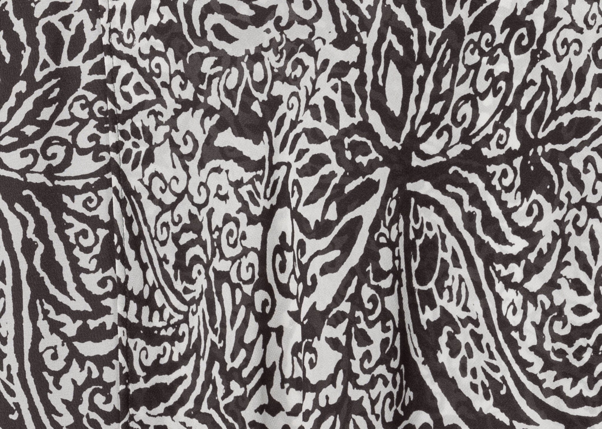 Knielanger Rock aus semitransparentem Viskose-Crêpe in Wickeloptik. Der leichte Stoff ist mit einem abstrakten Paisley-Muster bedruckt und der Bund ist mit einer raffinierten Drapierung versehen.