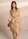 Hemdblusenkleider sind zeitlos – und dieses schimmernde Modell aus Livi Satin ist ein echtes Highlight! Mit klassischem Kragen und Knopfleiste kombiniert es elegante Details mit lässigen Workware- Elementen wie aufgesetzten Taschen. Hier trifft Eleganz auf Lässigkeit. Unser RIANISTA-Tipp: Setze einen Gürtel ein, um Deine Silhouette zu betonen!