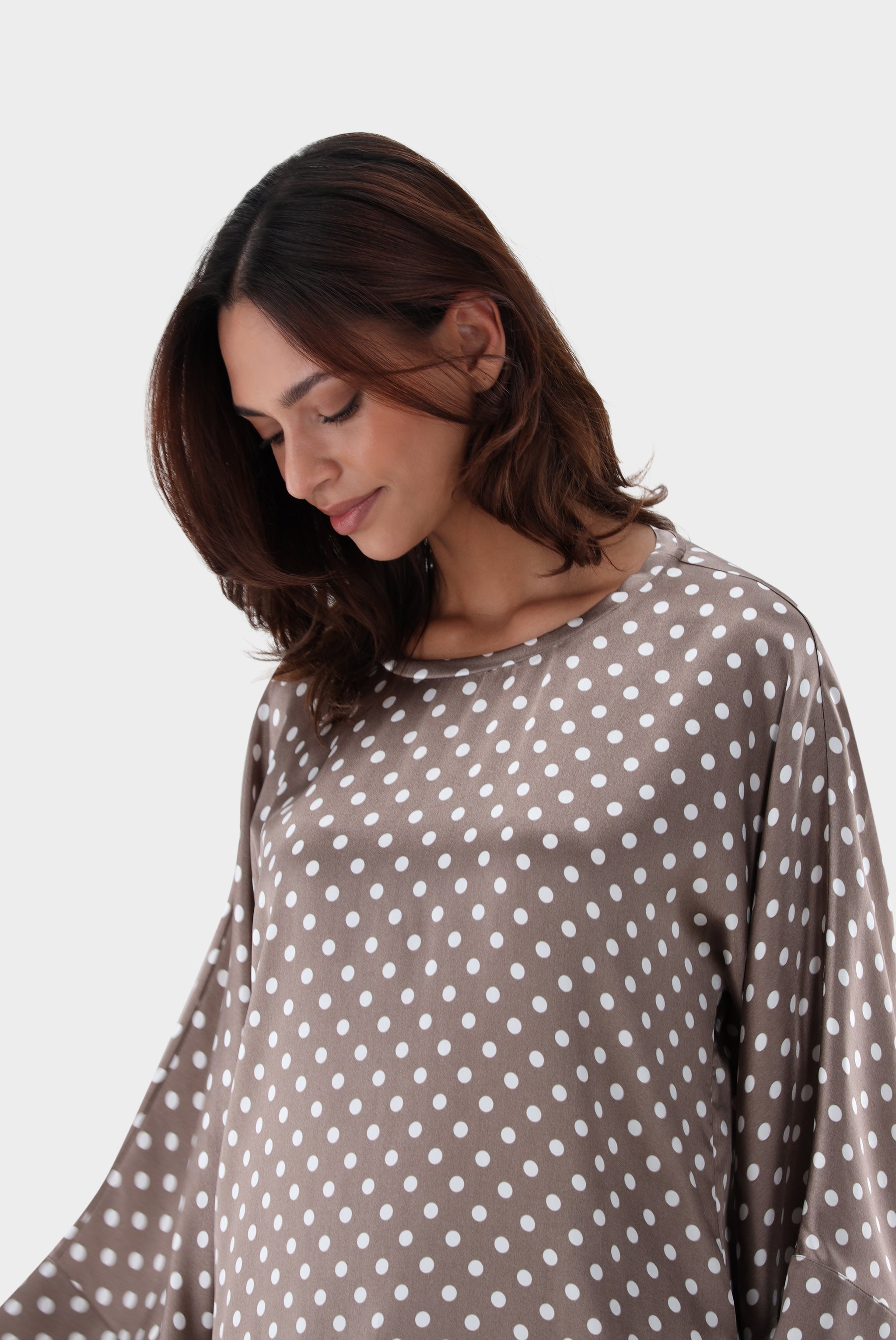 Lockere Schlupfbluse aus Seide mit Punkte Druck