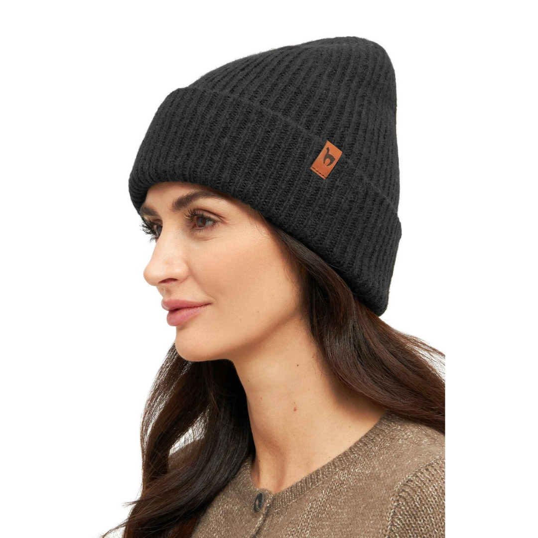 Die klassische Rippstrick-Optik mit edlem Leder-Label sorgt für zeitlose Eleganz, während der dehnbare Stoff sich jeder Kopfform angenehm anpasst. Ideal für alle, die besonderen Wert auf Qualität, Nachhaltigkeit und fairen Handel legen.