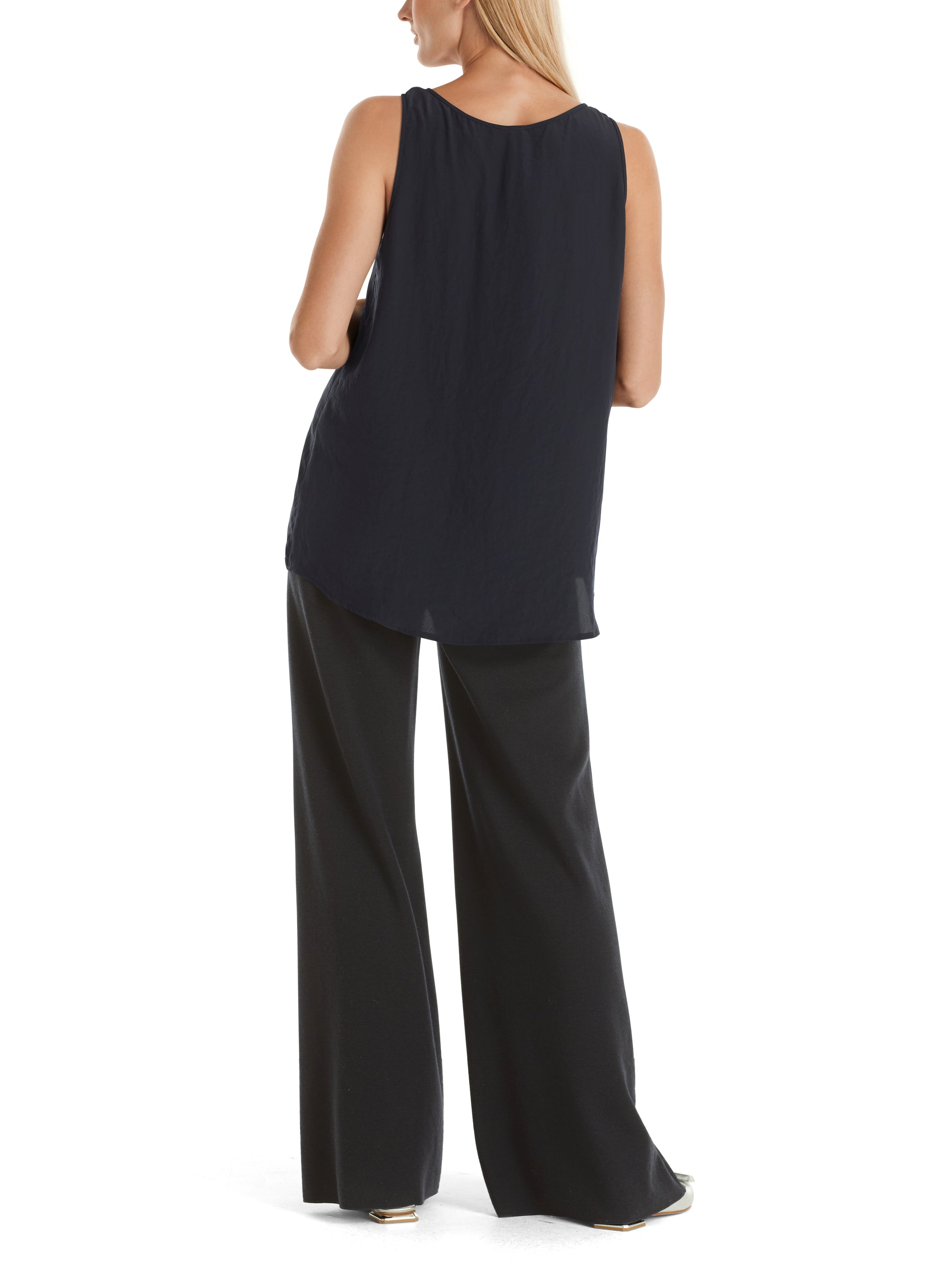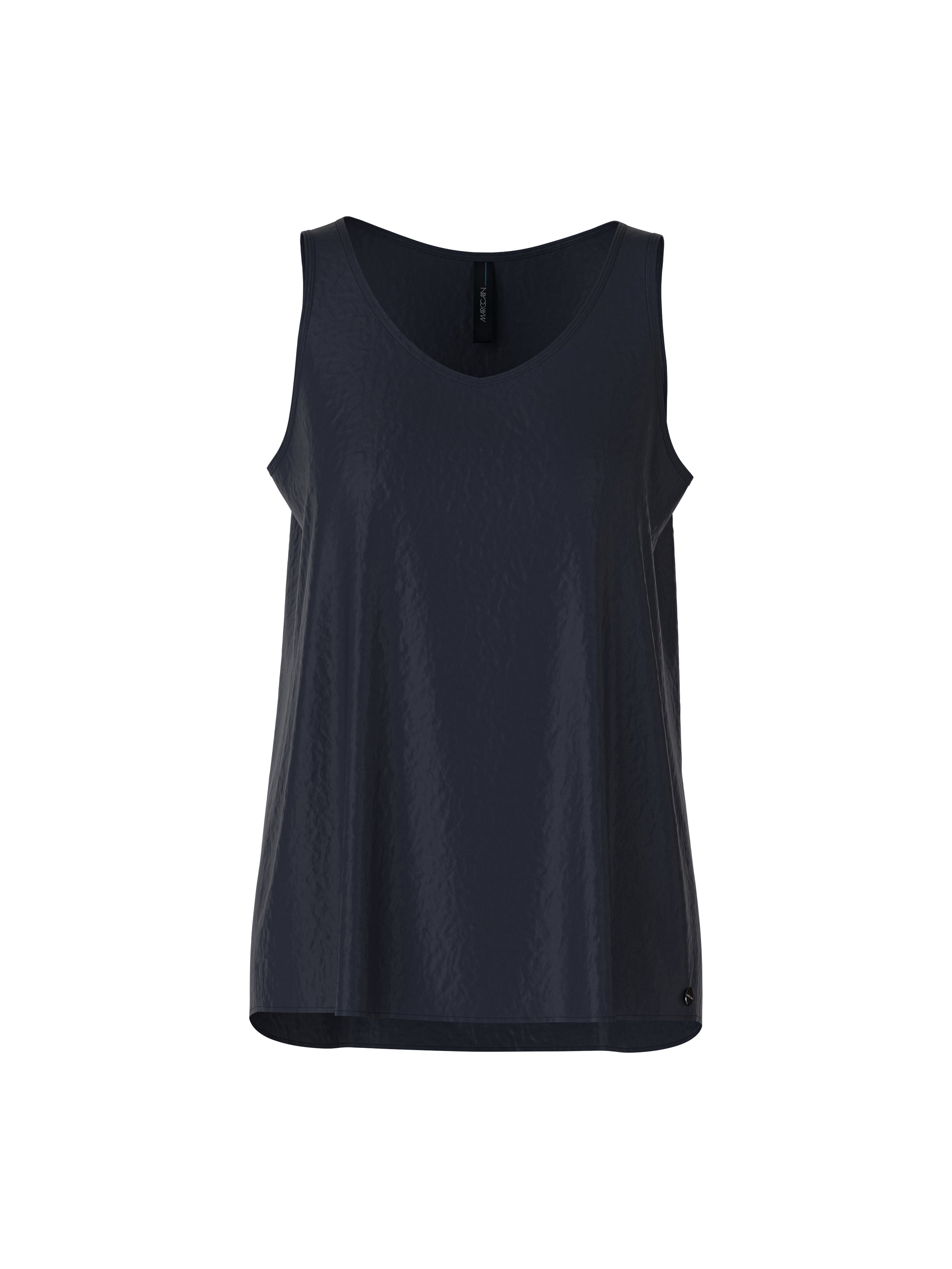 Als ideales Basic erweist sich dieses ärmellose Top. Es kommt mit lockerem Sitz. Ein Rundhalsausschnitt sowie der abgerundete Rückensaum definieren das Design. Dank Material-Mix mit recycelten Garnen überzeugt das Oberteil auch mit seinem fließenden Fall.
