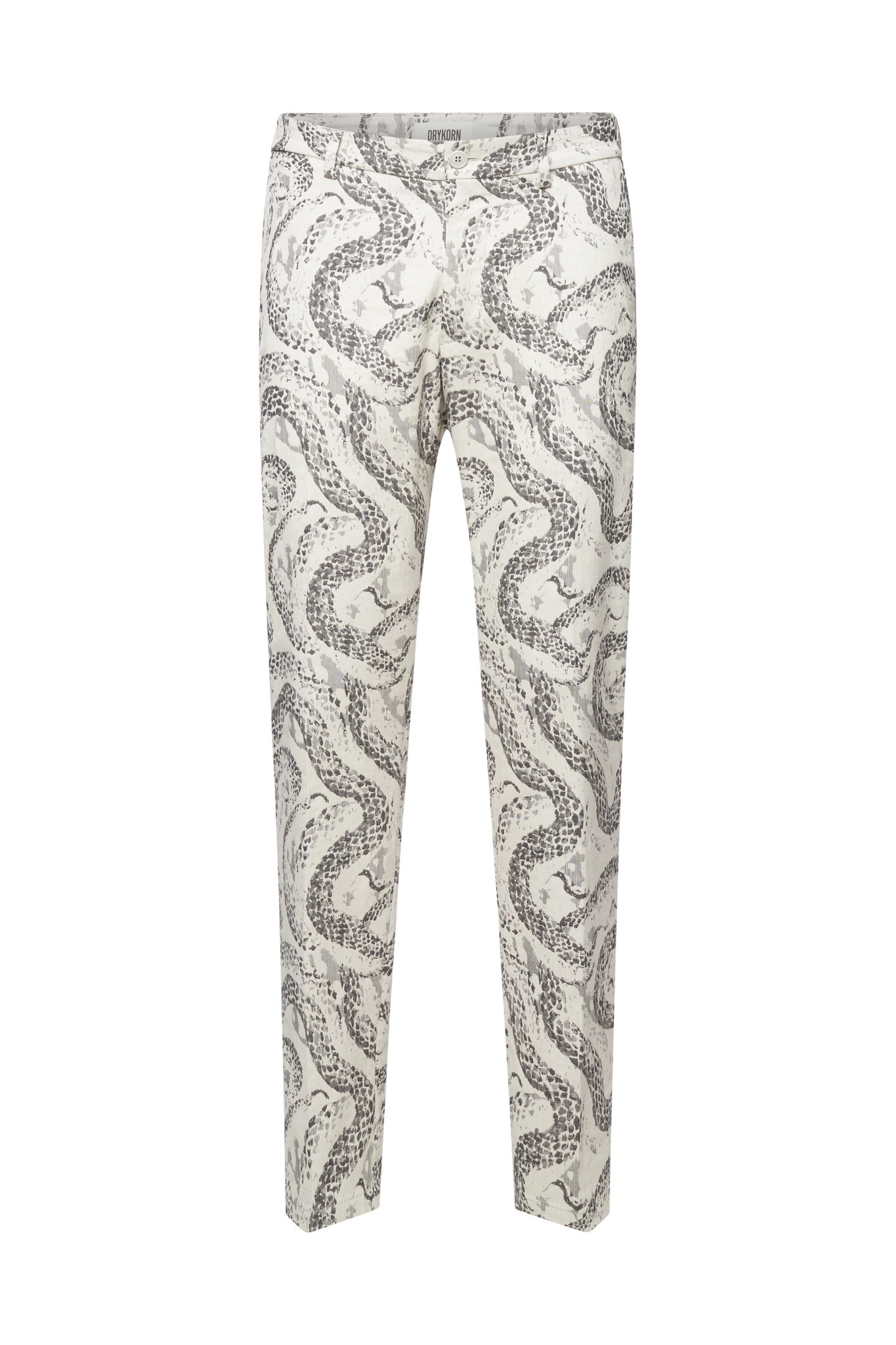AJEND is a classic trouser with a crease and tapered leg. The elastic insert on the side of the waistband gives it a sporty touch and thus offers a high degree of comfort. It can be combined with a jacket and classic shoes for a formal look. The high-quality jacquard fabric has a modern look thanks to the snake design.