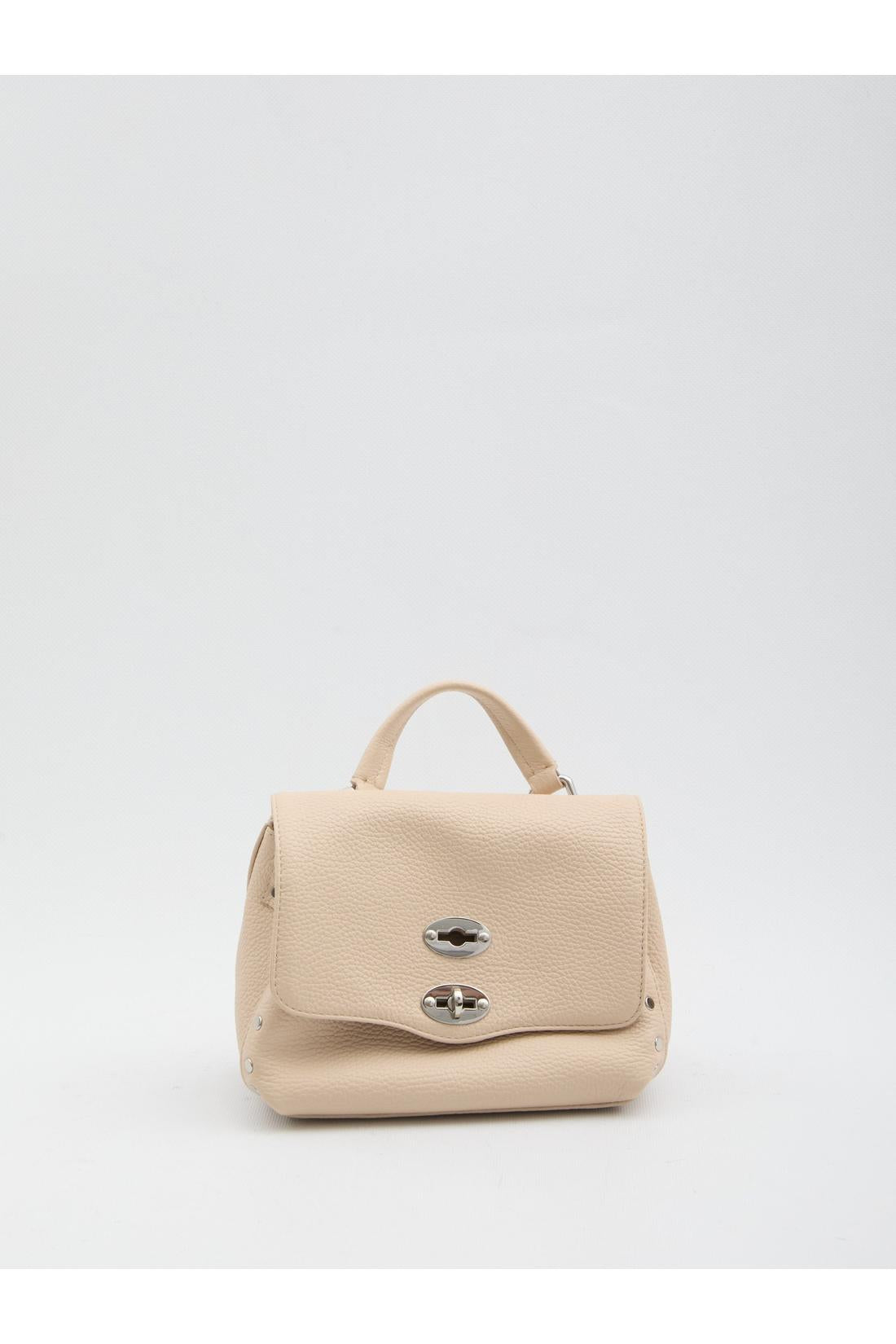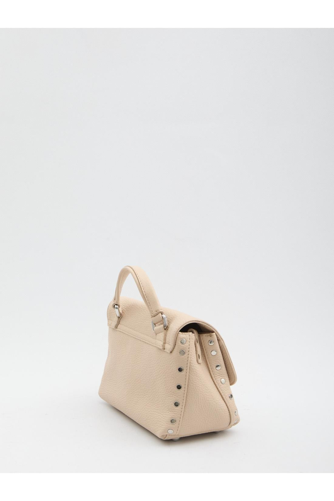Light pink hammered leather bag. It features a fixed top handle, adjustable and removable shoulder strap, double swivel clasp closure, metal feet, one main compartment, one flat internal pocket, cotton lining. Dust bag included. Any leather imperfections should not be considered manufacturing defects, but a characteristic of the material.