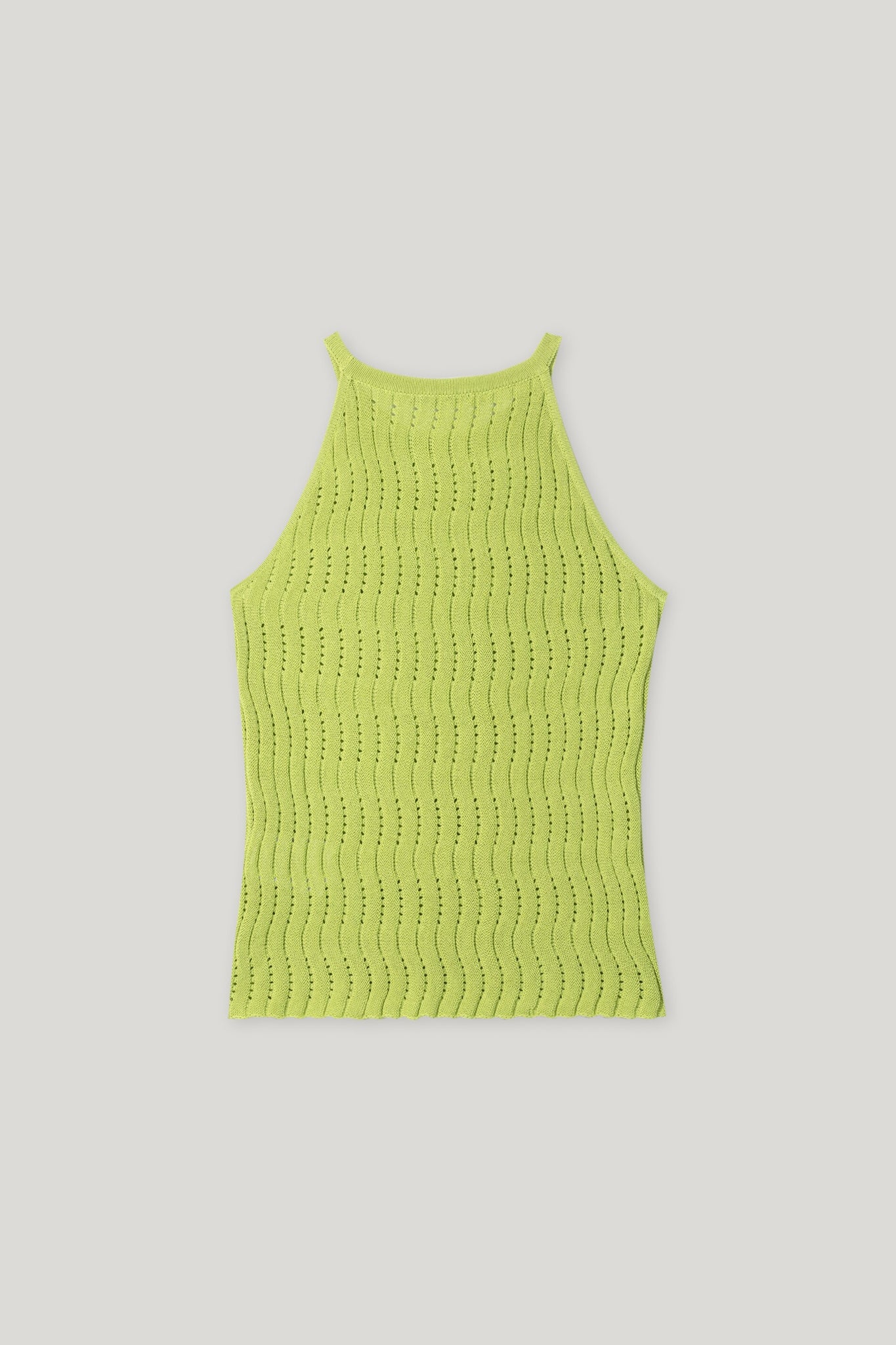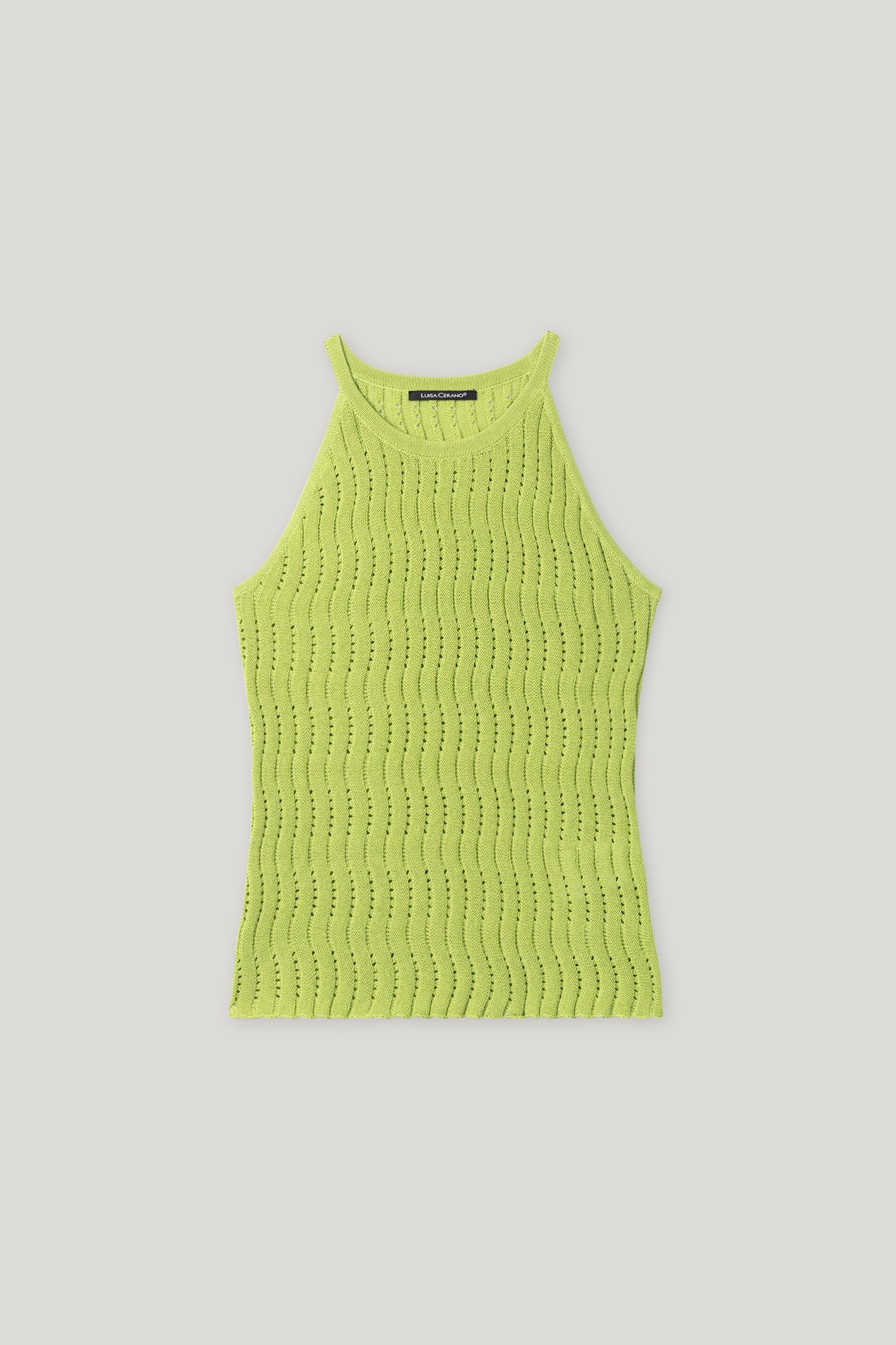 Ärmelloses Top aus einer sommerlich kühlen Crêpe-Baumwollmischung mit Rundhalsausschnitt. Das Design besticht durch ein gestricktes Wellenmuster in Links-Struktur.
