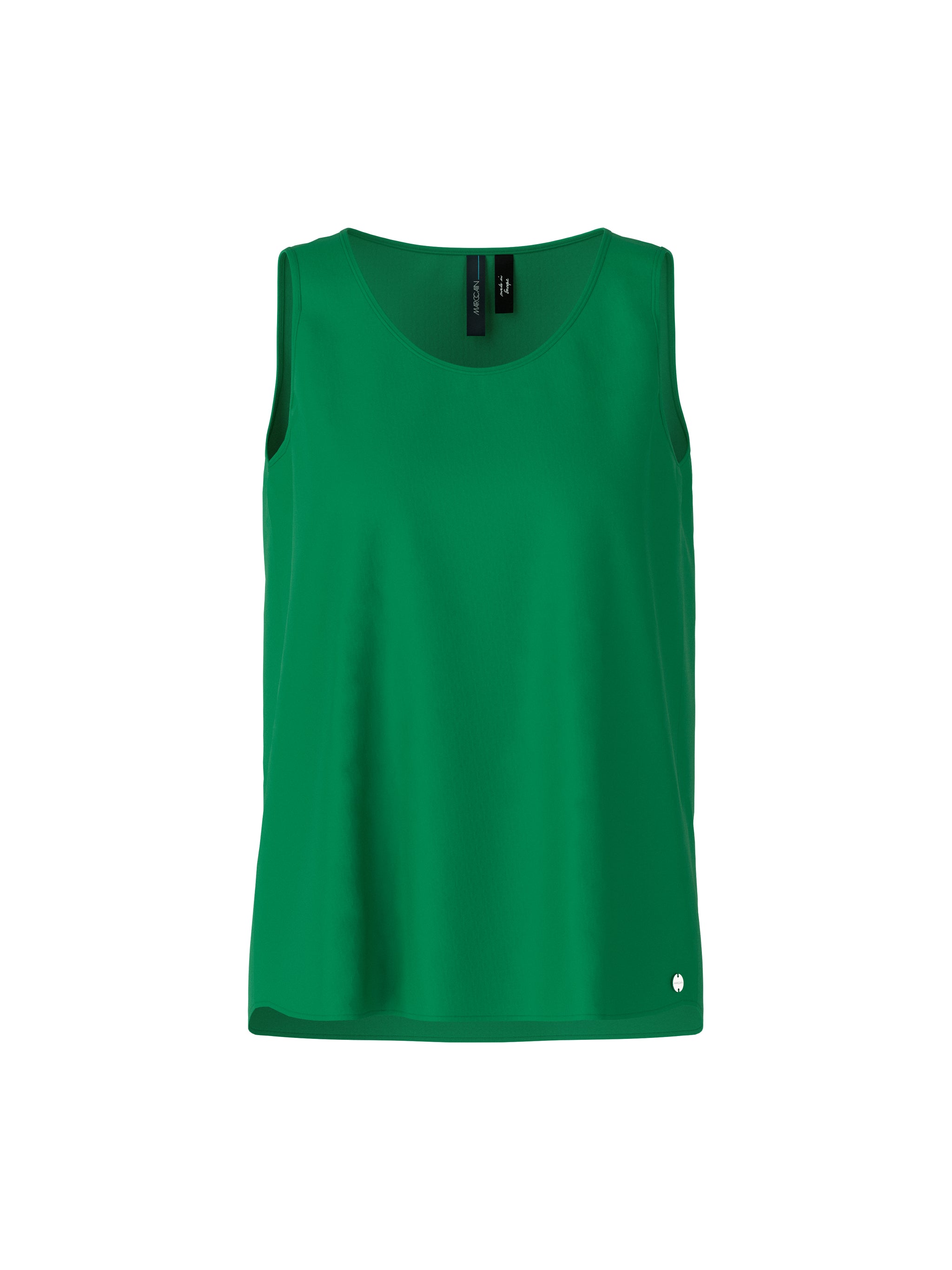 Dieses Top präsentiert einen lockeren Schnitt. Rundhals und Armausschnitte sind fein eingesäumt, der Rücken ist leicht verlängert. Mit seinem weich fallenden Material ist das Oberteil ein entspanntes Basic für viele Looks.