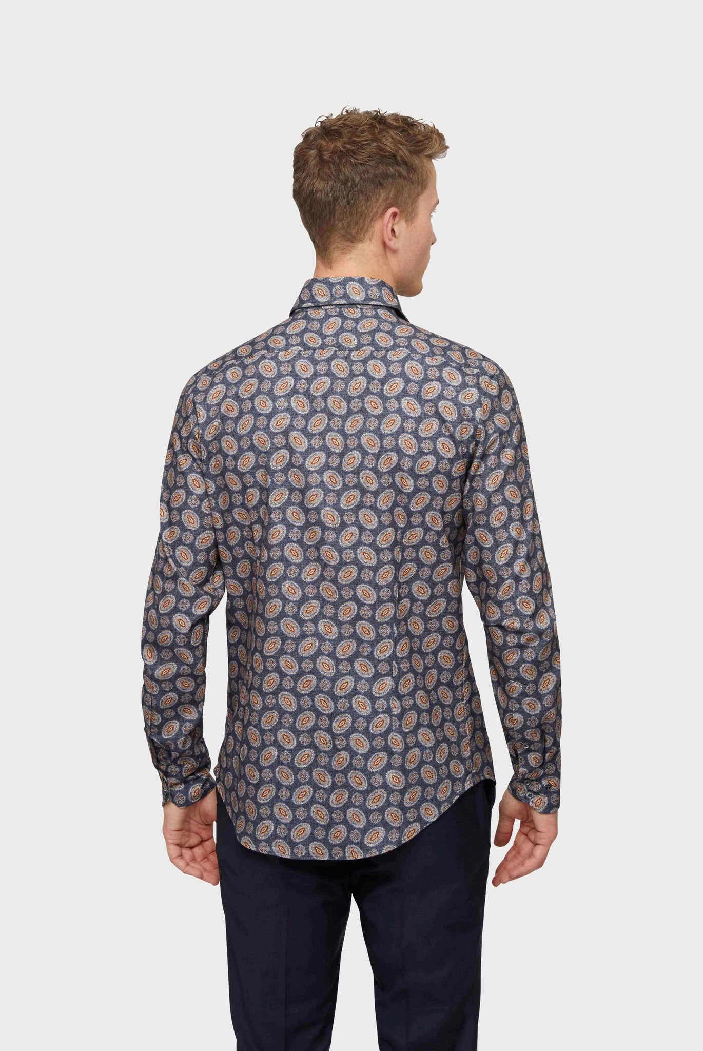 Hemd mit Paisley Print Haifischkragen Slim Fit Blau