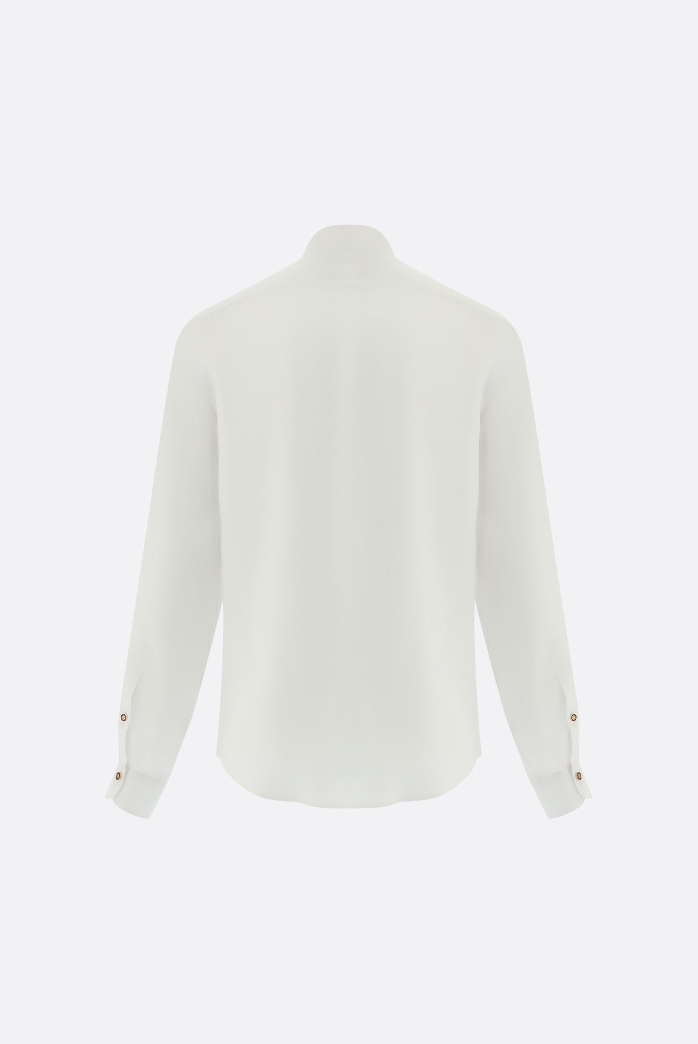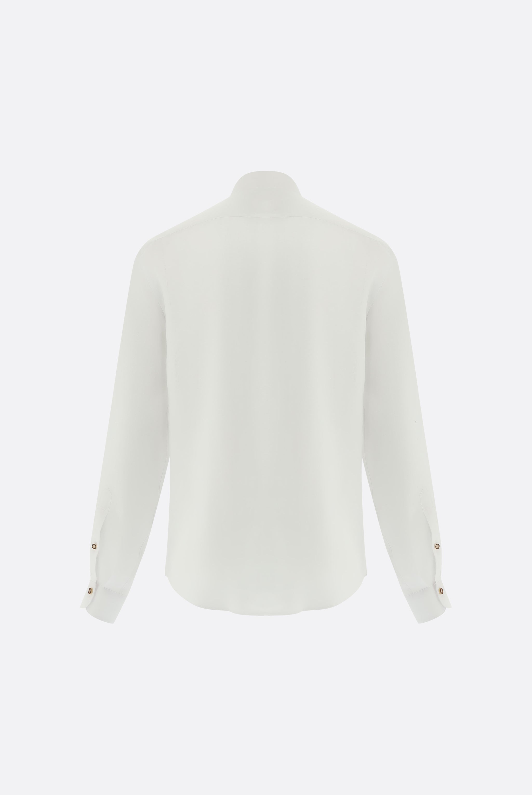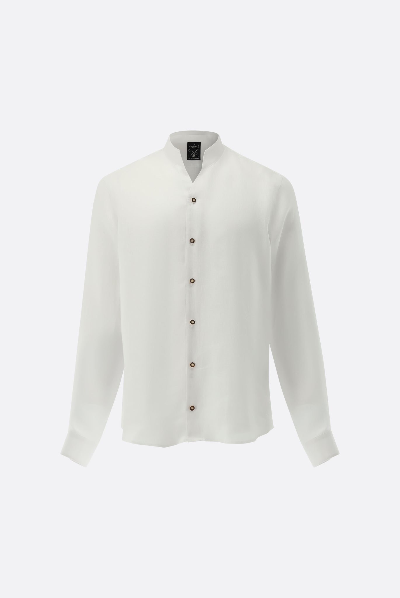 Das Hemd mit Stehkragen und V-Kragen aus Leinen ist besonder luftdurchlässig. Das Hemd verfügt über einen Stehkragen mit V-Ausschnitt, klassische Manschetten mit dem charakteristischen Van-Laack-Schwung, eine taillierte Silhouette, spezielle van-Laack-Eckstiche und eine glatte Knopfleiste. Die hochwertige Hemdenverarbeitung umfasst Innennähte, Seitennähte, handgeknüpfte Nähte und Perlmuttknöpfe. Ideal für einen Smart-Casual-Look.