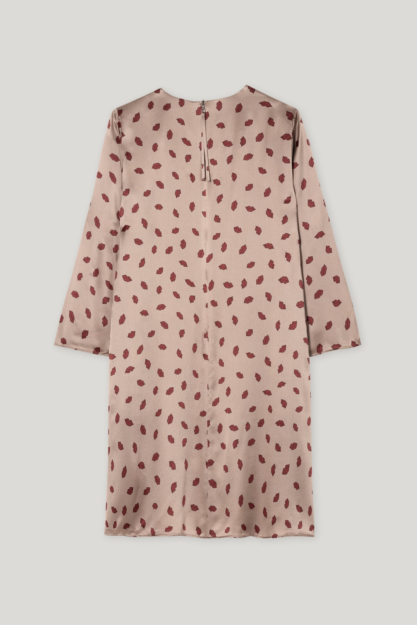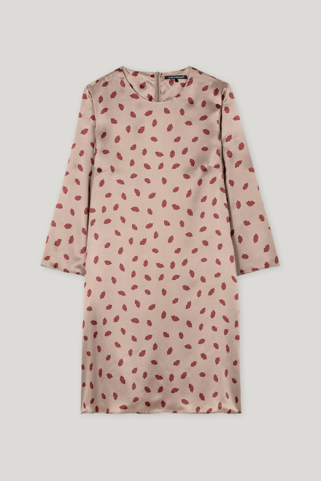 Locker geschnittenes Minikleid in leicht ausgestellter Silhouette aus edlem Seidensatin. Das Kleid ist mit einem exklusiven Lippen-Print bedruckt und besitzt seitliche Eingrifftaschen.