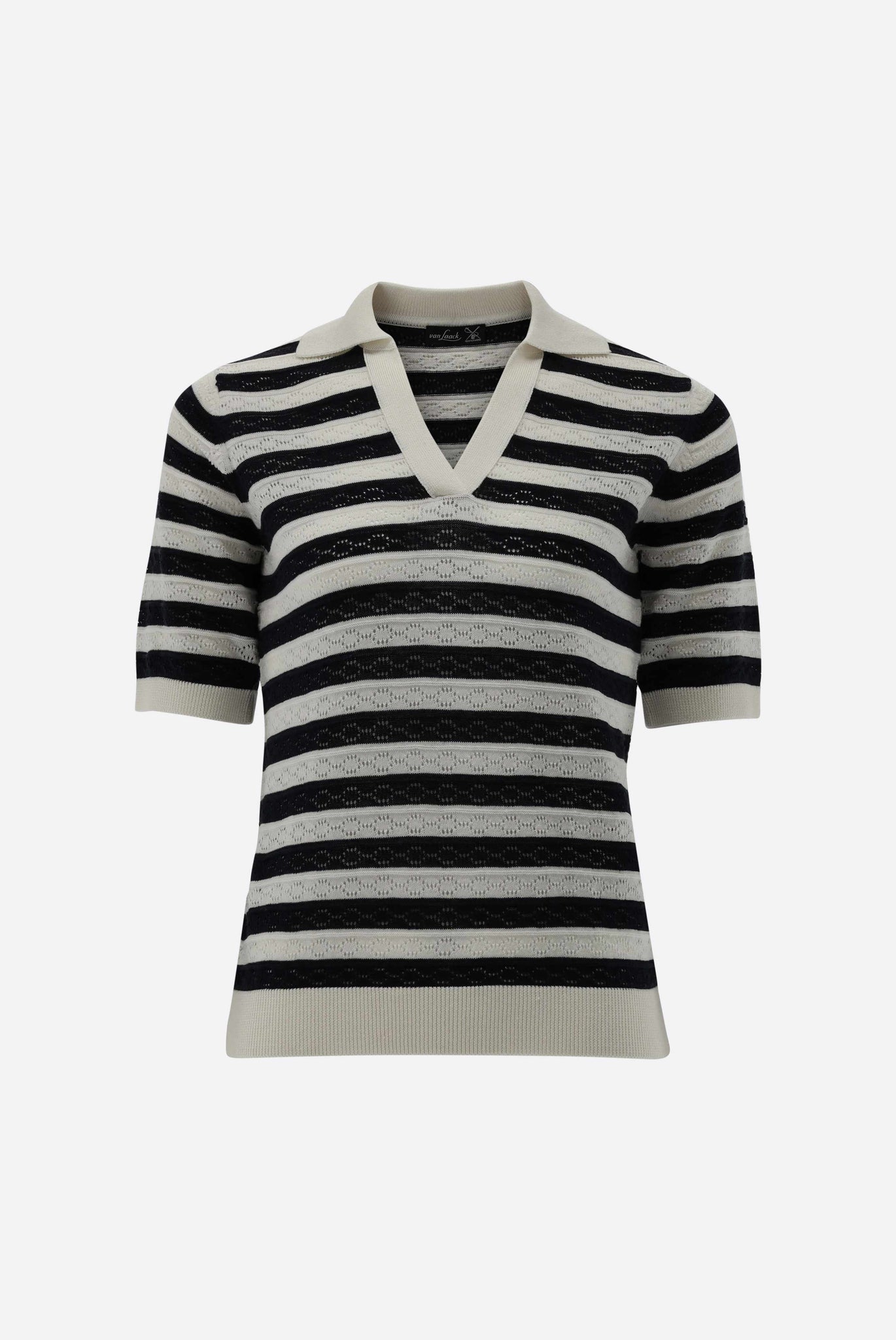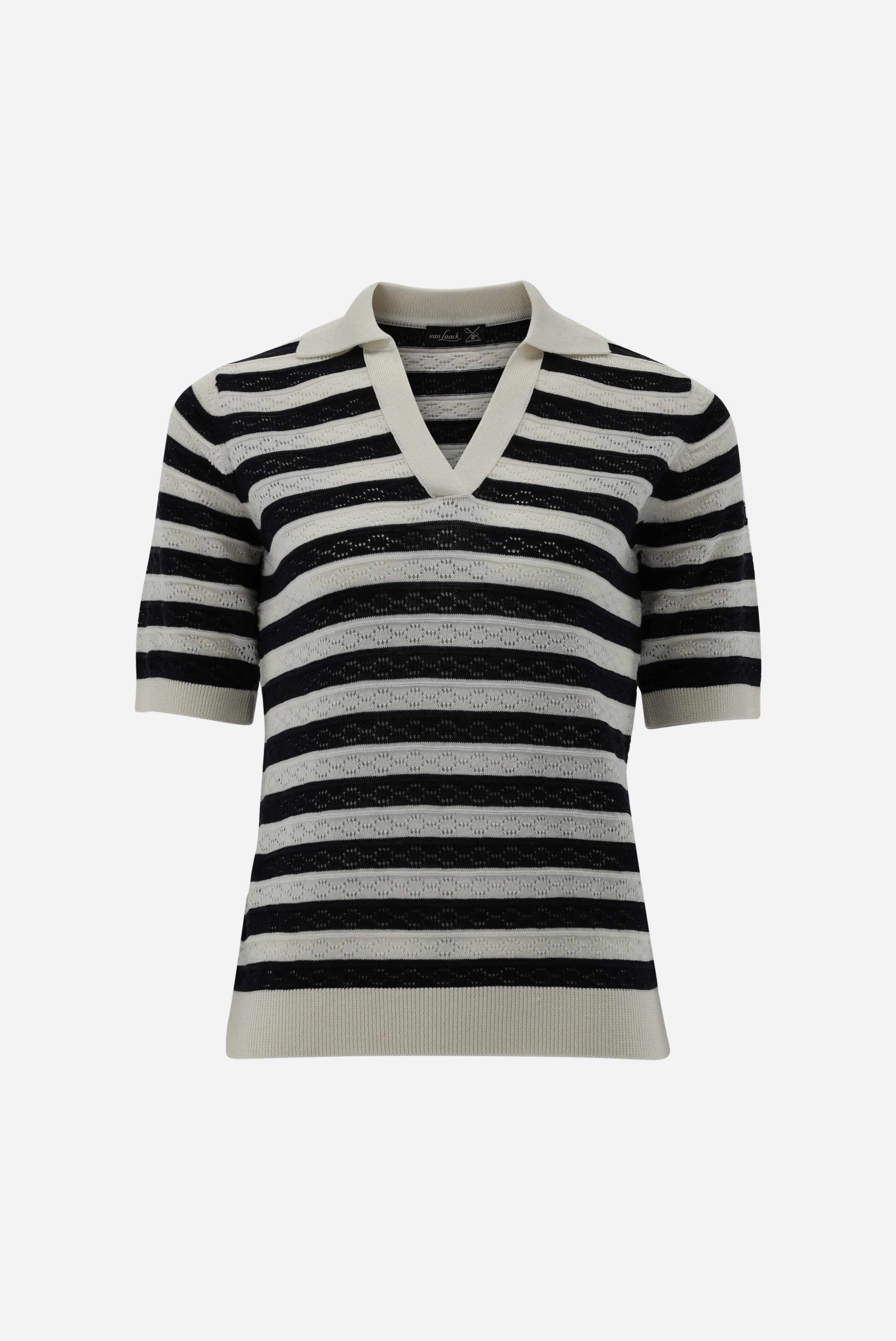 V-Polo | gestreift mit Ajourmuster aus Air Cotton