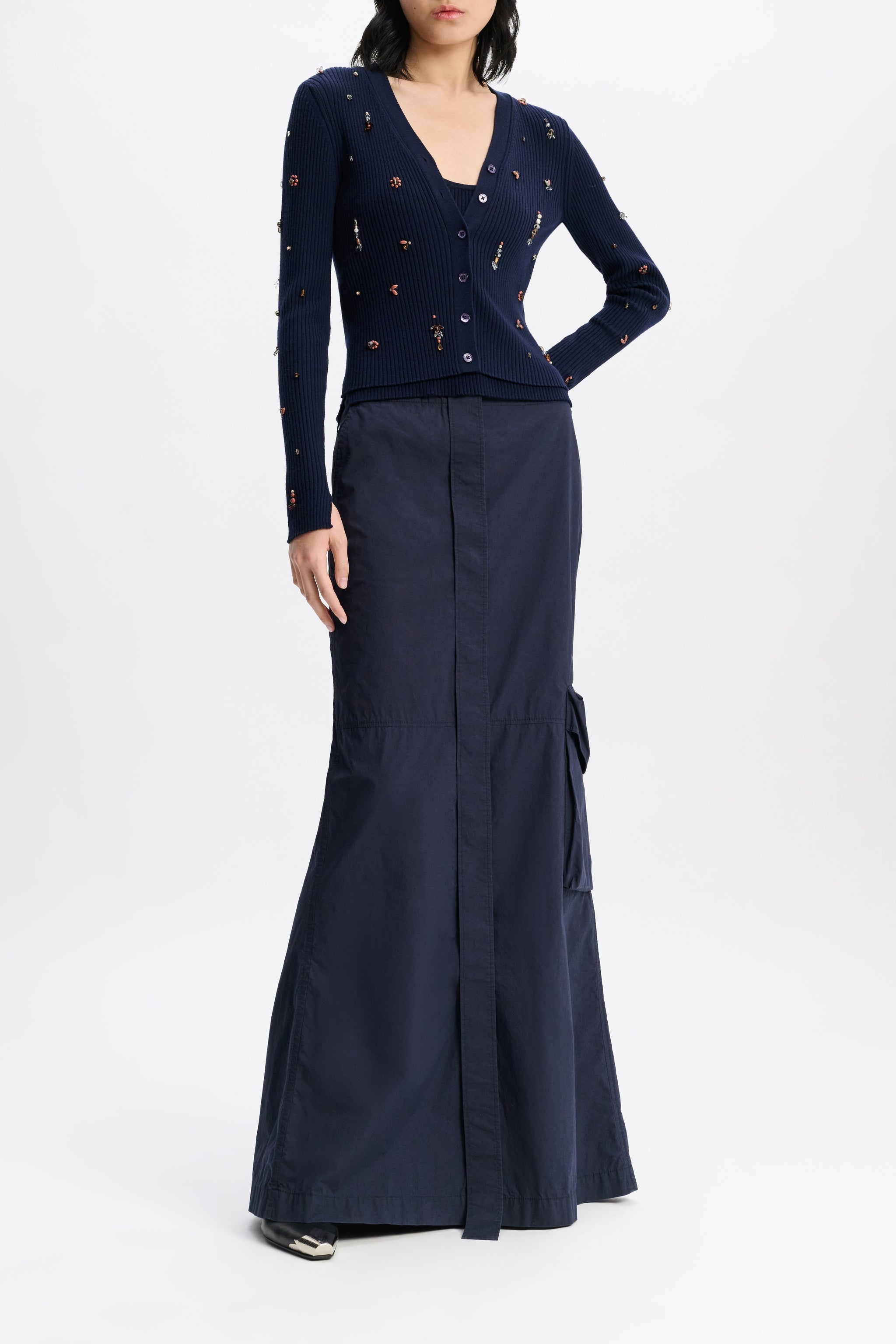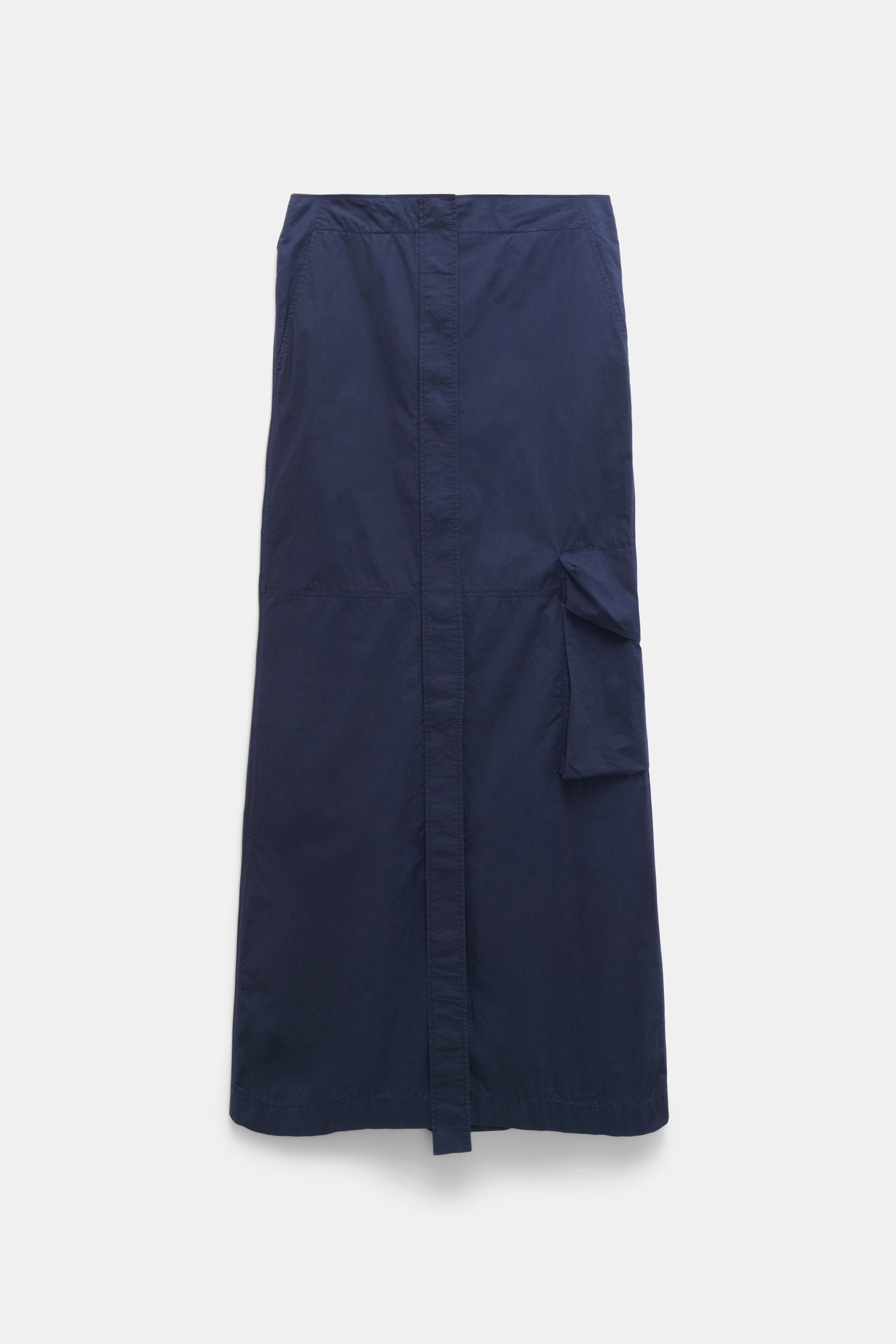 Der Rock aus Baumwoll-Stretch erhält durch aufgesetzte Taschen, Slits und Riegel-Details einen Cargo-Look. Die figurnahe Silhouette endet in einem leicht ausgestellten Saum.