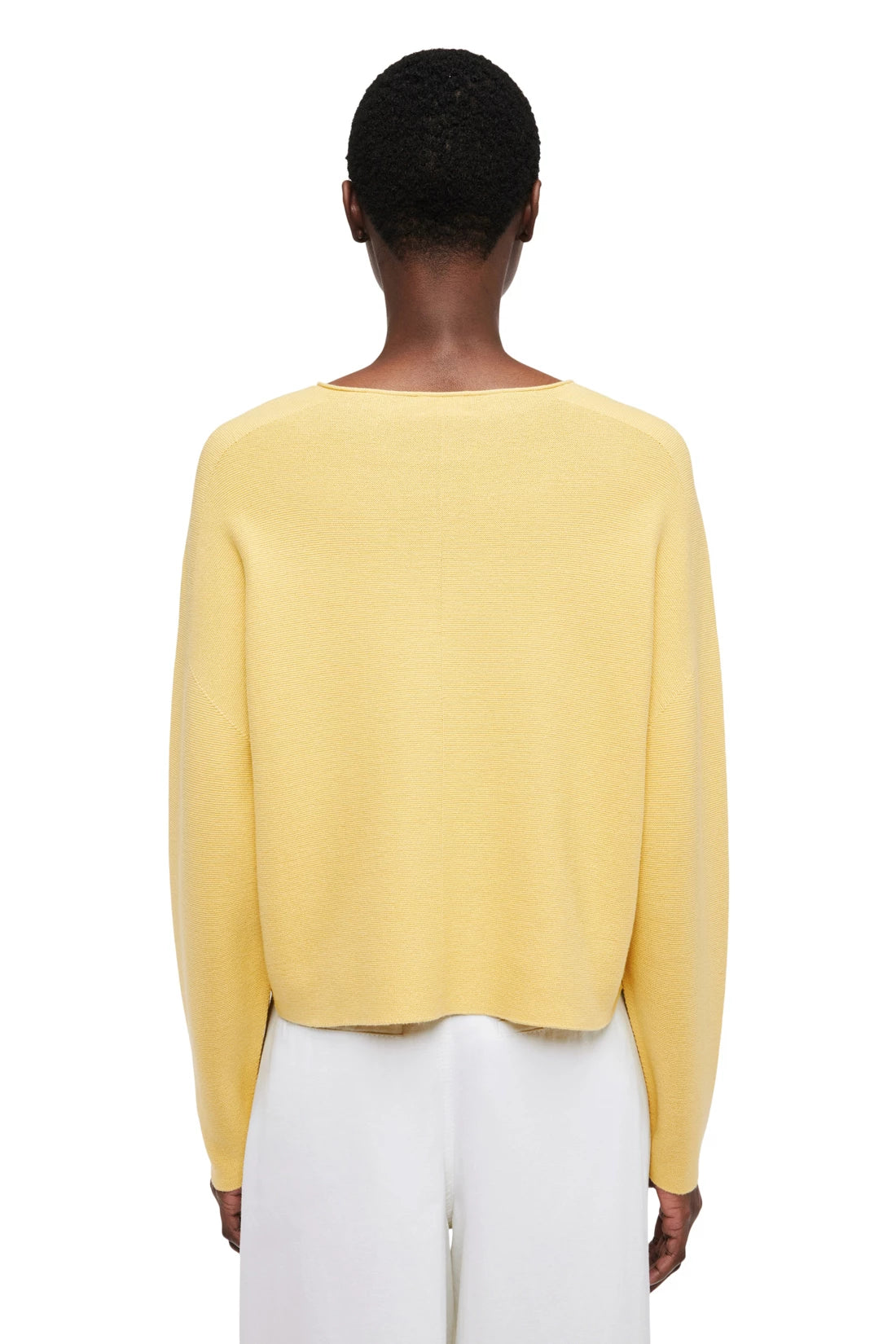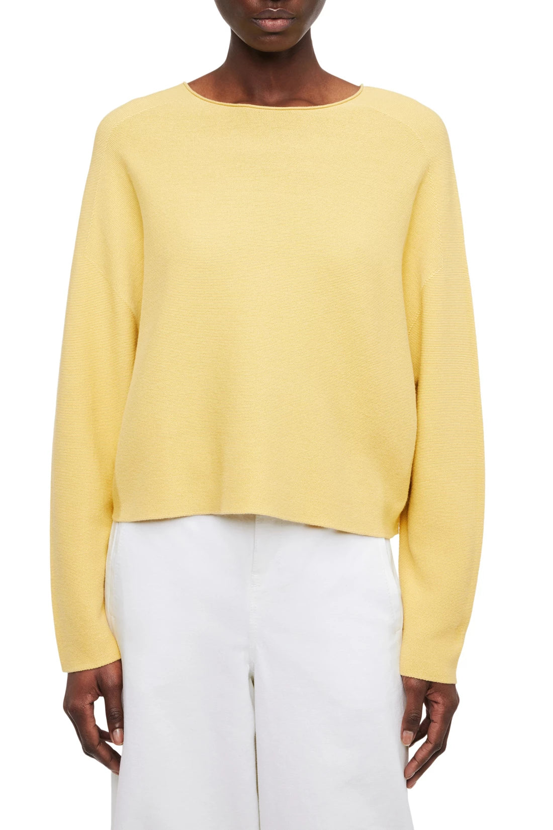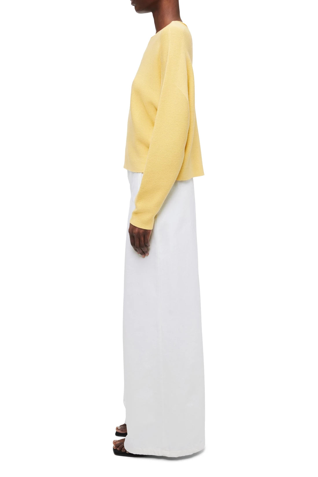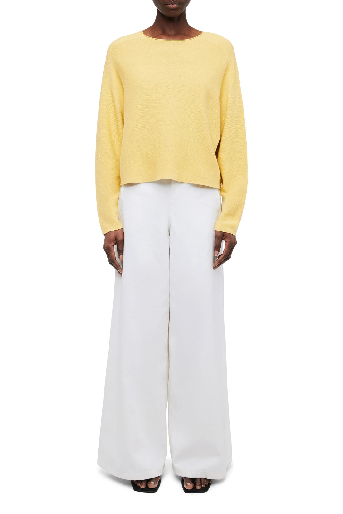 MEAMI is a cropped egg-shape jumper. The rolled neckline is a special detail. The luxurious cotton-cashmere blend is soft and comfortable to wear.