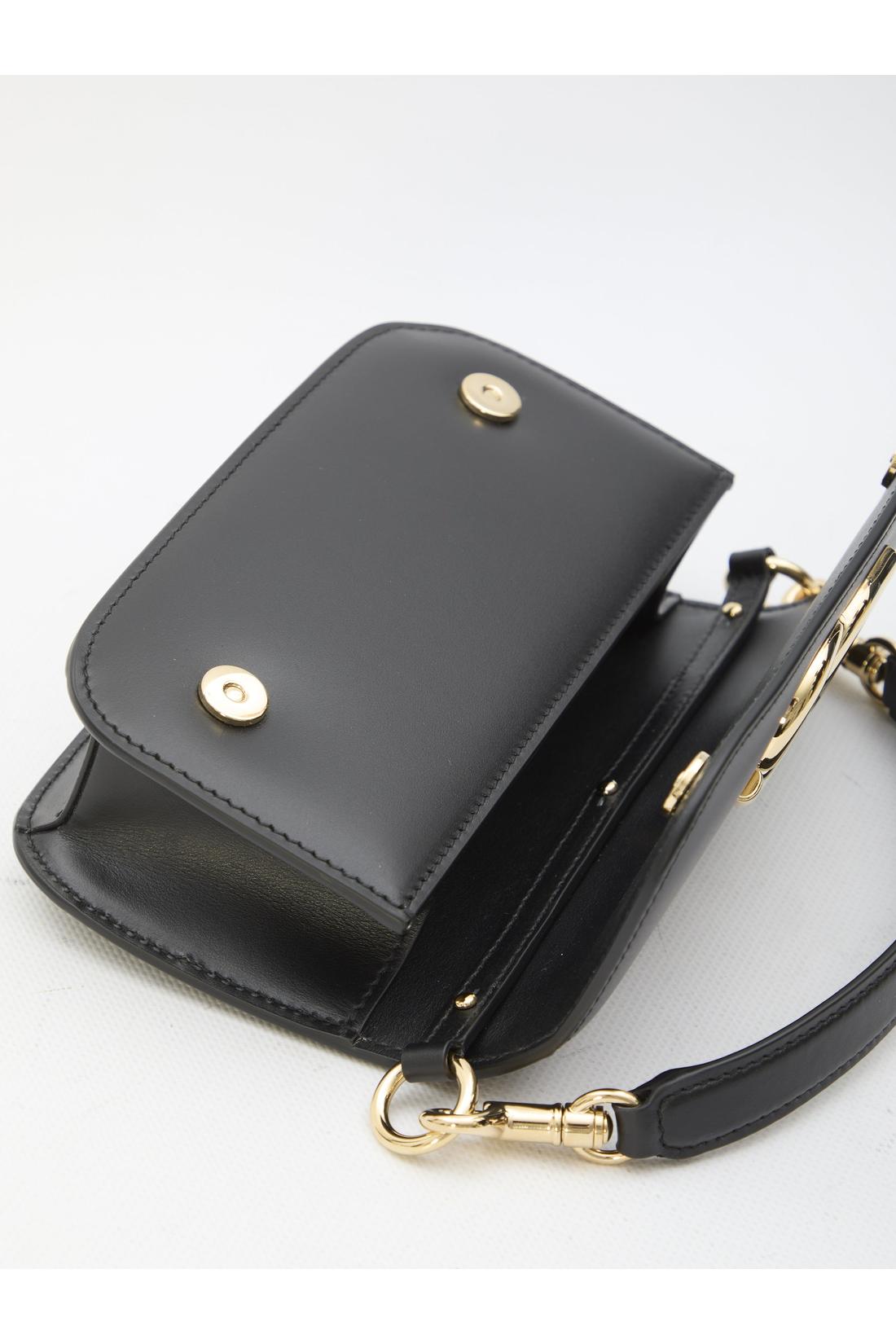 3.5 crossbody bag in black smooth calfskin with gold-tone metal DG logo on the front. It features detachable chain shoulder strap, detachable leather handle, magnetic closure, one main interior compartment and one interior flat pocket. Dust bag included. Any leather imperfections are not to be considered manufacturing defects, but a peculiarity of the material.