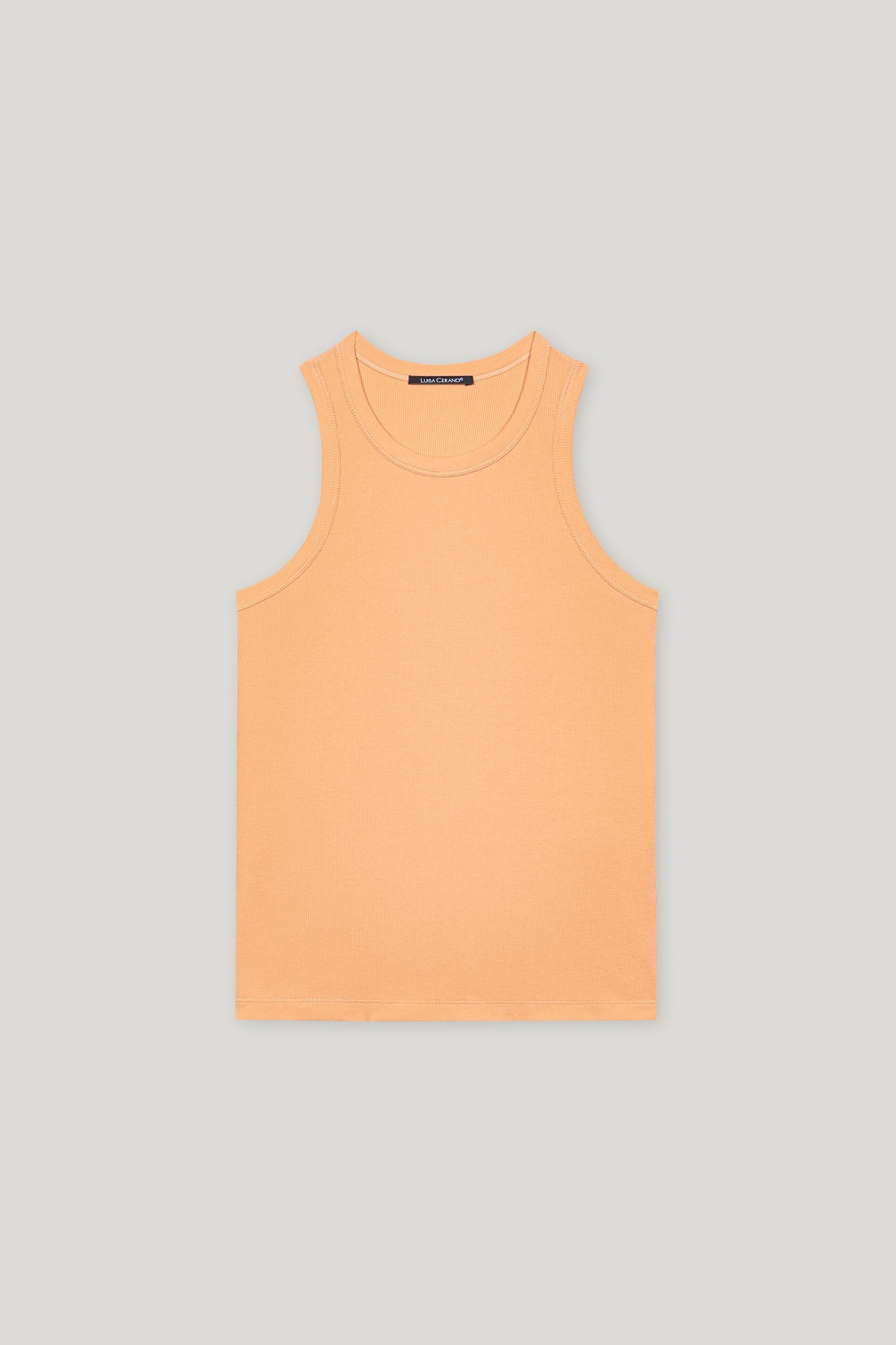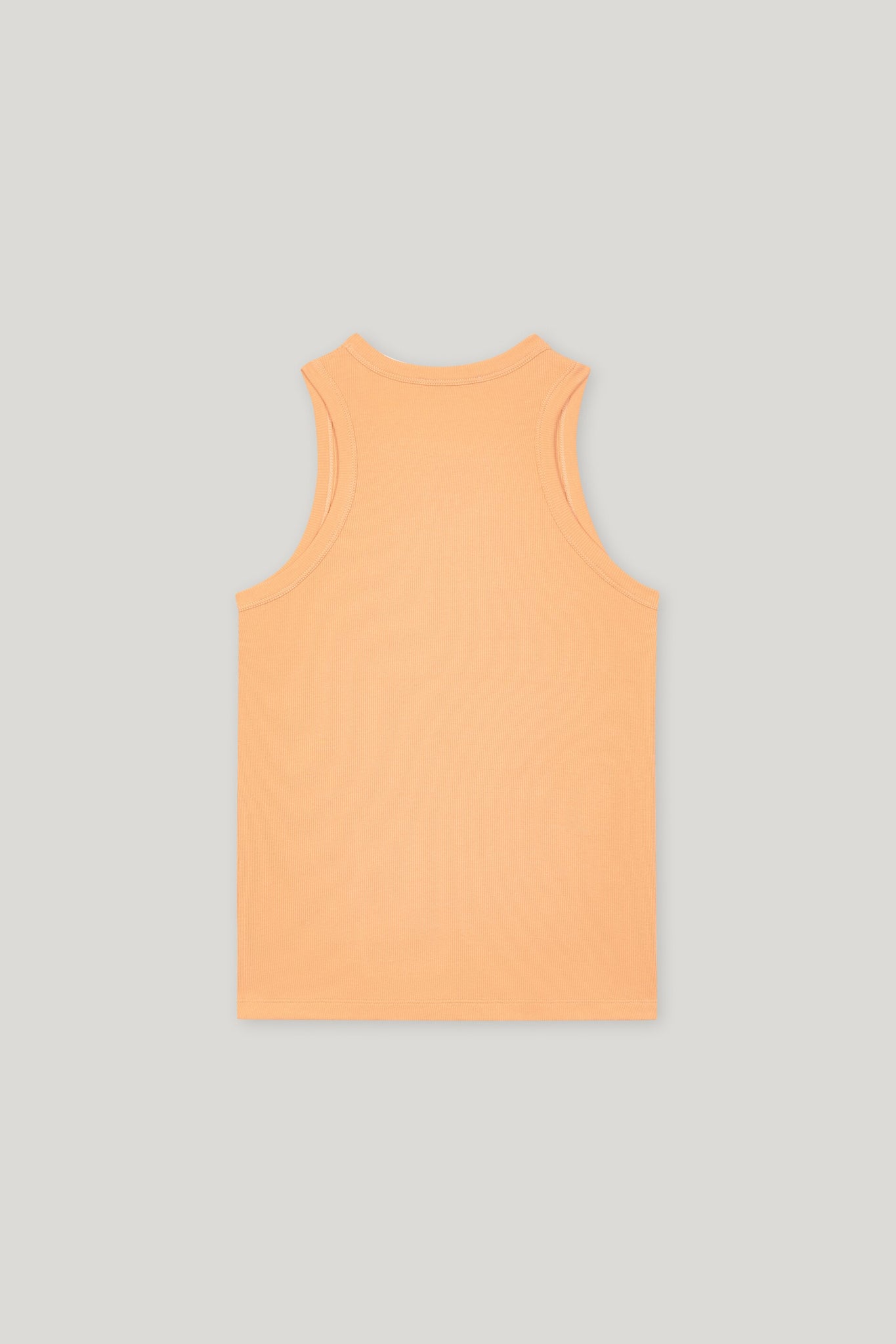 Tanktop aus nachhaltiger Baumwolle mit Stretchanteil und gerippter Struktur. Das Top ist enganliegend geschnitten und im Basic-Design mit Rundhalsausschnitt gehalten.