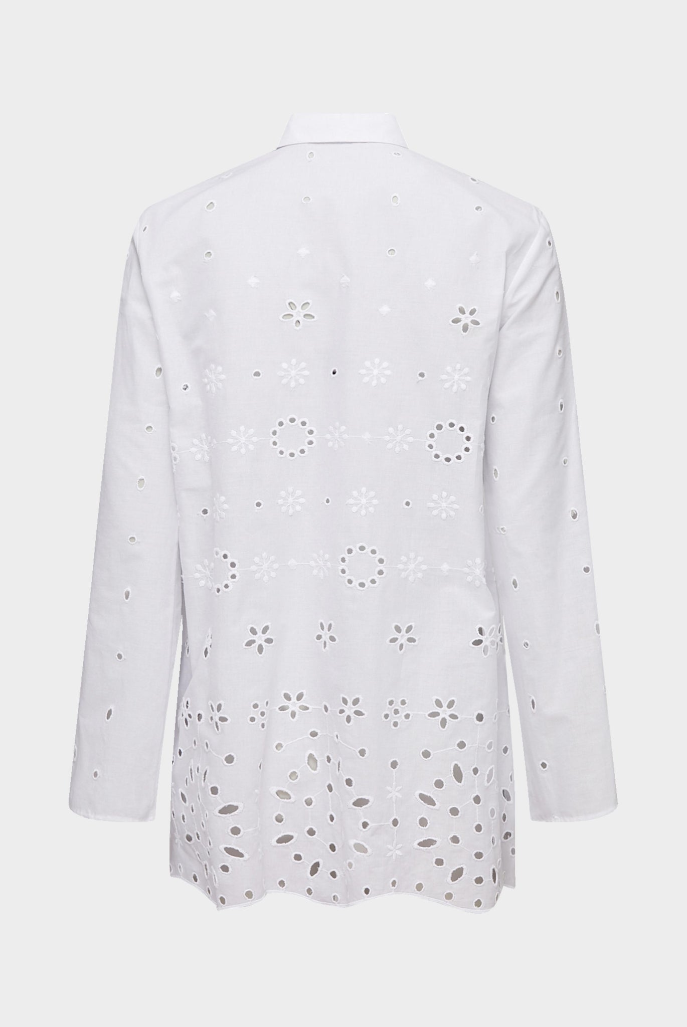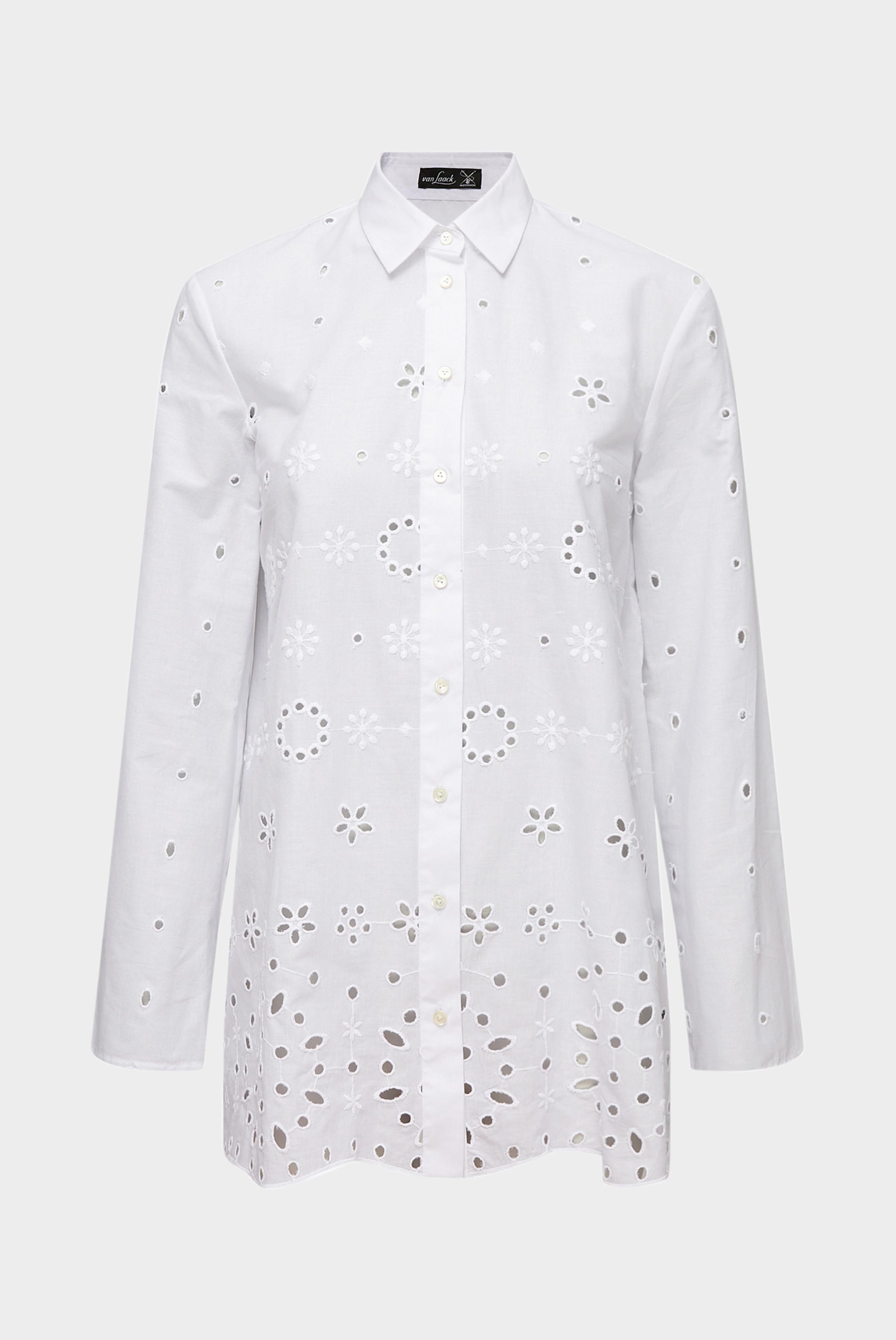 Dieses locker sitzende Baumwollhemd mit Lochstickerei und welligem Saum interpretiert Romantik auf moderne Art.