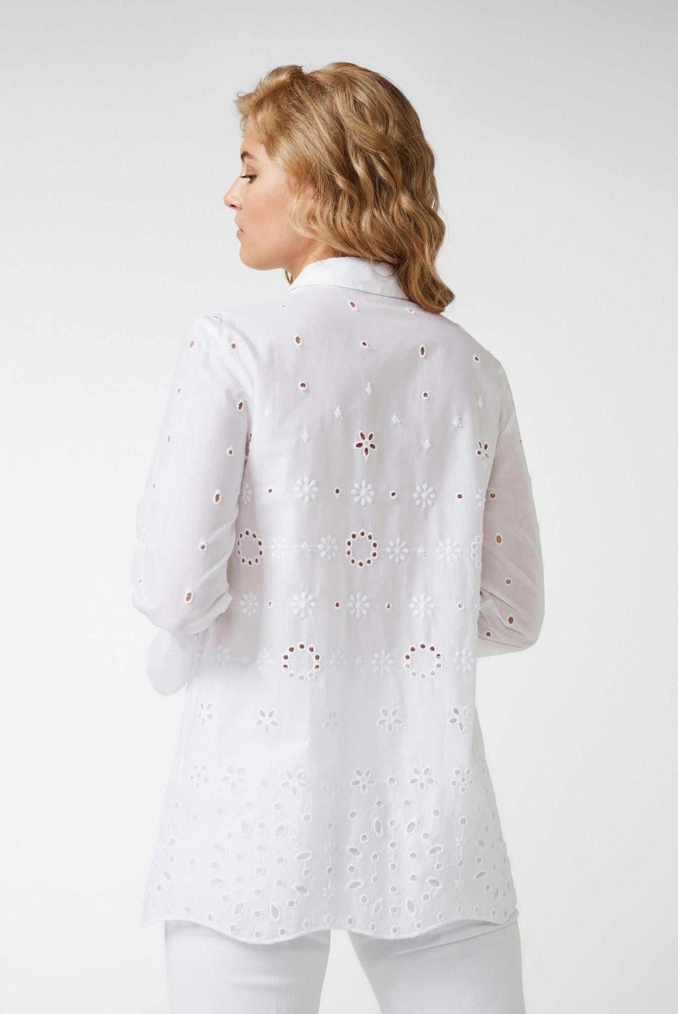 Baumwoll-Bluse mit Glockenärmeln und Lochstickerei Weiß