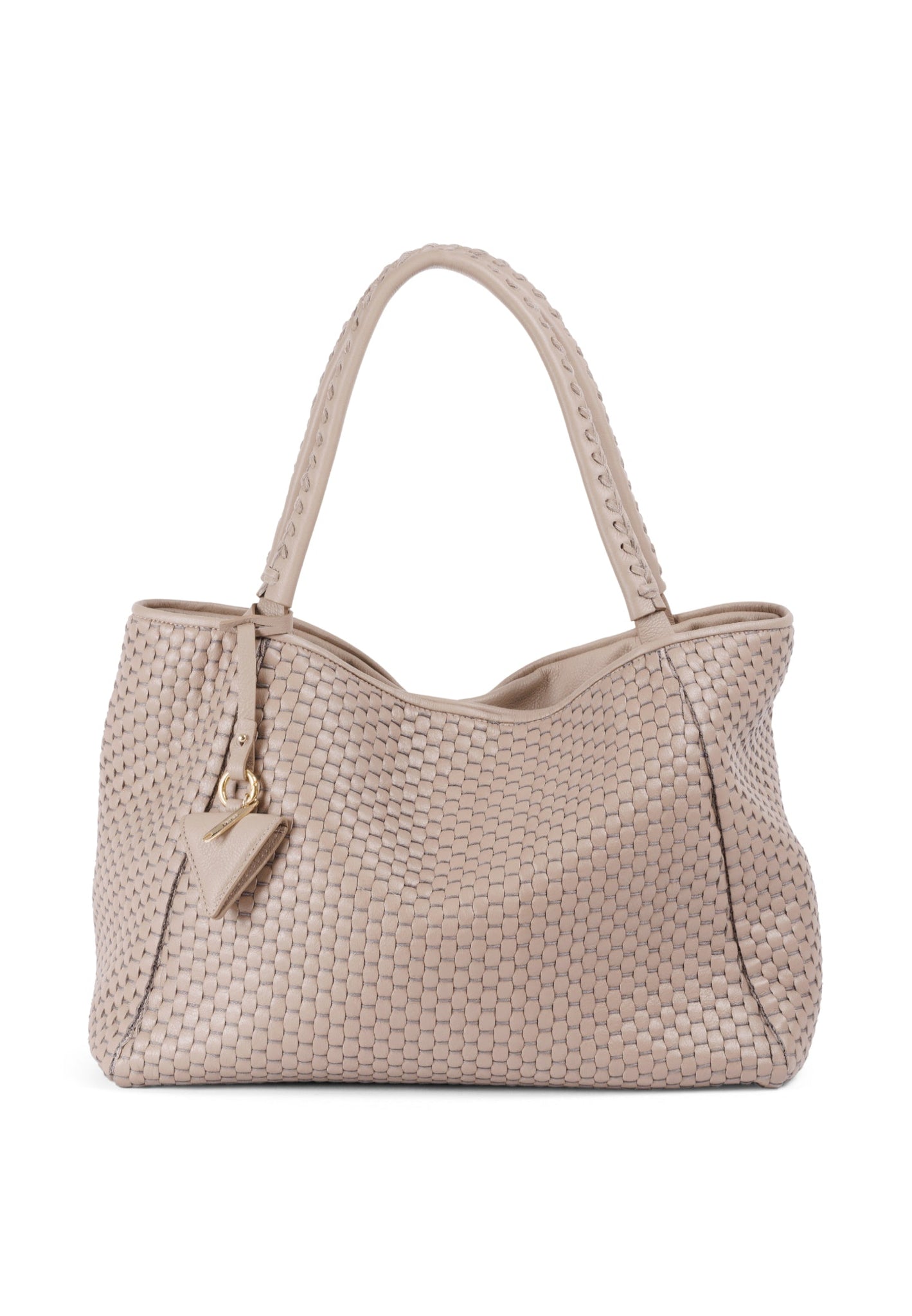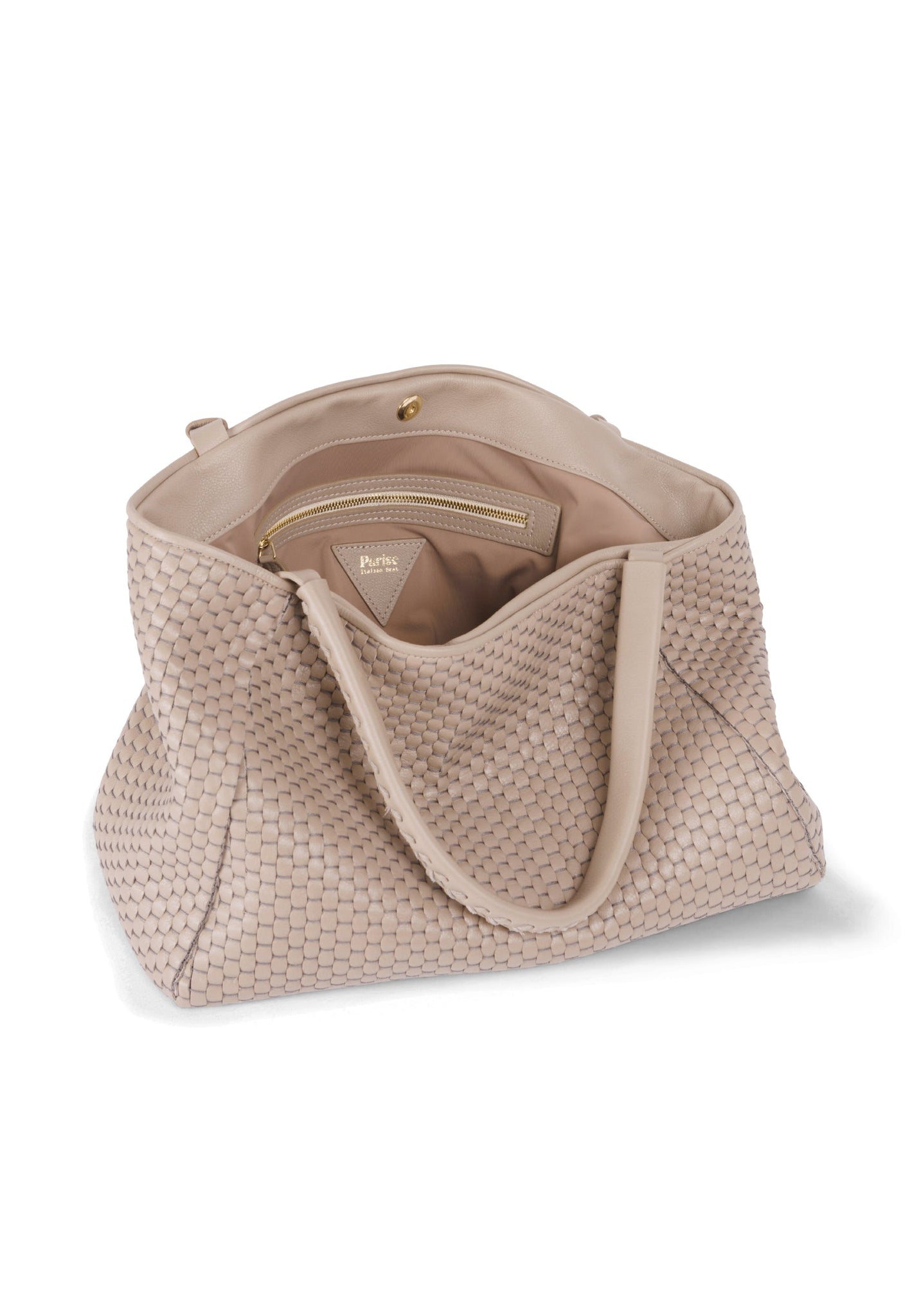 Product: '09' Plain Acacia- Edge without fringes for those who prefer more minimalist designs - Double leather handles that fit easily over coats - Magnetic closure for secure and easy access - Internal zipped pocket and two leather compartments to organise your essentials - White gold colored hardware - Soft and durable 100% cotton lining - Exclusive signature Parise pendant included - Protective dust bag included for lasting beauty - Made in Italy - Premium 100% bovine leather woven with 100% cotton yarn on 18th century treadle looms