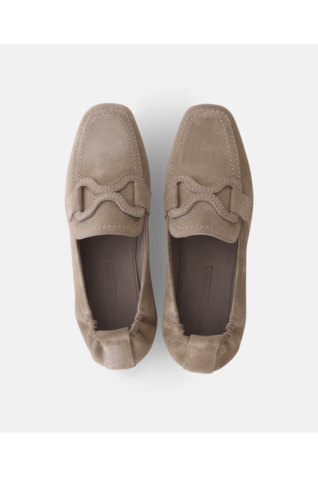 Der klassische Slipper GLORY überzeugt in der kommenden Saison im zeitlosen Design. Das hellbraune Veloursleder sorgt dabei für einen stimmigen und eleganten Look. Die kunstvolle Lederapplikation sorgt für einen stilvollen Akzent. Der eingearbeitete Gummizug garantiert die gewohnte Passform.