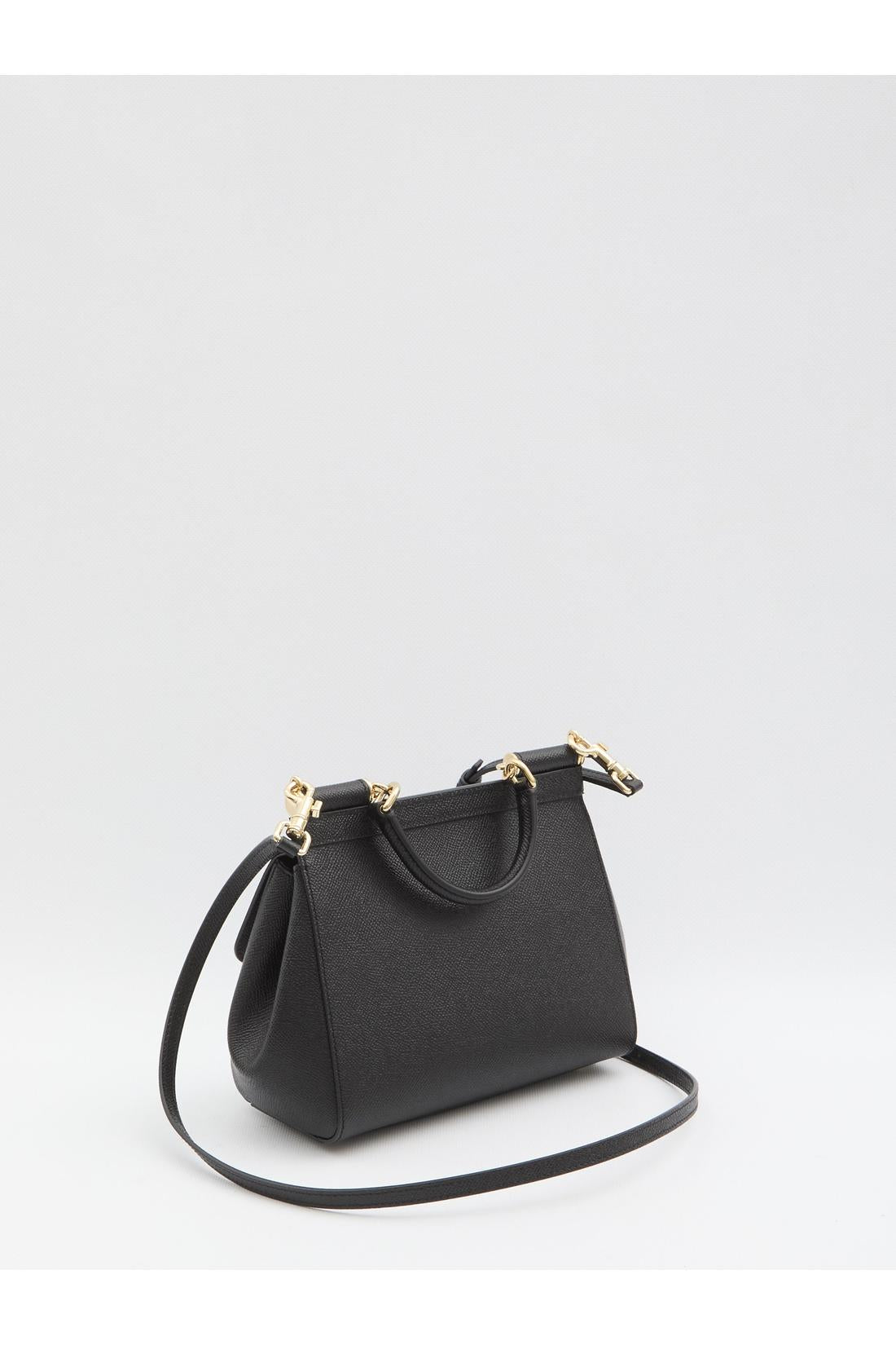 Black Dauphine calf leather handbag. Features front flap with double hidden magnetic closure, bigalvanic branded plaque, top handle and adjustable, removable shoulder strap, printed fabric lining, internal zip pocket with logo and one pocket, metal feet at the base, cotton lining. Dust bag included. Any leather imperfections are not considered manufacturing defects, but a characteristic of the material.