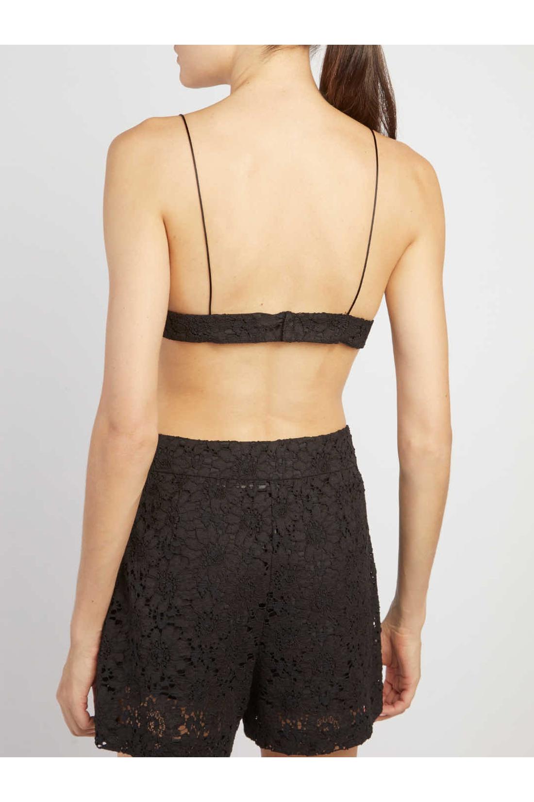Black lace shorts in a cotton blend with a see-through effect. Featuring a side zip closure, tone-on-tone removable culottes, and a high waist. Regular fit.