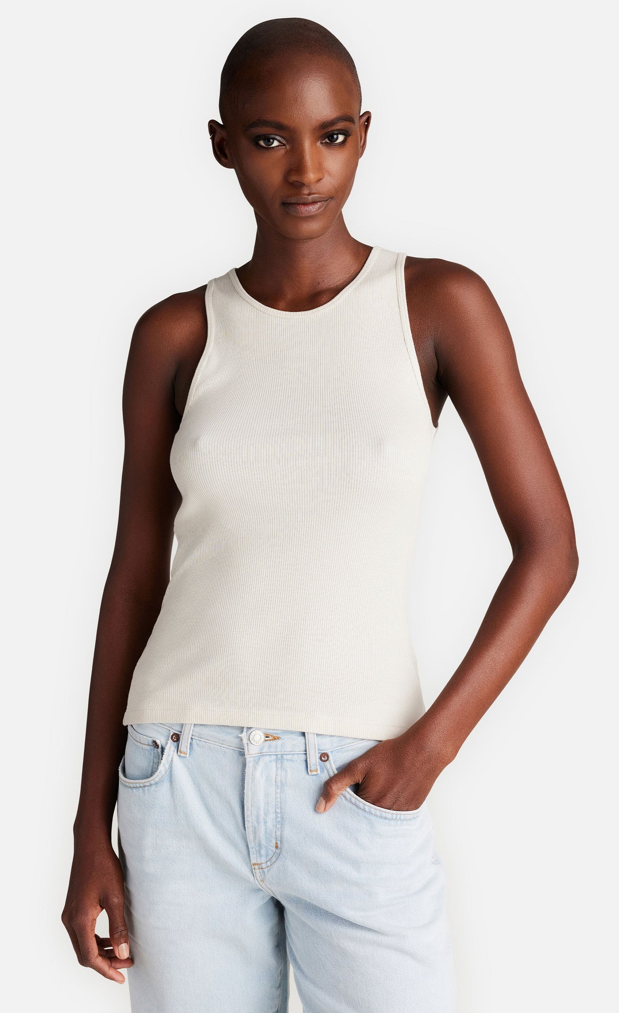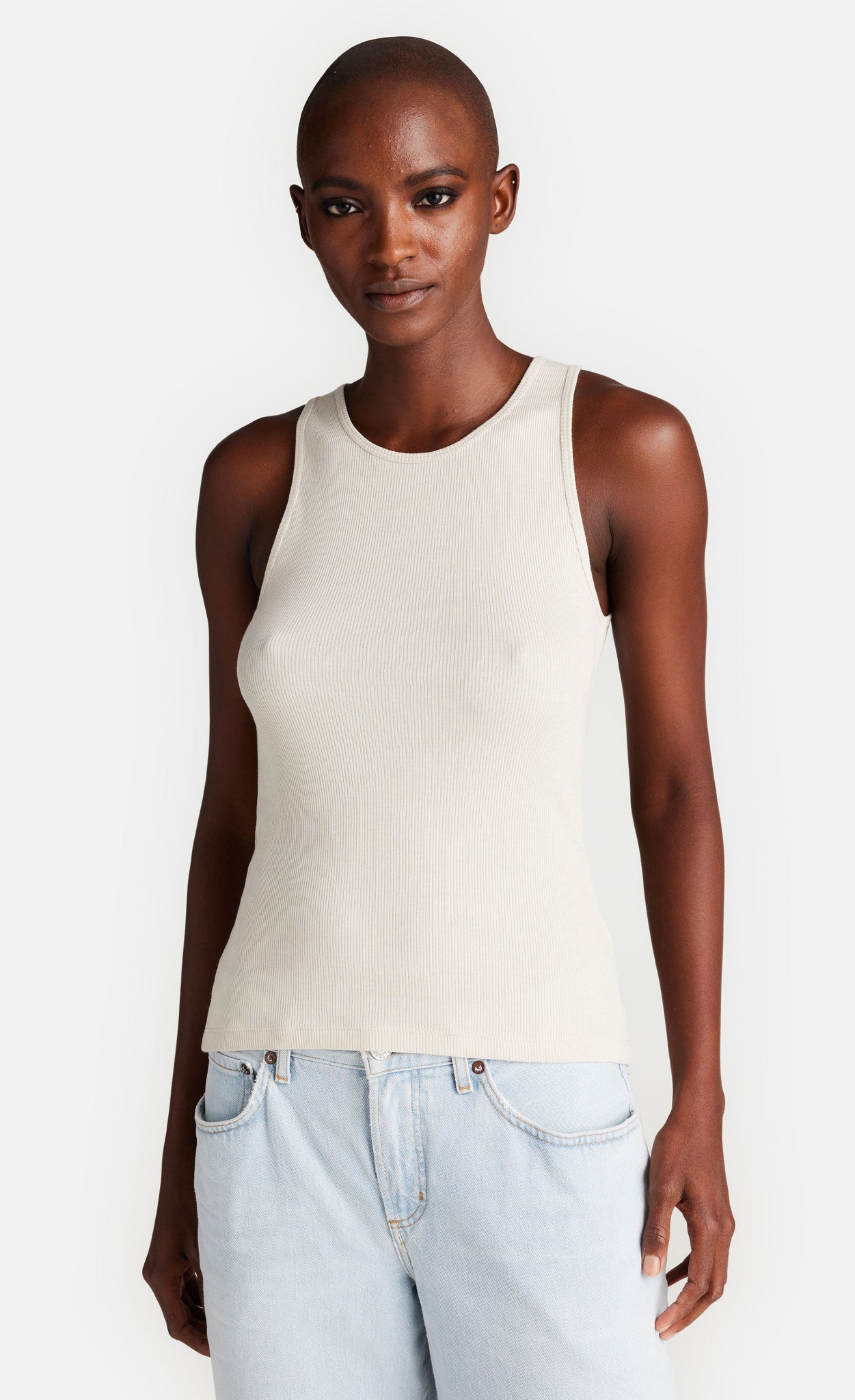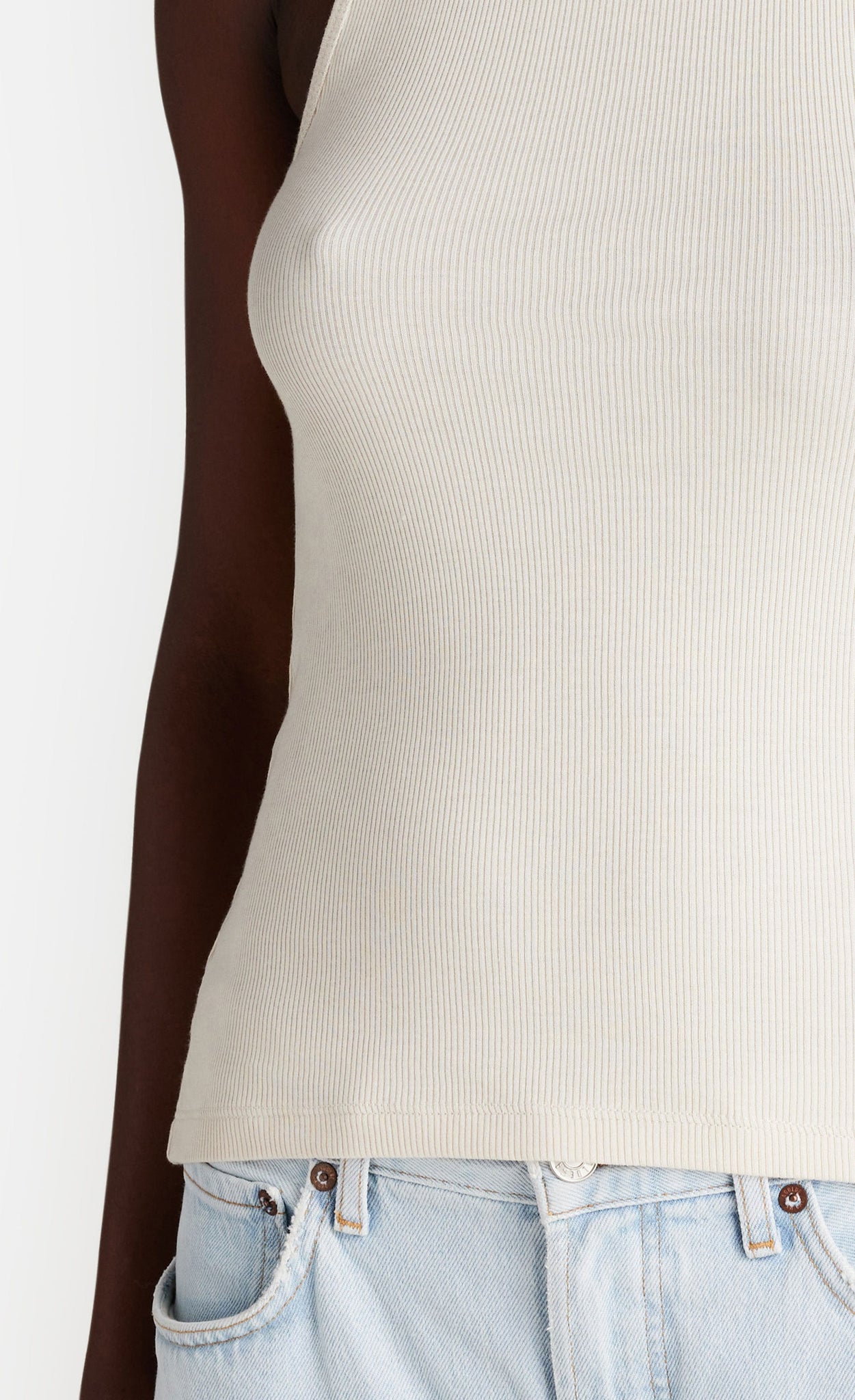Durch den modernen Schnitt und das weiche Rippmaterial entsteht ein perfektes Basic-Top, das nicht nur in Kombination mit anderen Kleidungsstücken, sondern auch solo überzeugt.