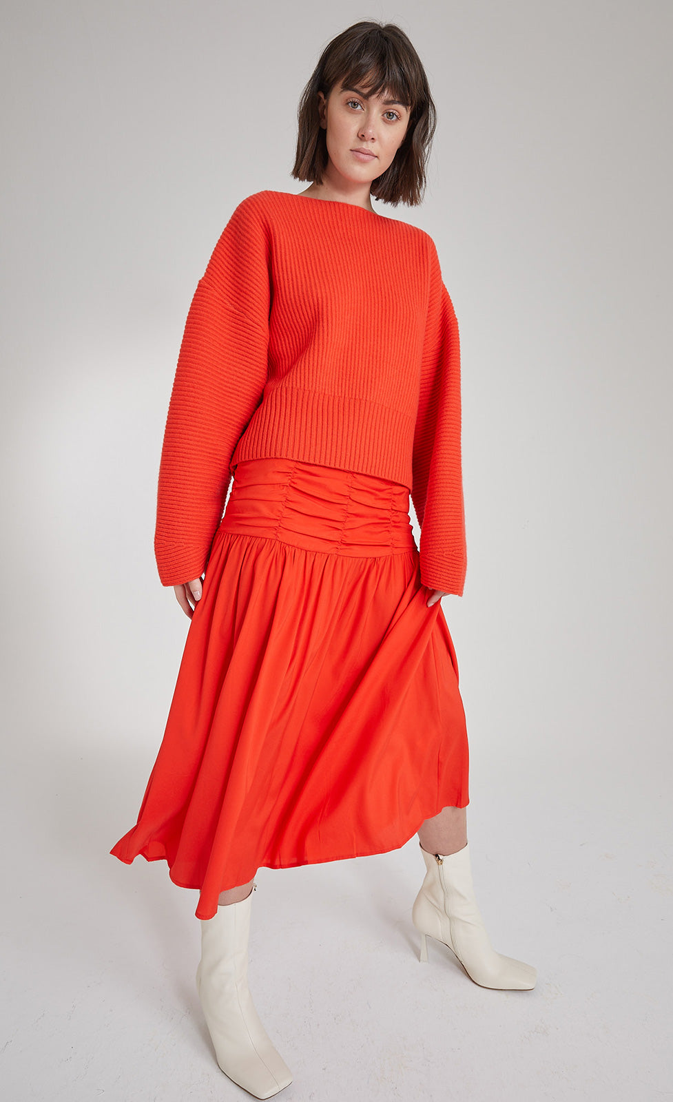 Diesen Rock aus Seide bieten wir in zwei frischen Farben an. Er verfügt über eine Passe mit drapiertem Design und gekräuseltem Rockteil mit schwingendem Saum.