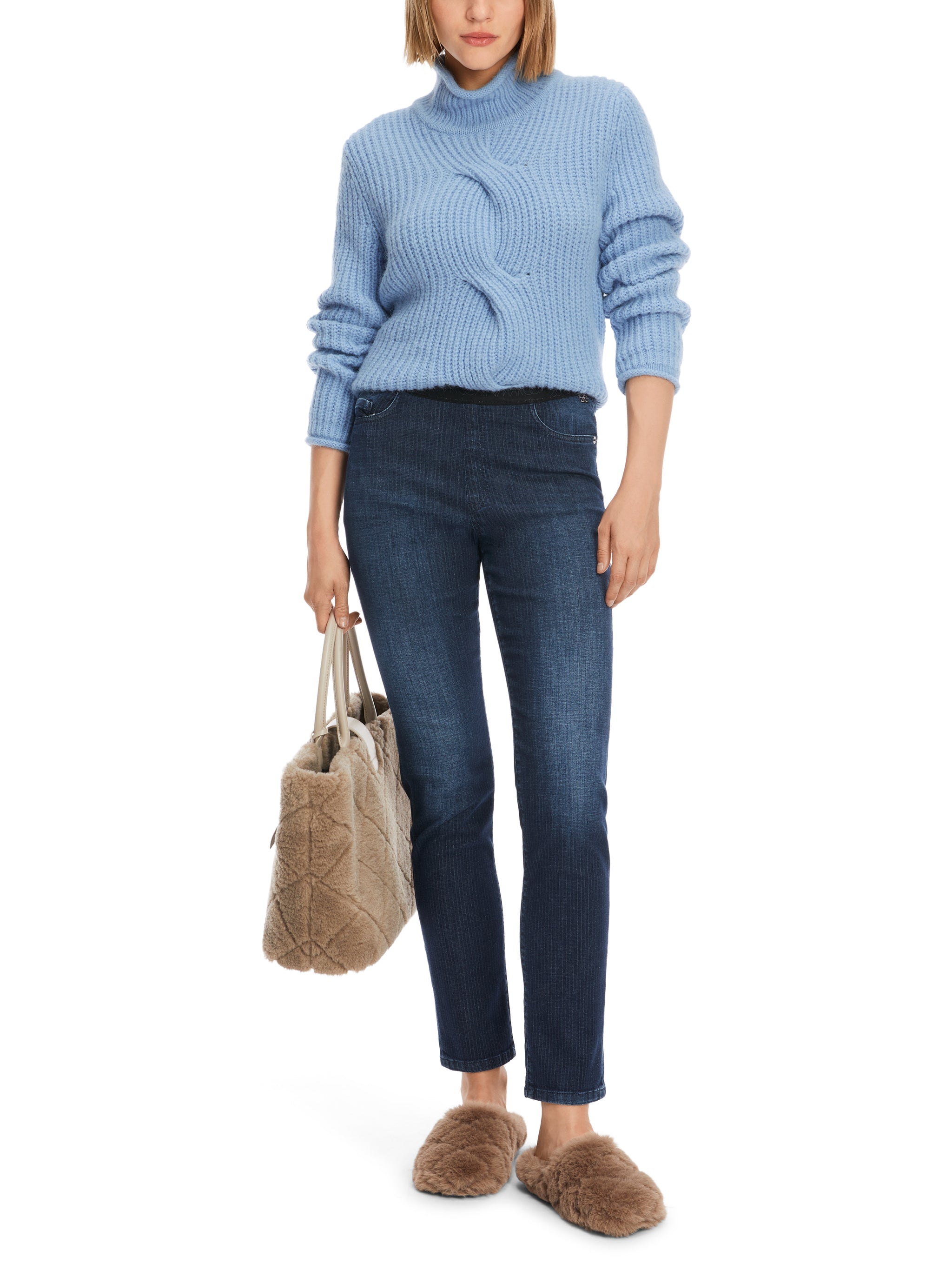 Modell SIENA ist eine schmal geschnittene Schlupfhose mit Gummibund. Sie ist im Stil einer Five-Pocket Jeans geschnitten und hat ein körpernahes, leicht verkürztes Bein. Der Denim ist tonig gestreift und hat einen authentischen Abrieb an beanspruchten Stellen. Der samtweiche Cottonstretch verleiht der Hose einen super Komfort und einen ausgezeichneten Rücksprung, d.h., sie behält ihre Form. Ein cooles Wohlfühlteil für Freizeit und Urlaub.