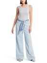 Die Jeans WARRI stammen mit ihrem Candiani Denim aus dem Nachhaltigkeitslabel "Rethink Together". Sie präsentieren ein weites, extralanges Bein. Denimtypisch kommen sie im Five-Pocket-Design. Geschlossen wird die Hose WARRI mit Zipp und Knopf. Ergänzt wird der Look durch einen hohen Bund mit Bindegürtel im Blumen-Dessin.