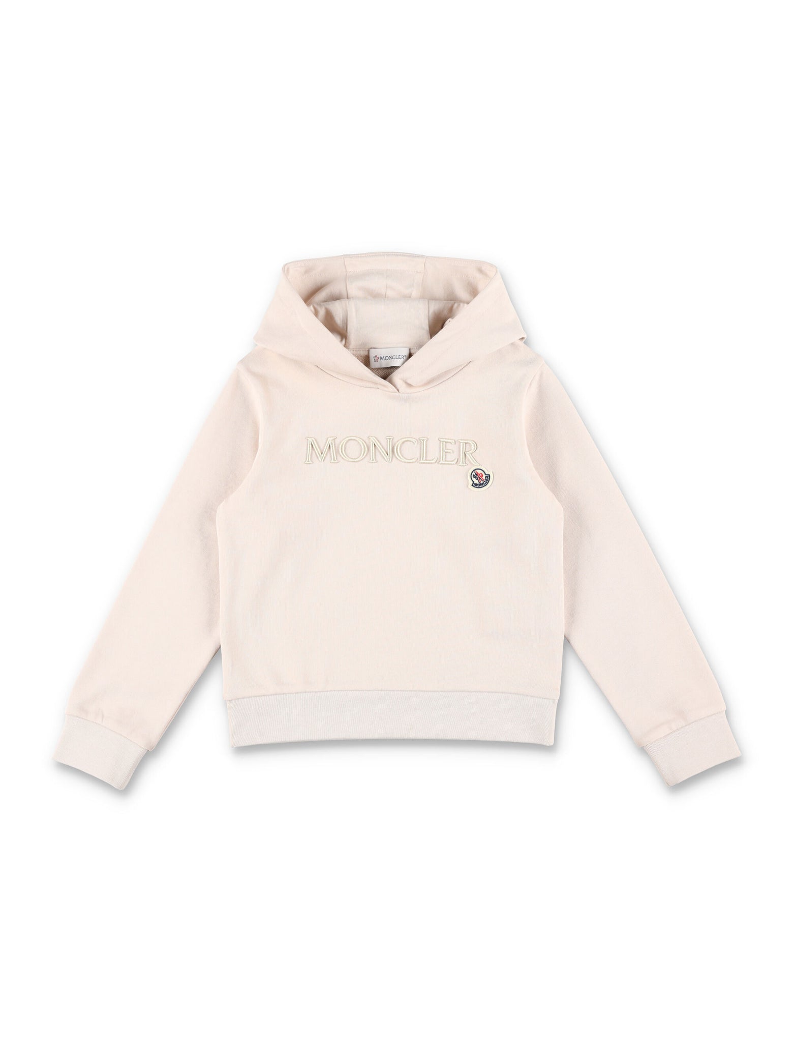 Elevate your child's wardrobe with this stunning light pink hoodie by Moncler. Crafted from 100% cotton, it features a cozy hood, long sleeves, and stylish tonal logo embroidery. Perfect for little fashionistas who love comfort and style.
