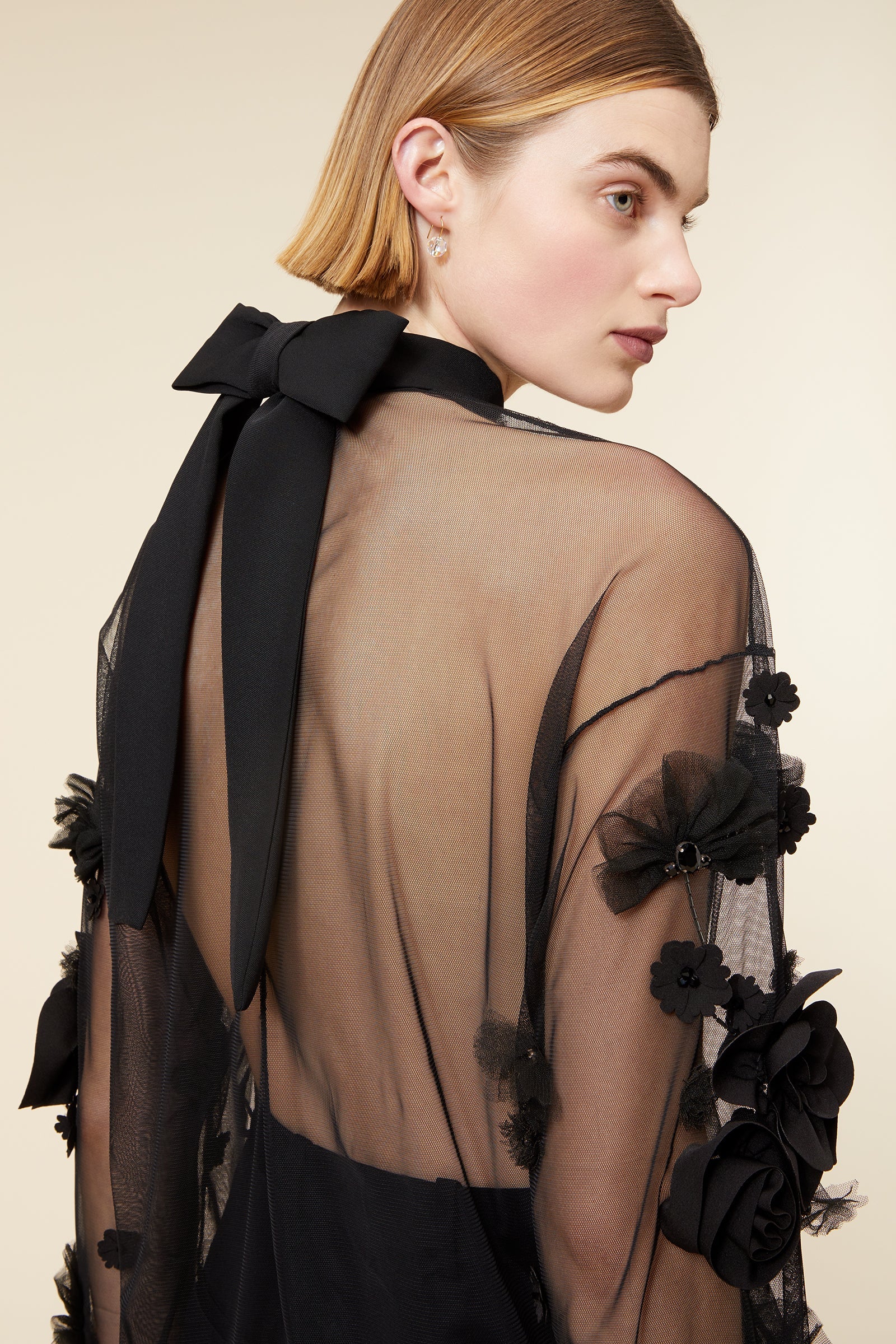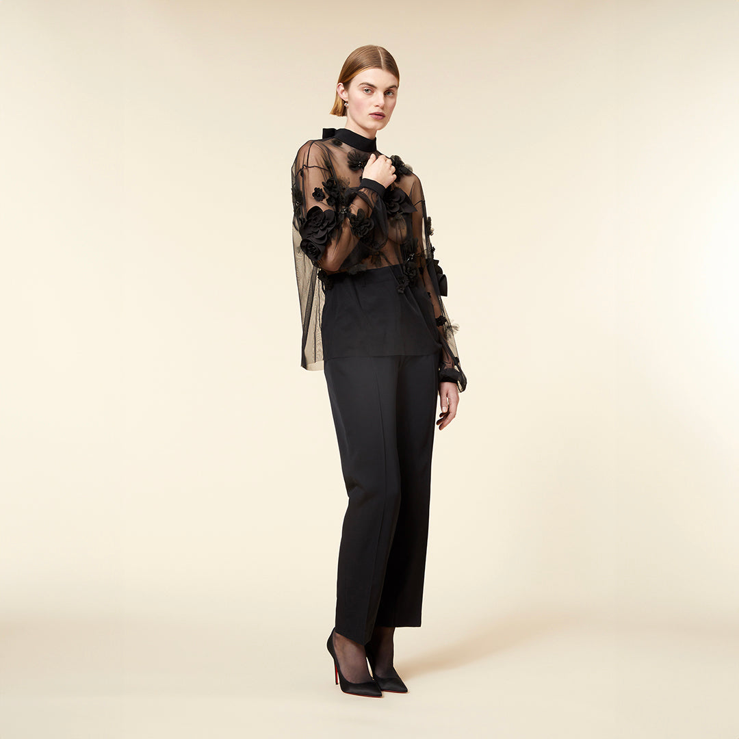 - Tulle Floral Seasonal Custom Embroidery with Crystal Embellishment in Blacks