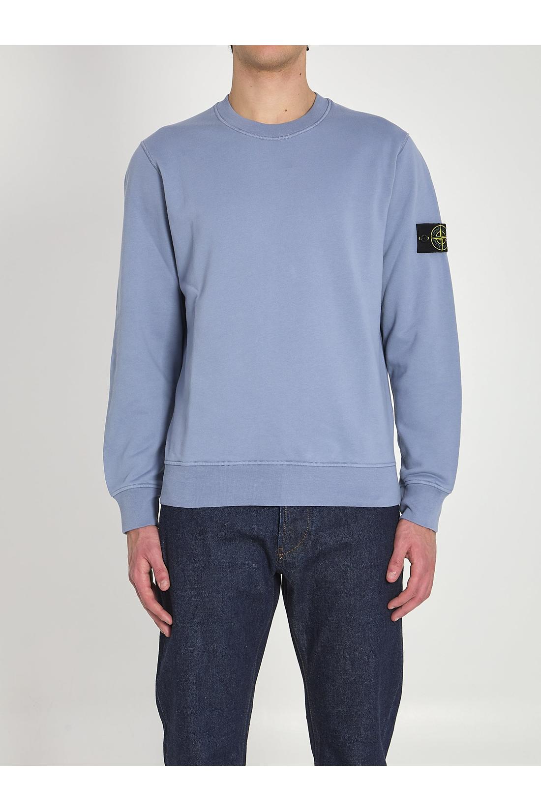 Light blue cotton sweatshirt. Features a ribbed crew neck, long sleeves, iconic badge on the sleeve, and ribbed cuffs and hem. Regular fit.