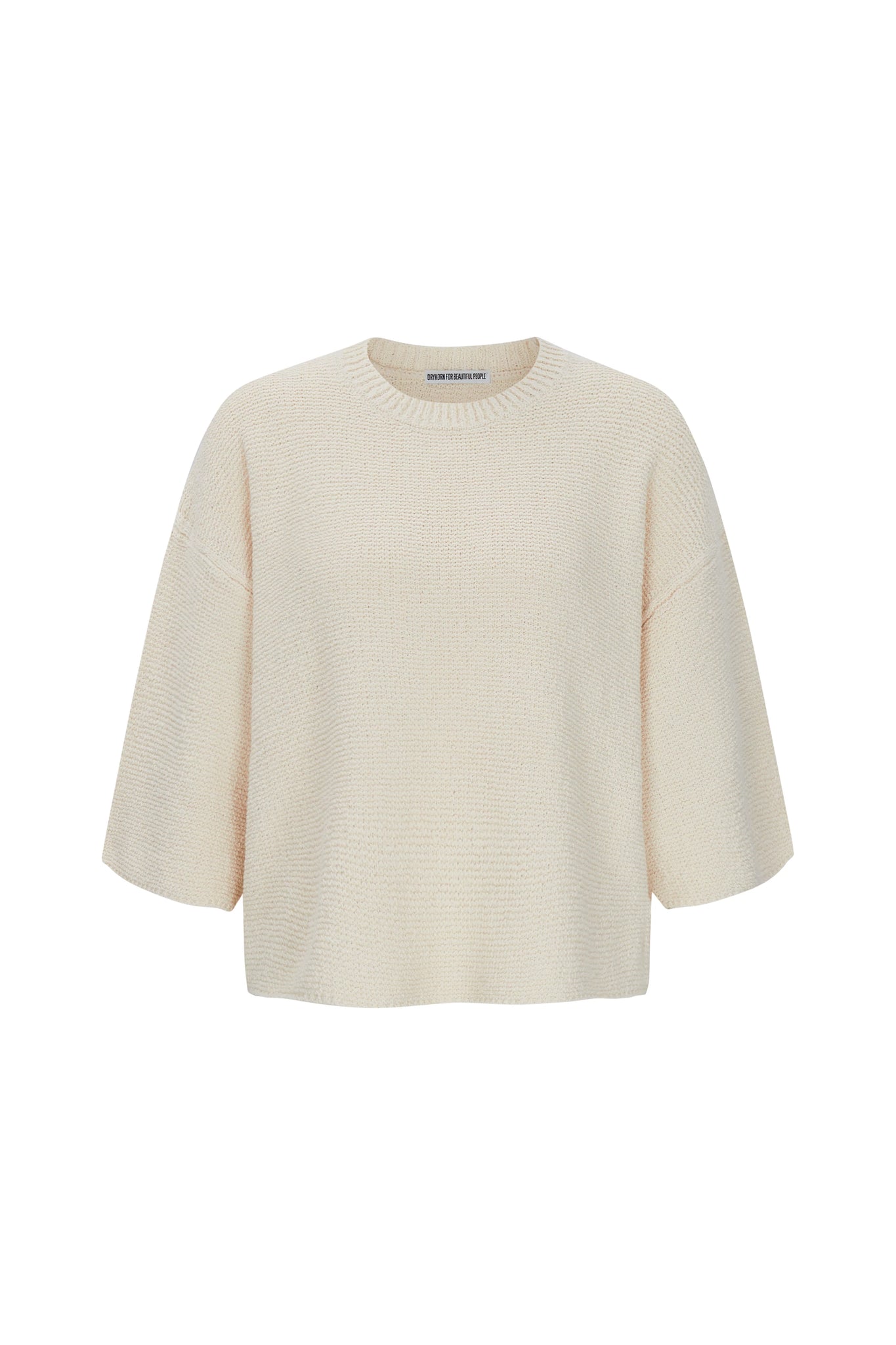NILAY is a simple 3/4-length knitted jumper with a straight fit, round neckline and dropped sleeves. NILAY is made from a summery bouclé cotton blend that makes it comfortable to wear.