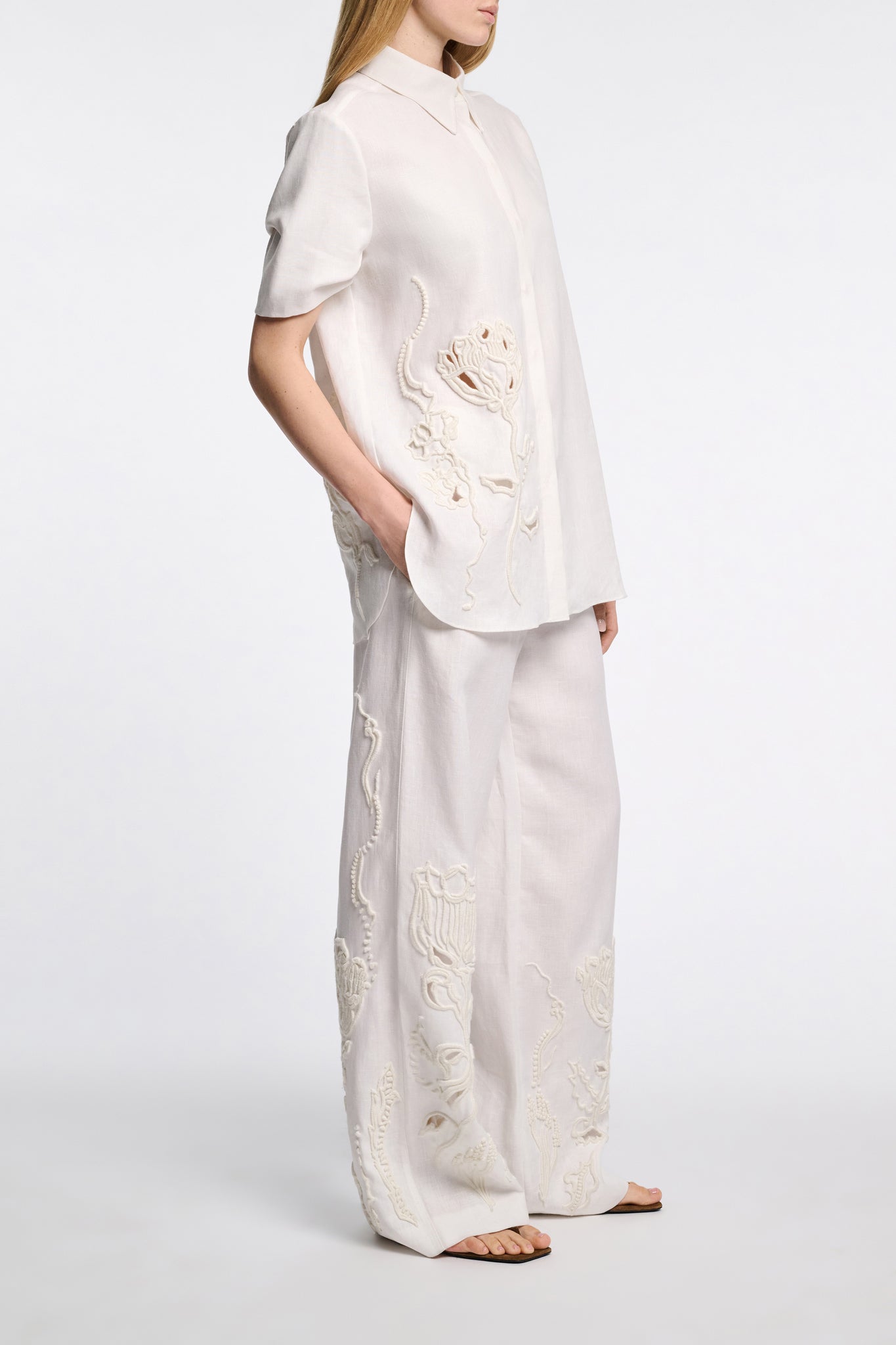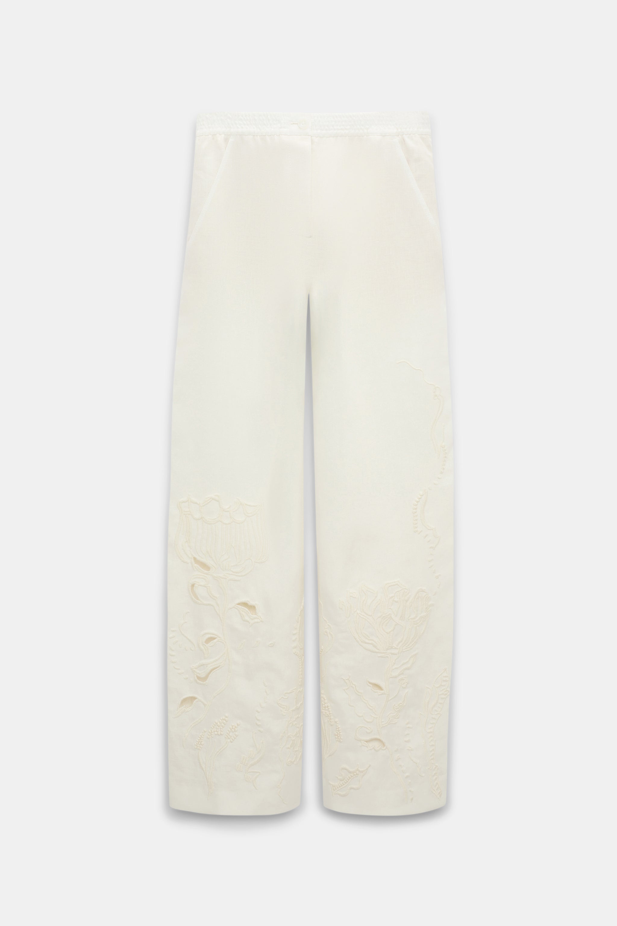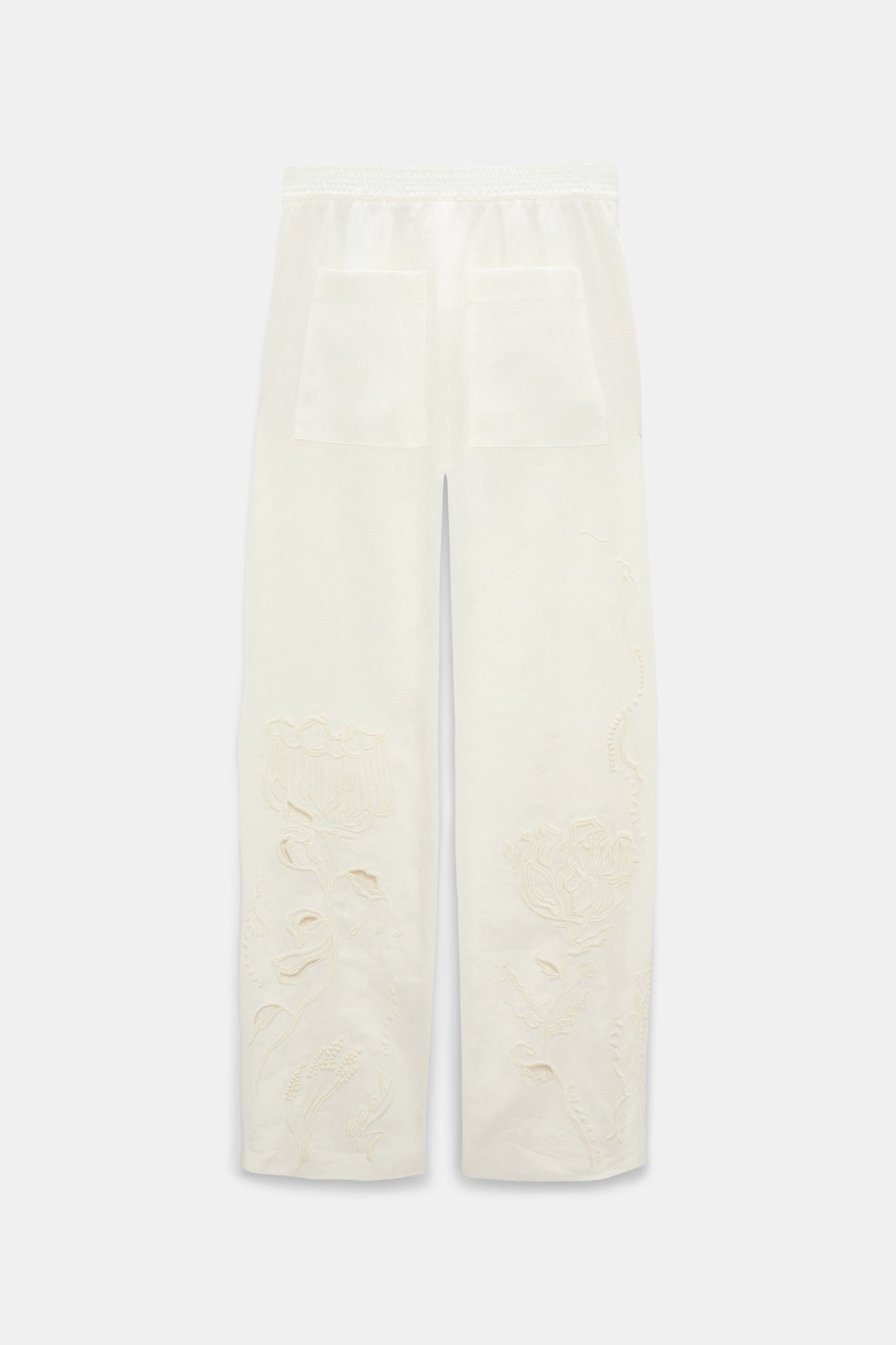 Die Hose aus Leinen überzeugt durch ihre aufwendige Garnstickerei mit dem Signature-Motiv der Kollektion. Die Hose hat einen elastischen Bund und einen entspannten Fit.