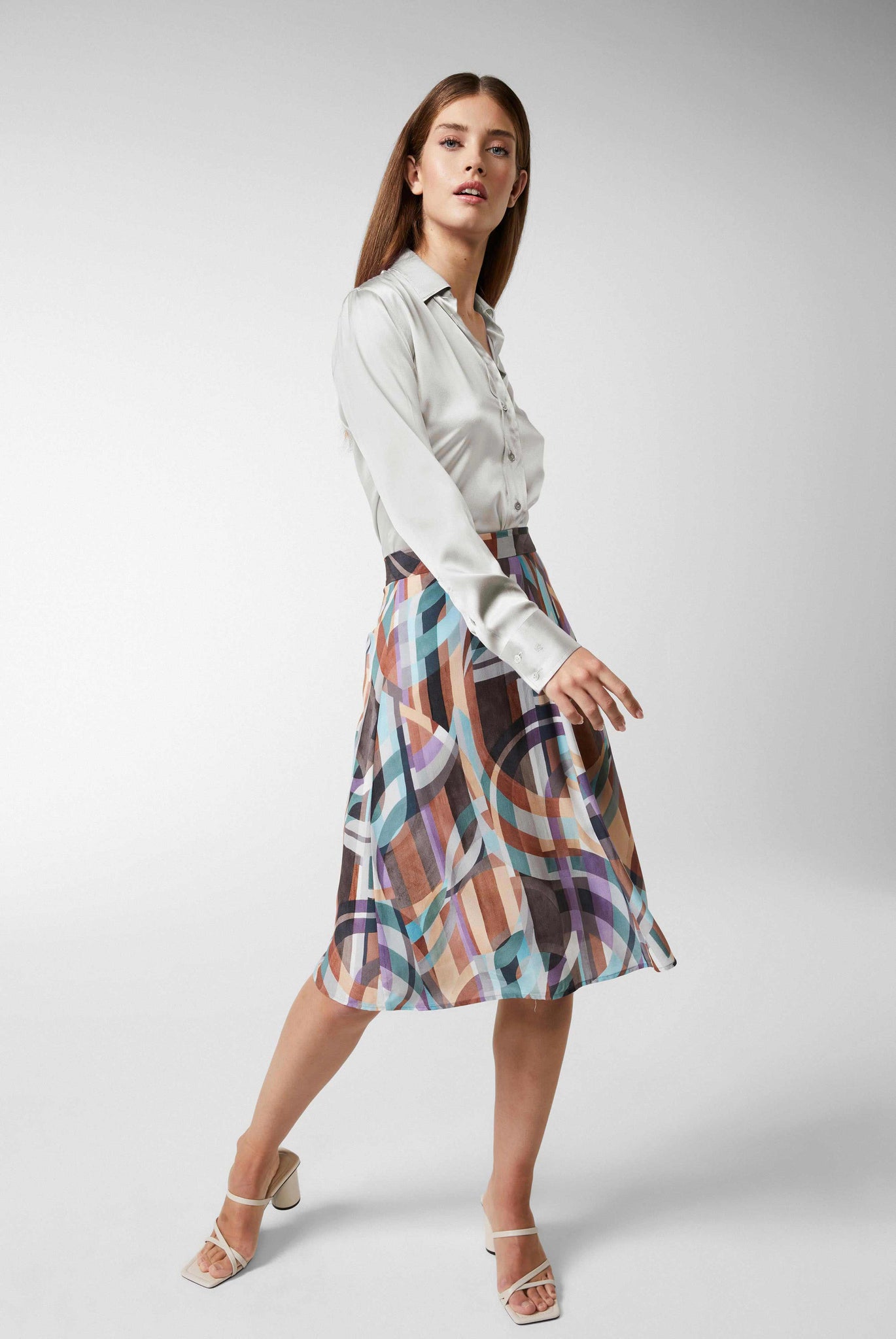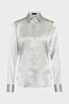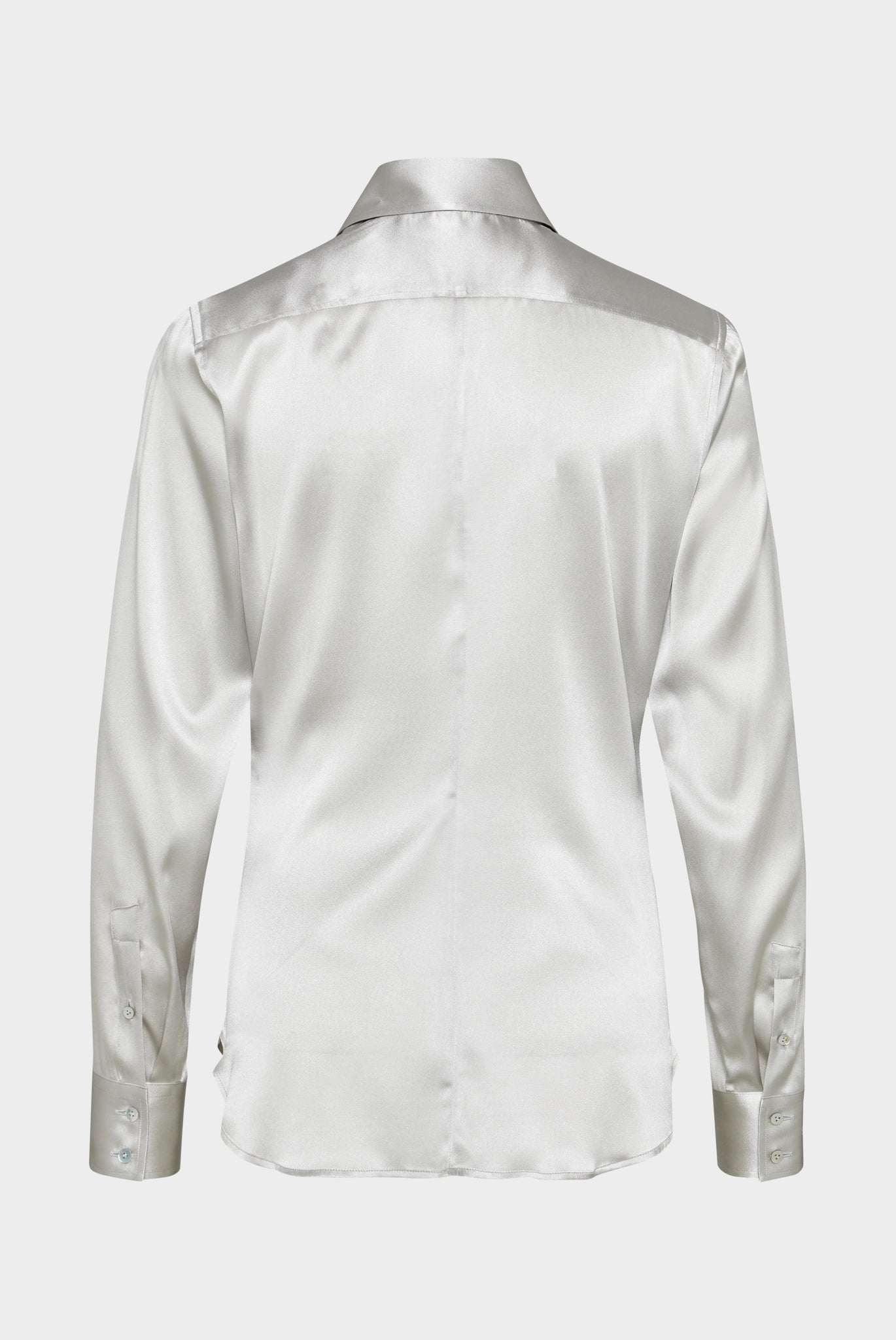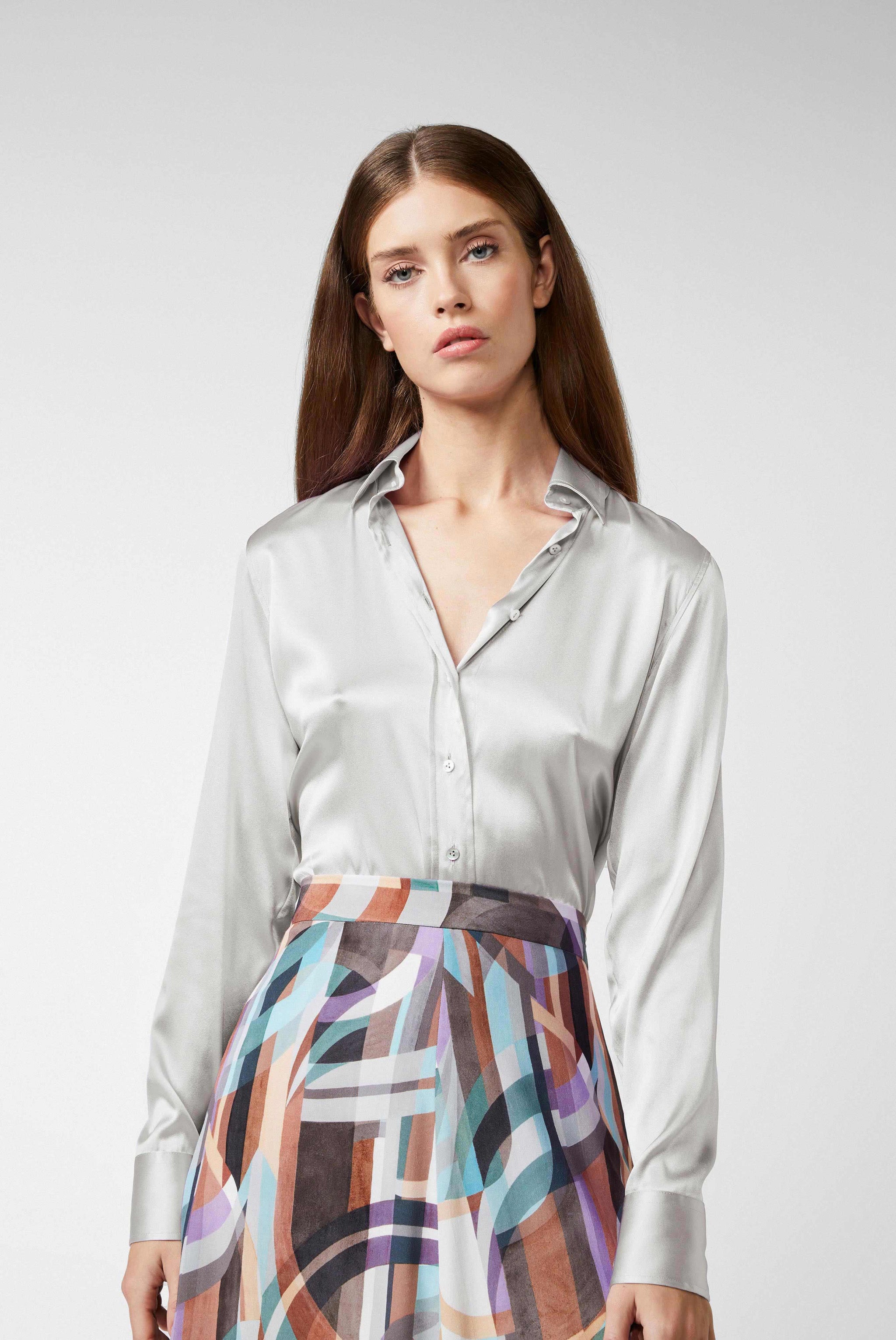 Edele Hemdbluse aus feinster Seide mit natürlichem stretch. Taillierte Passform mit Perlmuttknöpfen, aufgesetzter Knopfleiste und Hemdblusenkragen. Sowohl Casual, als auch zu Festlichen Anlässen eine gute Wahl.