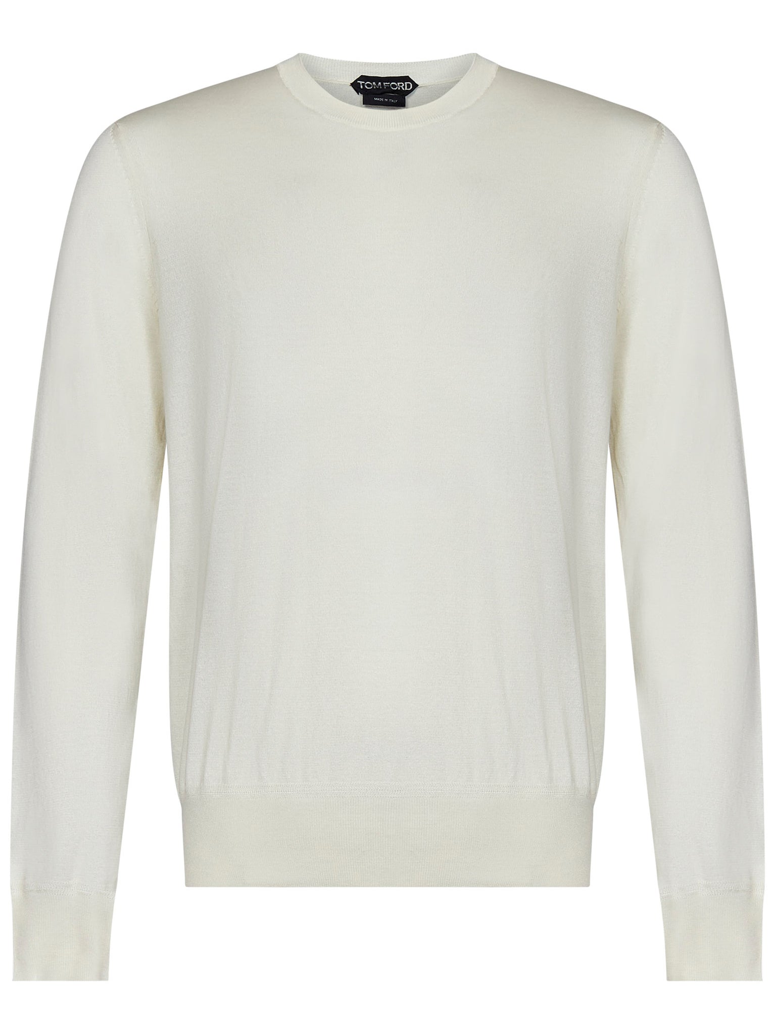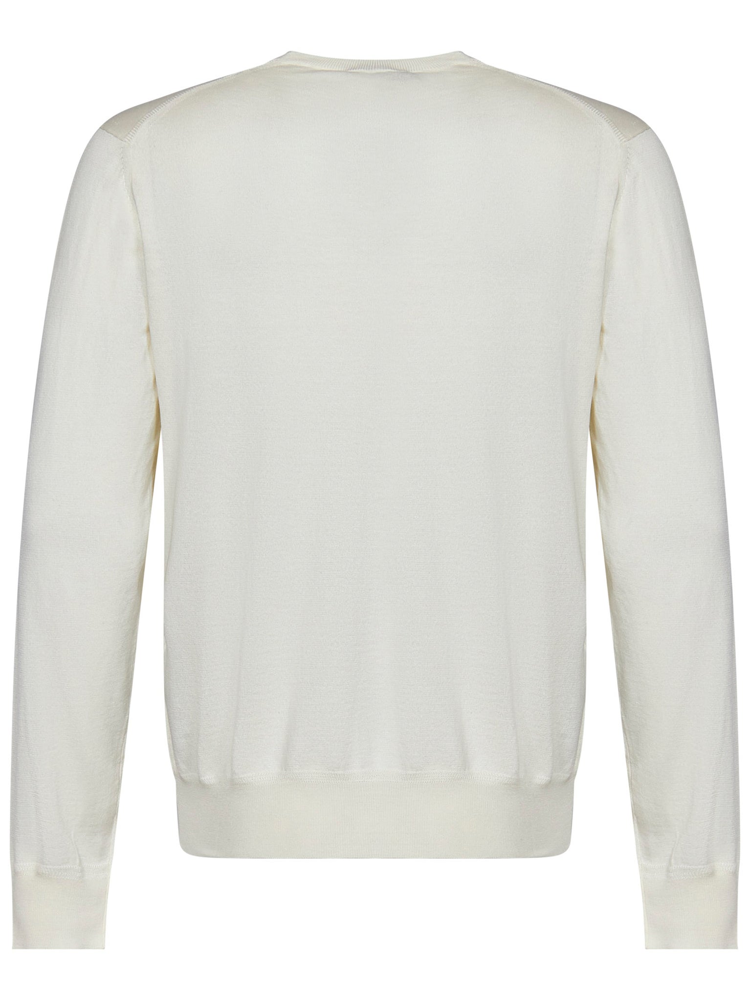 Chalk-colored cotton knit crewneck sweater with ribbed trims.