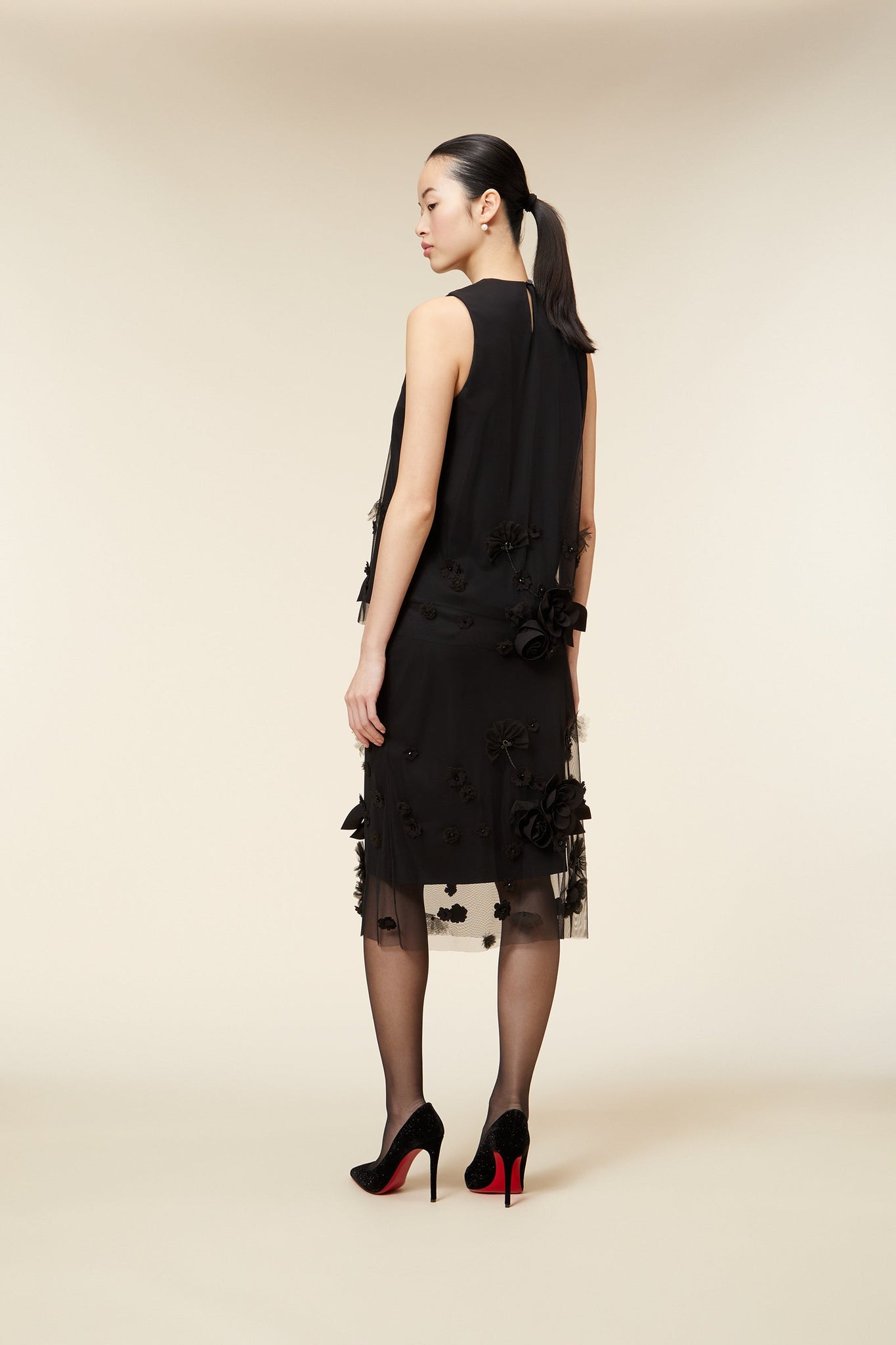 - Tulle Floral Seasonal Custom Embroidery with Crystal Embellishment in Black