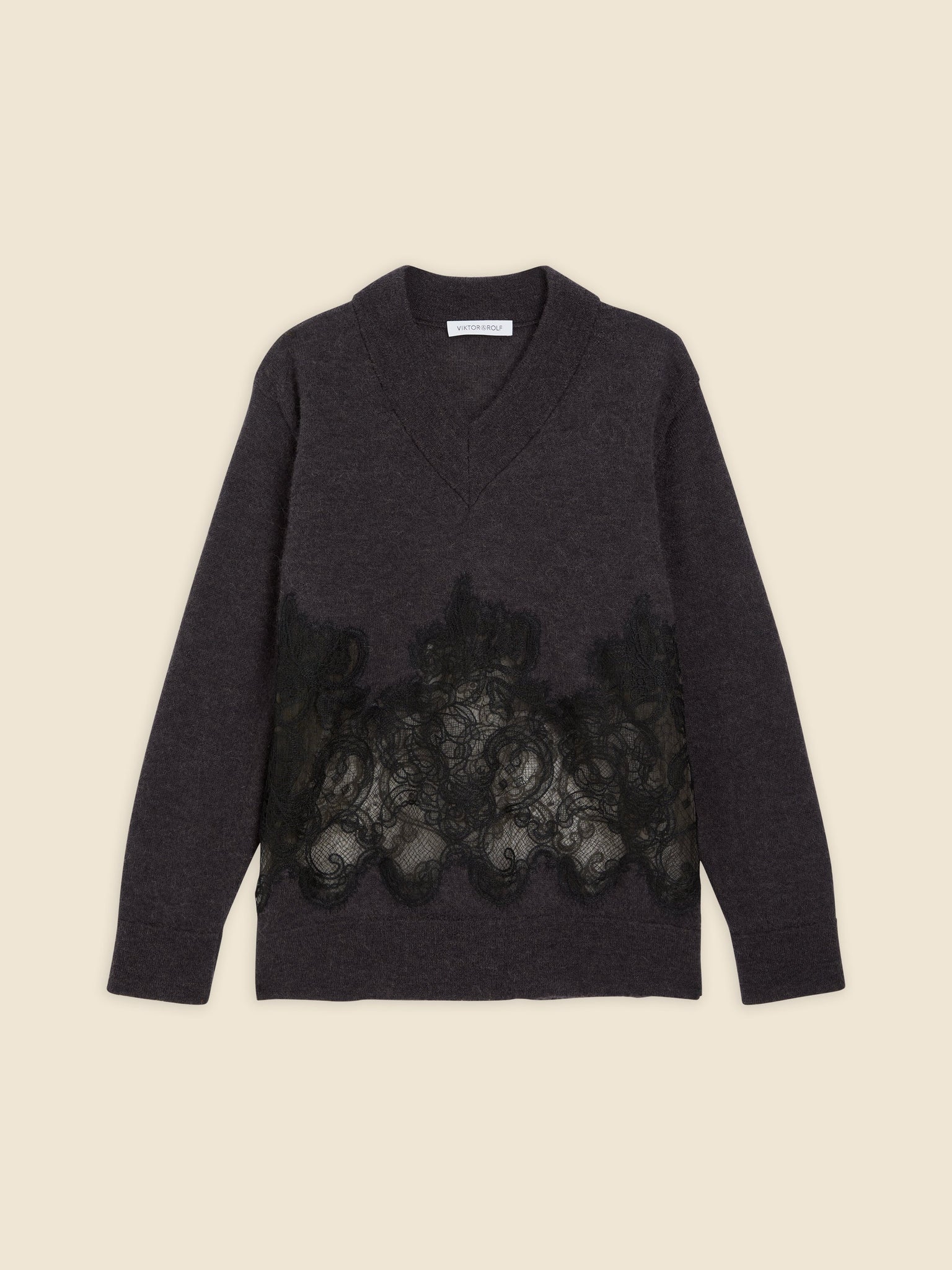 With the Couture "Haute Fantaisie" inspired allure, the sweater showcases intricate lace detailing, symbolizing elegance and sophistication.