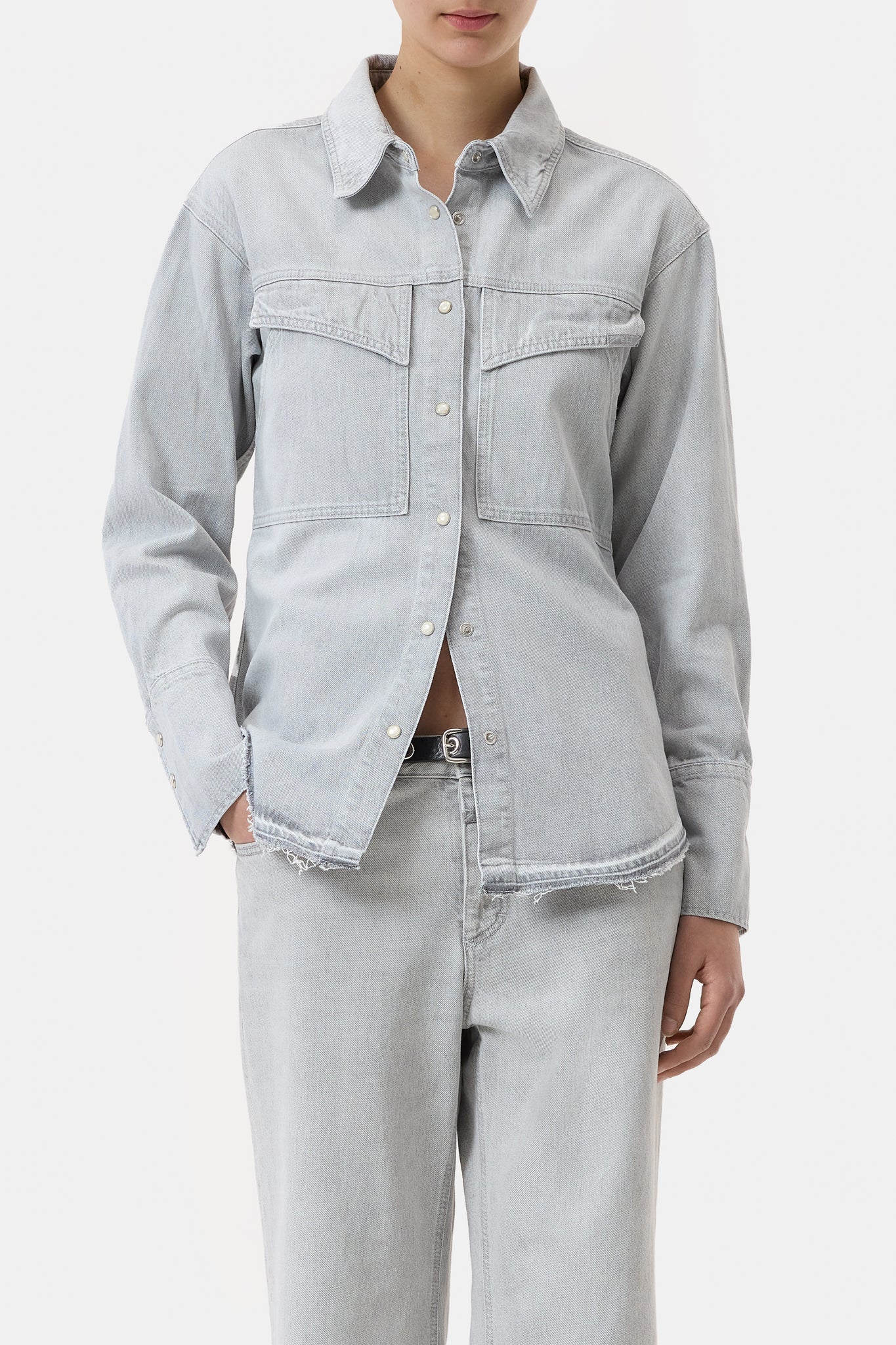 kräftiger Rigid Denim, tailliert, Vintage-Waschung, Druckknöpfe
