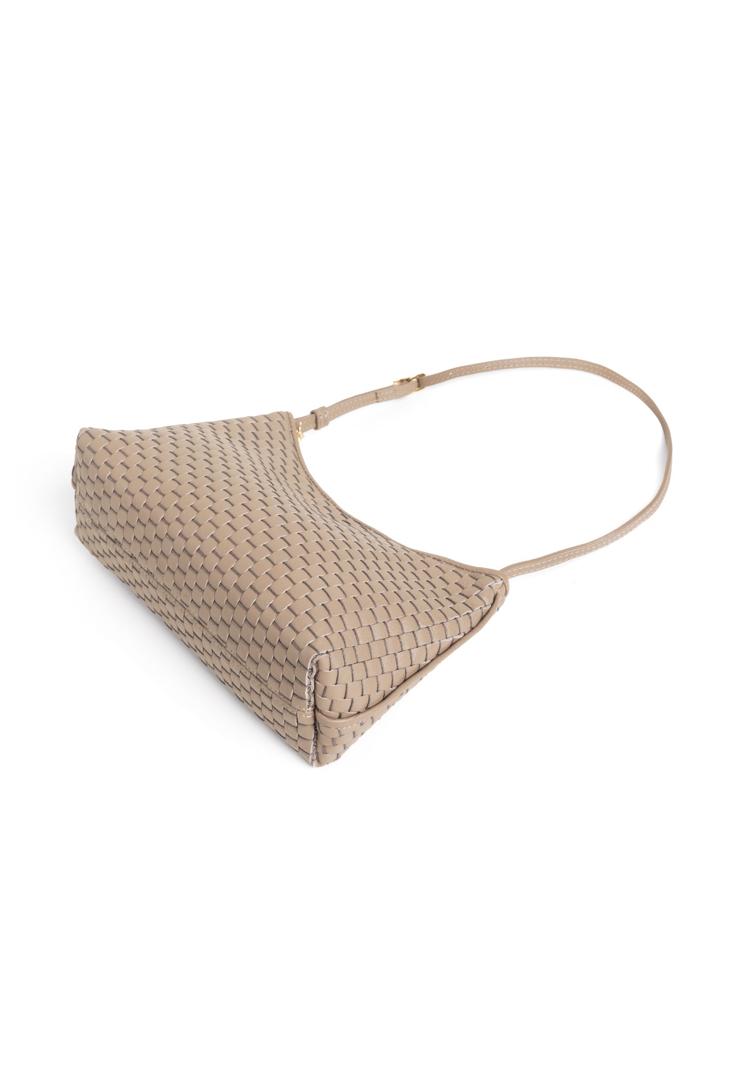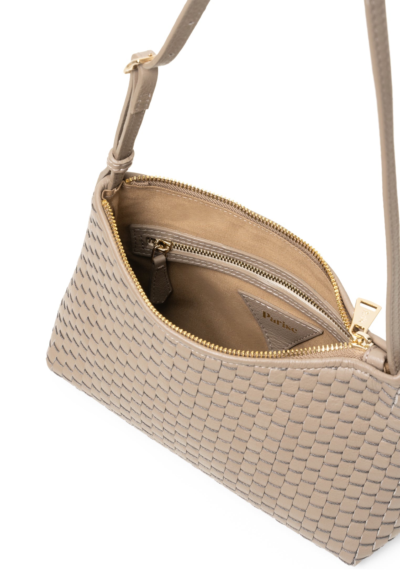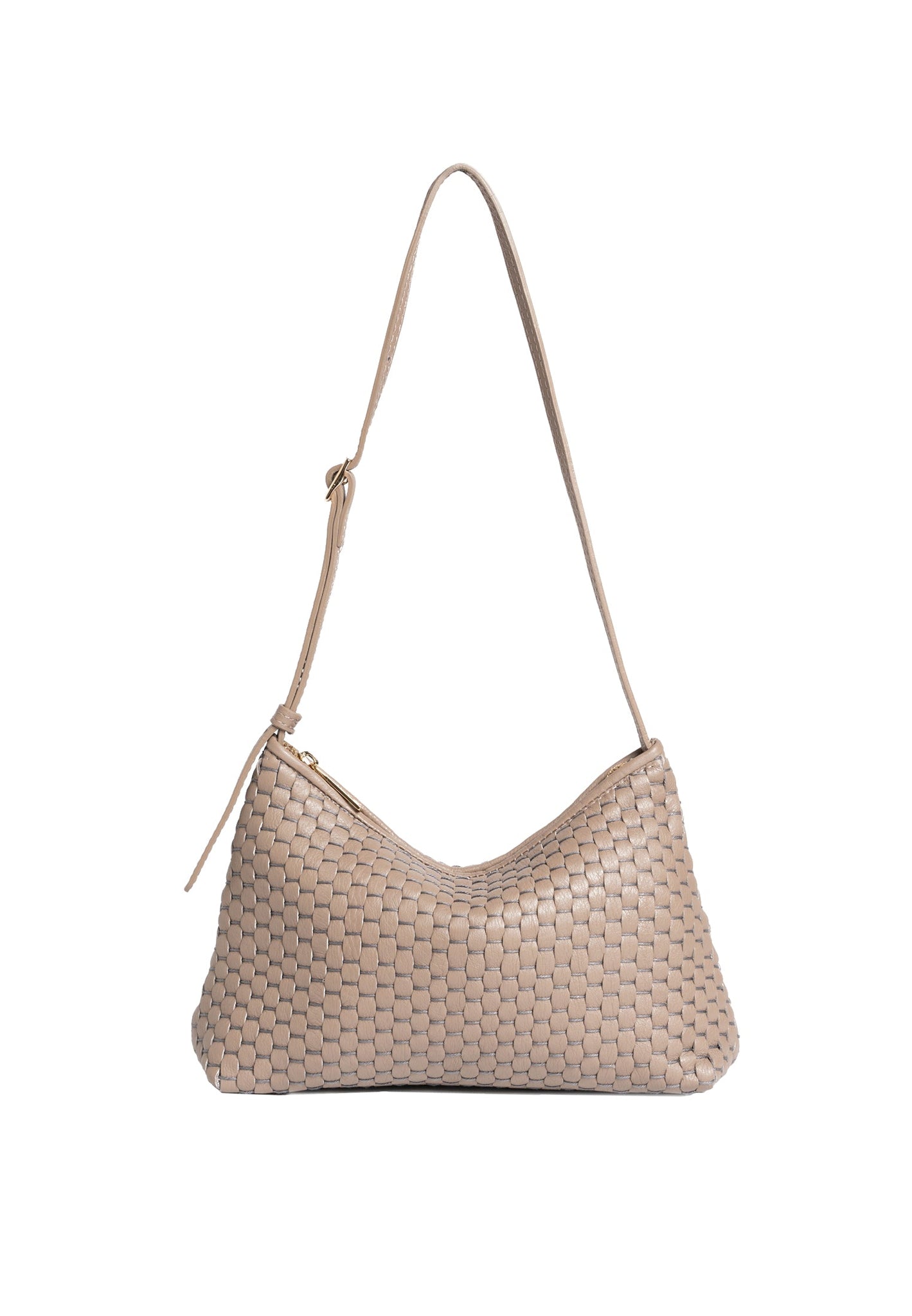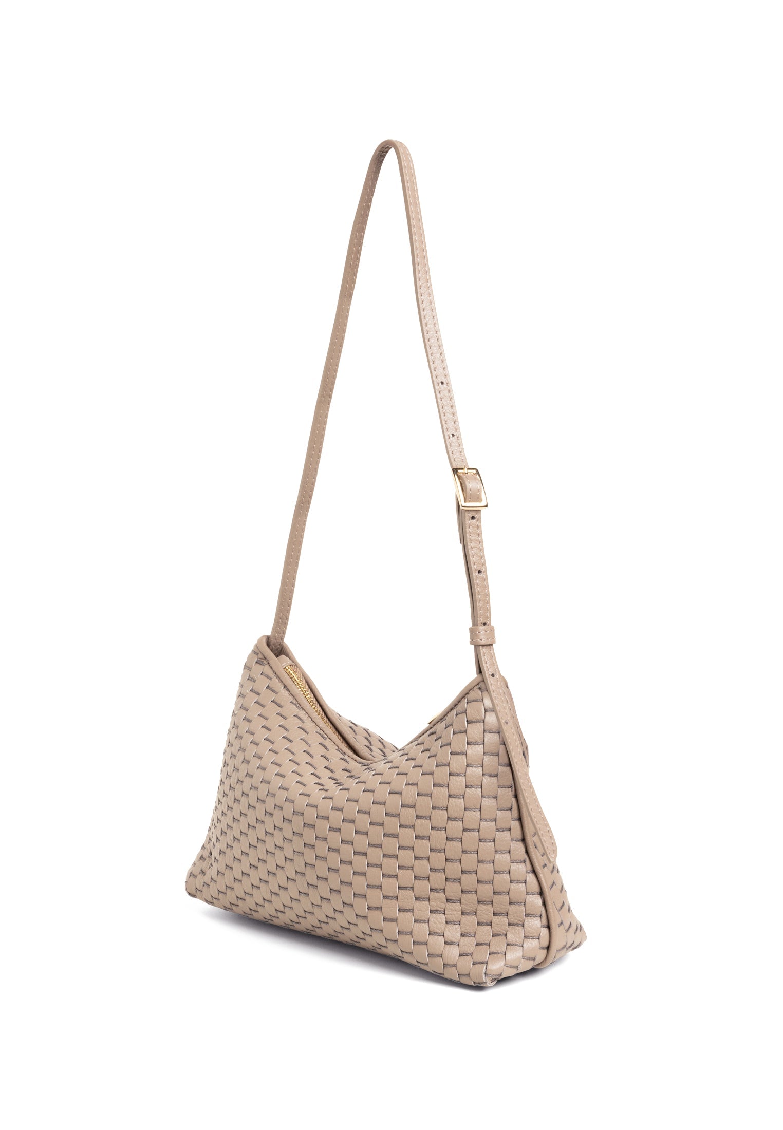 - Compact but but generous enough to comfortably hold a water bottle - Adjustable shoulder strap allows for shoulder or arm wear - Zip closure for secure access - Internal zipped pocket to organise your essentials - White gold colored hardware - Soft and durable 100% cotton lining - Protective dust bag included for lasting beauty - Made in Italy - Premium 100% bovine leather woven with 100% cotton yarn on 18th century treadle looms