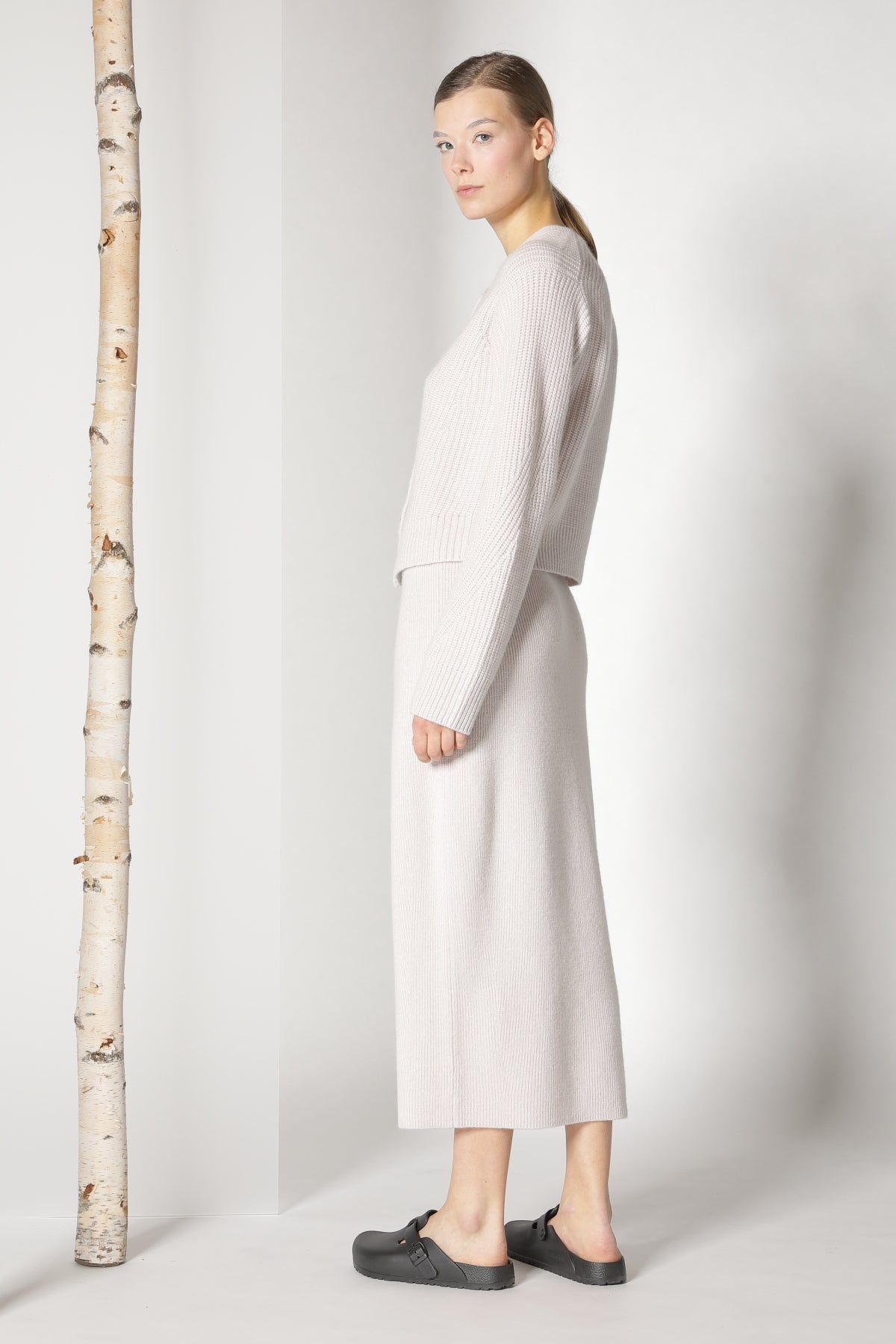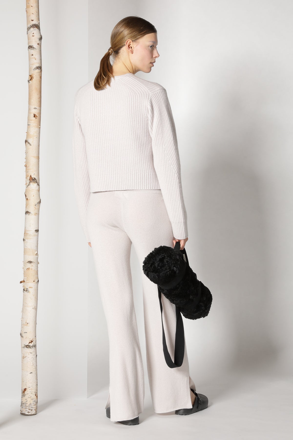 Cropped jacket in half cardigan stitch with SMINFINITY horn buttons and icon fully fashion details for front panel and long sleeves.