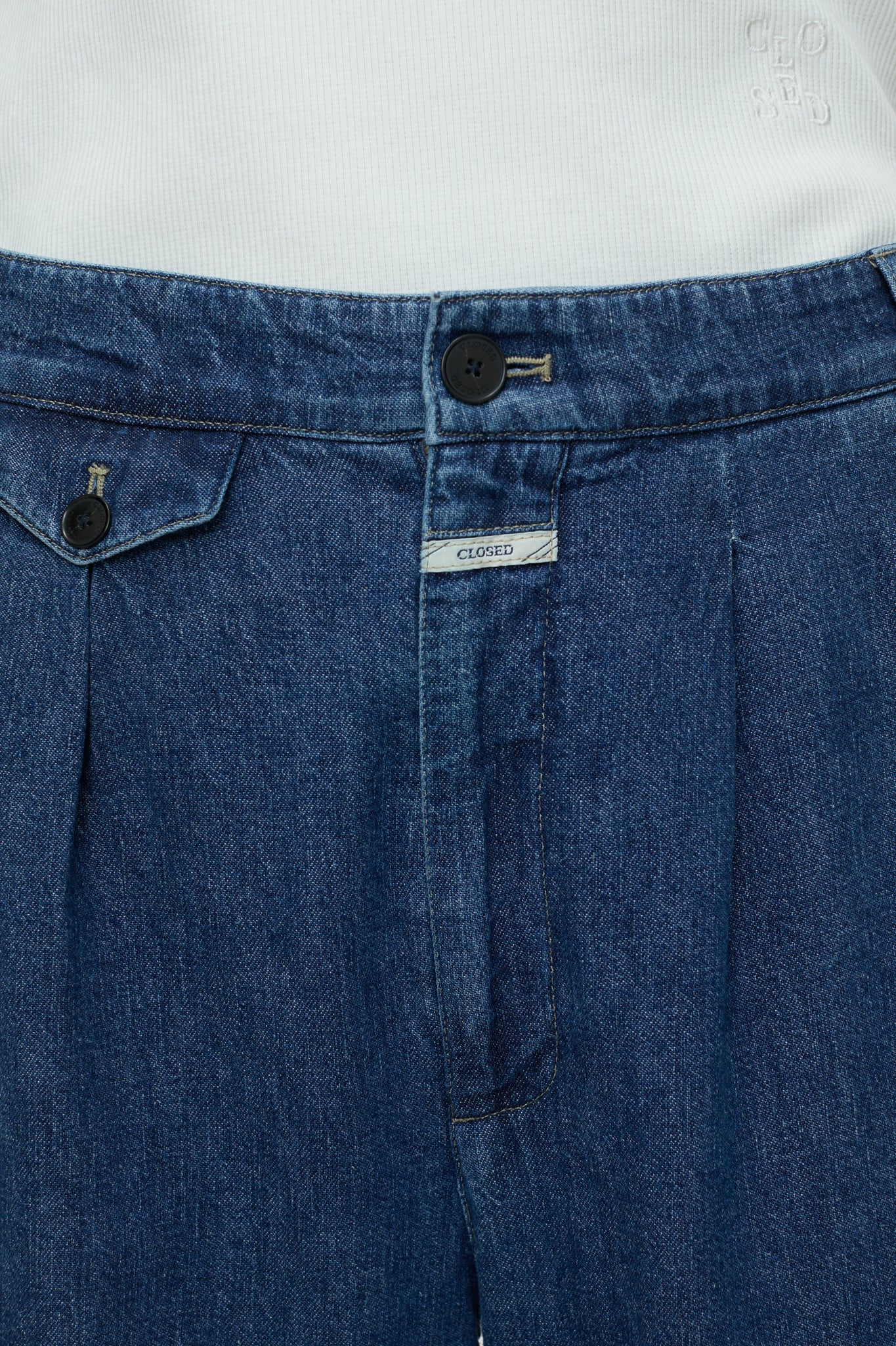 Looks like: gleichmäßige indigoblaue Waschung mit dezenten Slubs, Knöpfe in Horn-Optik