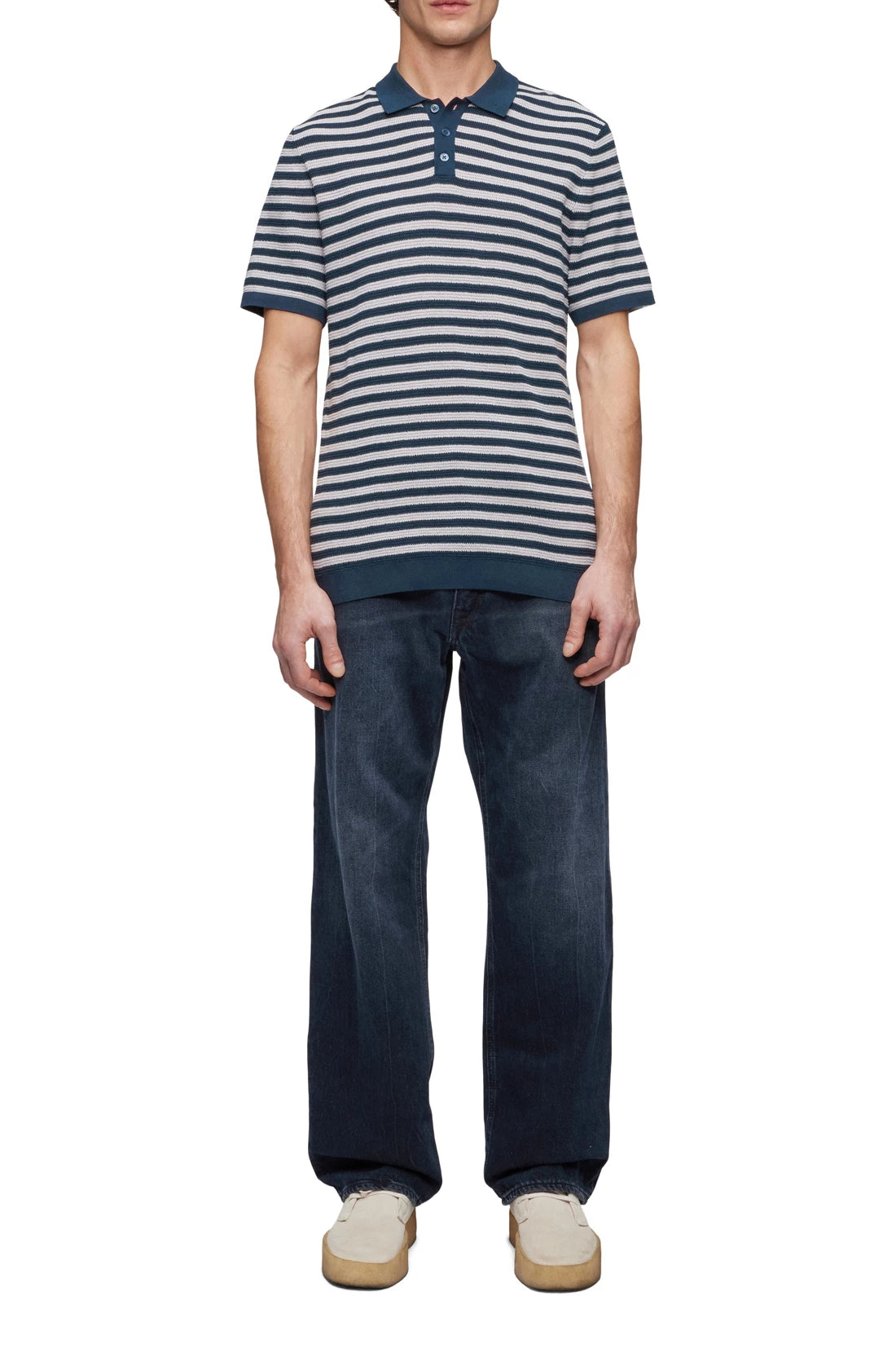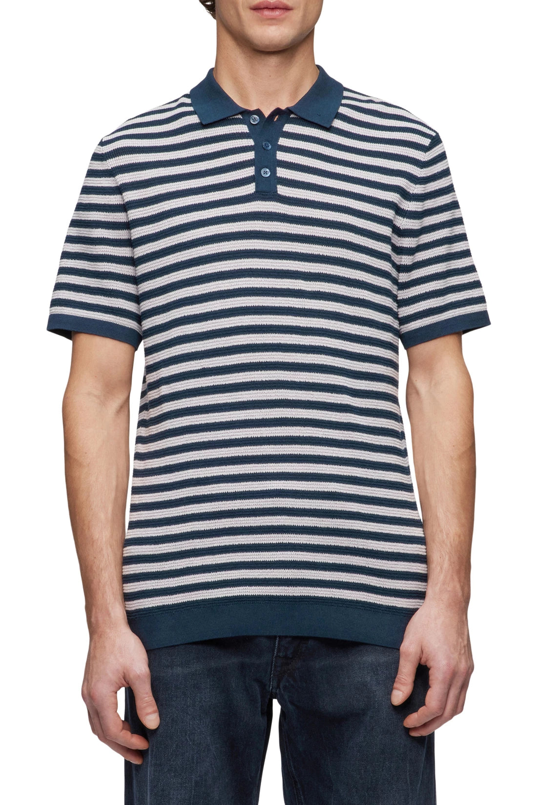 TRITON is a short-sleeved polo shirt with a button placket and a body-hugging silhouette. The mercerised cotton is striped and has a soft and comfortable feel due to its properties.